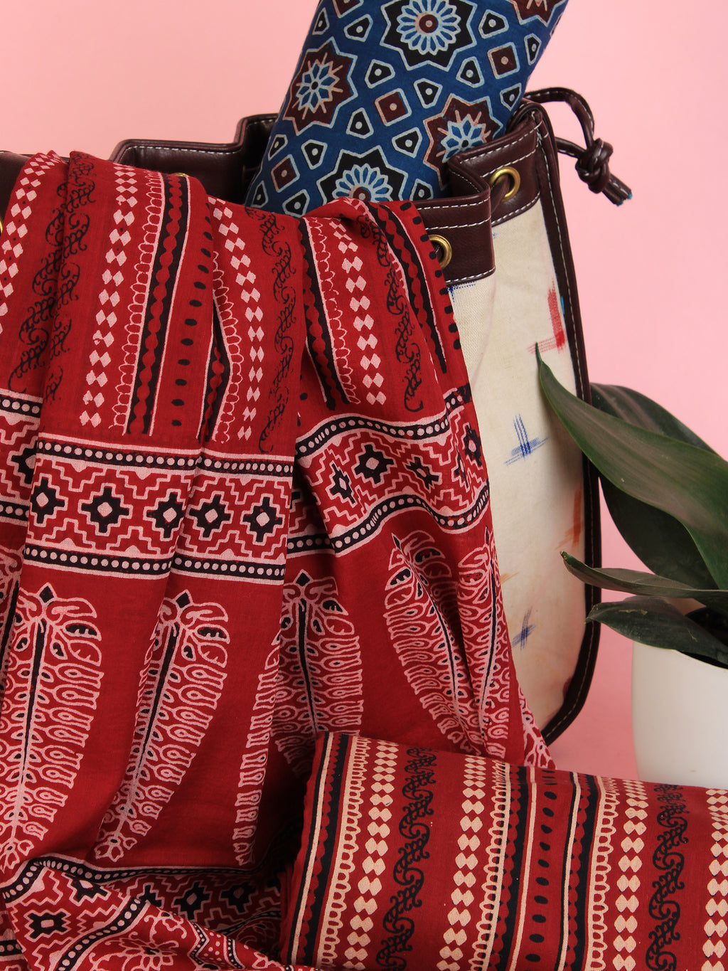 Indigo Maroon Ivory Hand Block Printed Suit Set (Set of 3) - SU01HB473