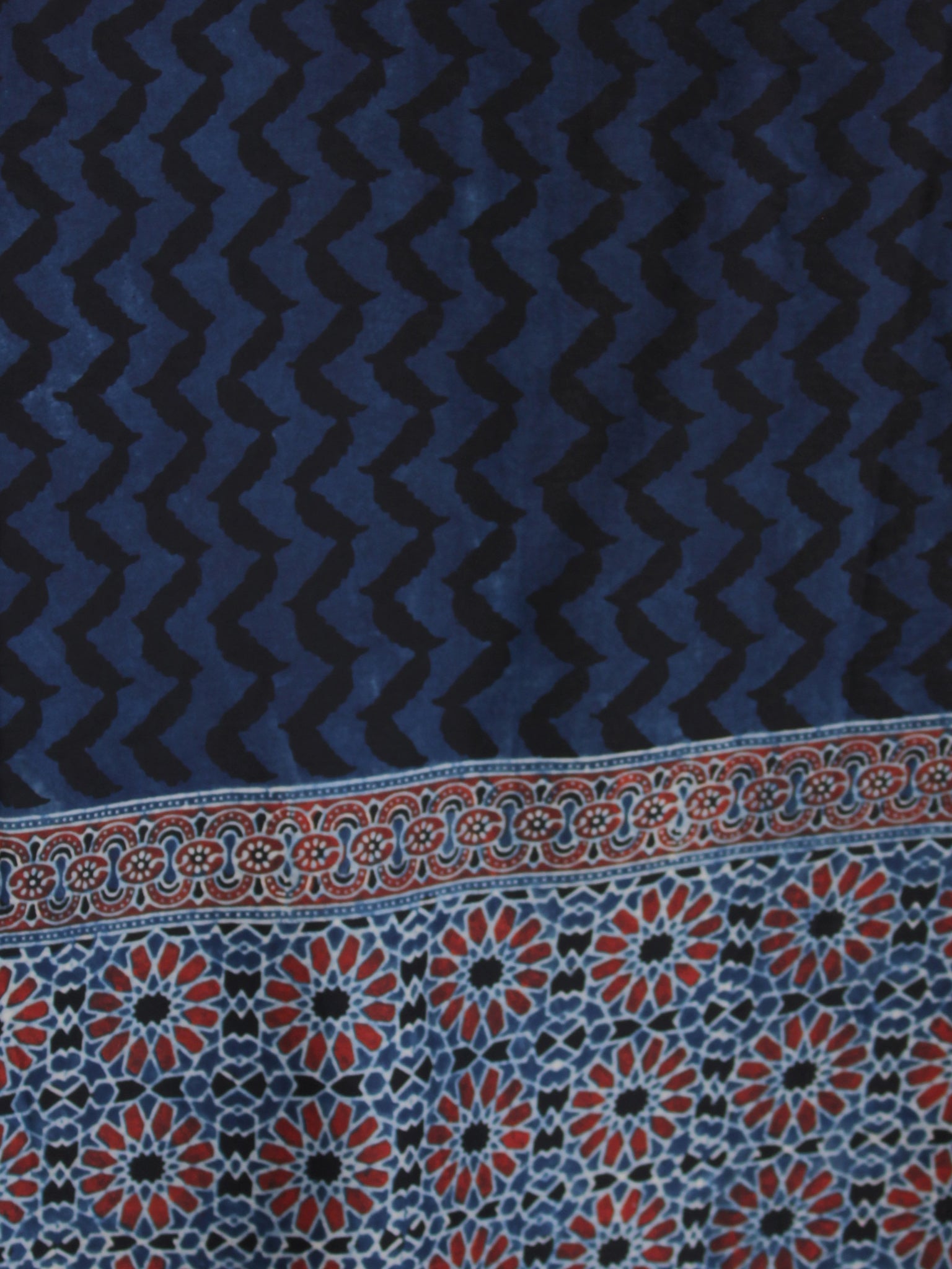 Indigo Red Black Ajrakh Hand Block Printed Modal Silk Saree - S031704138