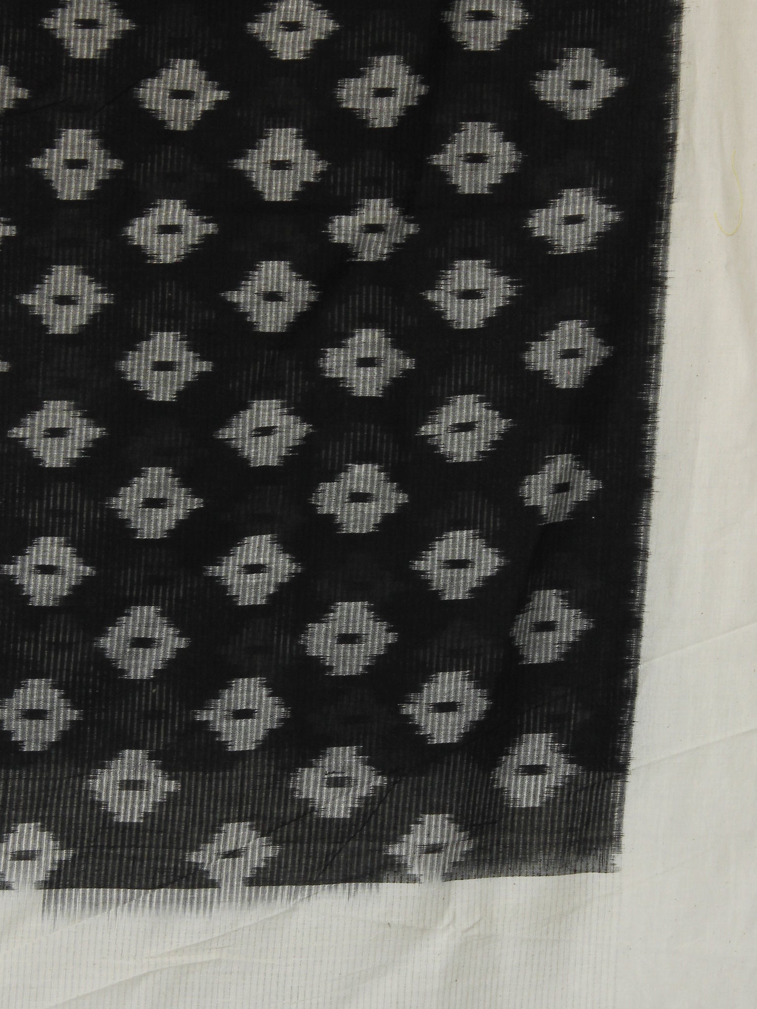 Ivory & Black Ikat Handwoven Pochampally Cotton Dupatta - D04170149