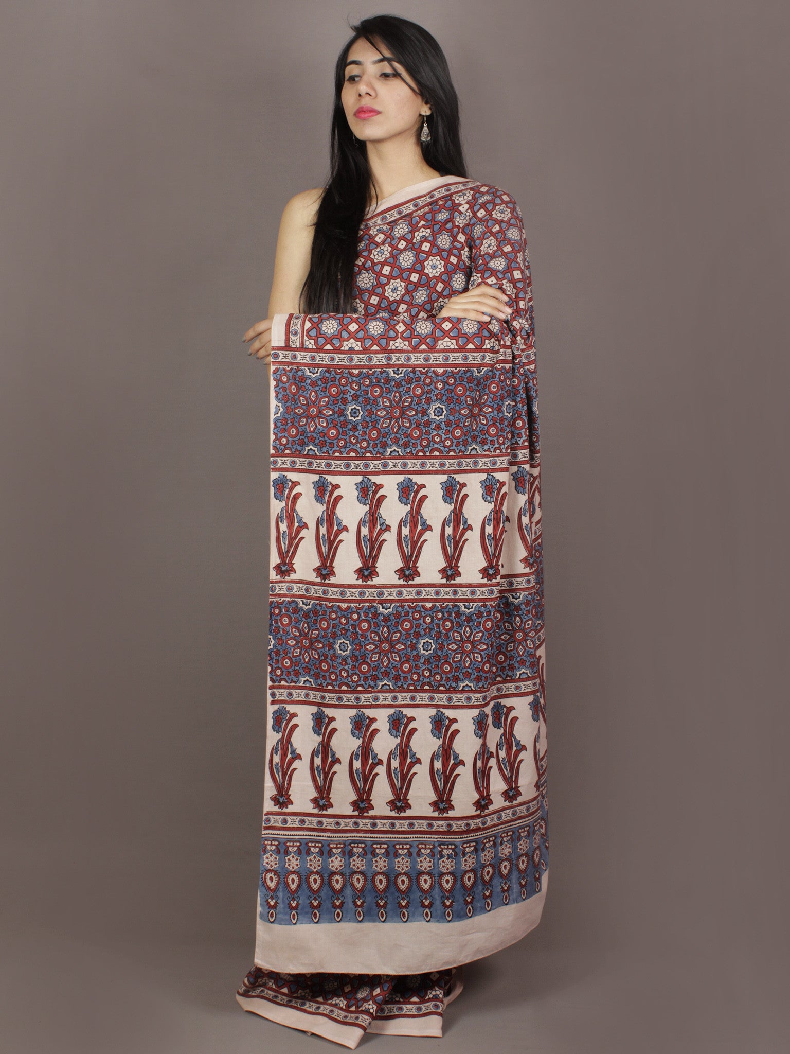 PRODUCT: Saree is Ajrakh Hand Block Printed, dyed in Natural Colors by Artisans in Barmer, Rajasthan.