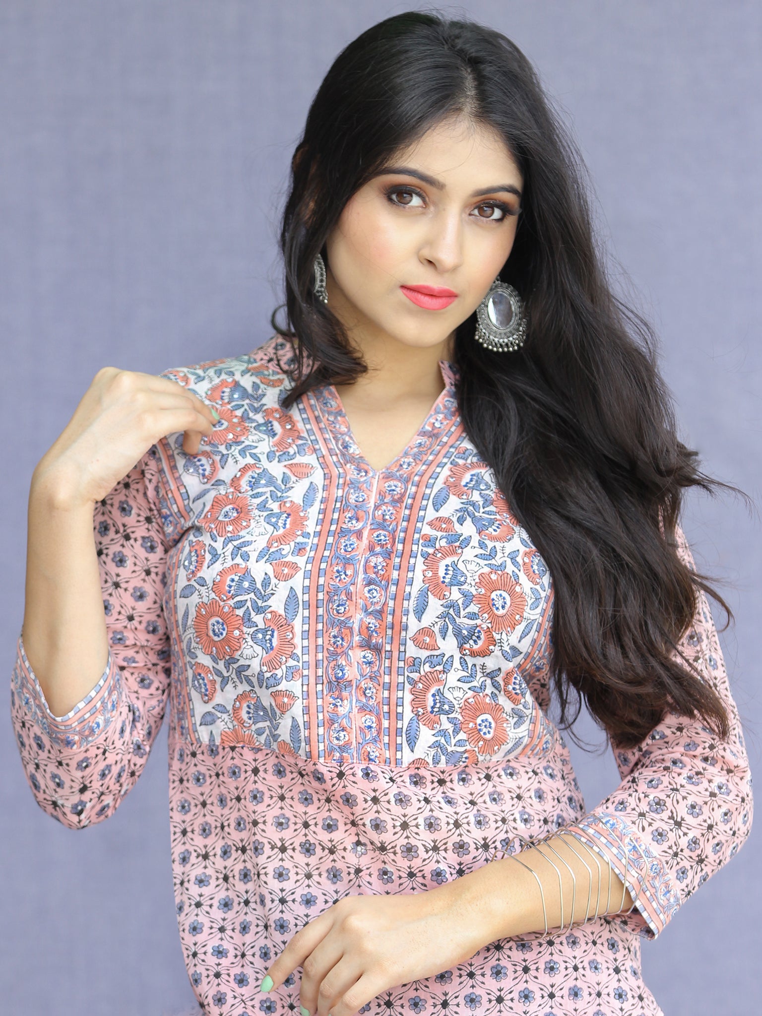 Product: Contains Hand Block Printed Cotton Kurta. Matching Pants/Bottoms and Dupatta are also available separately under BUY THE LOOK section.