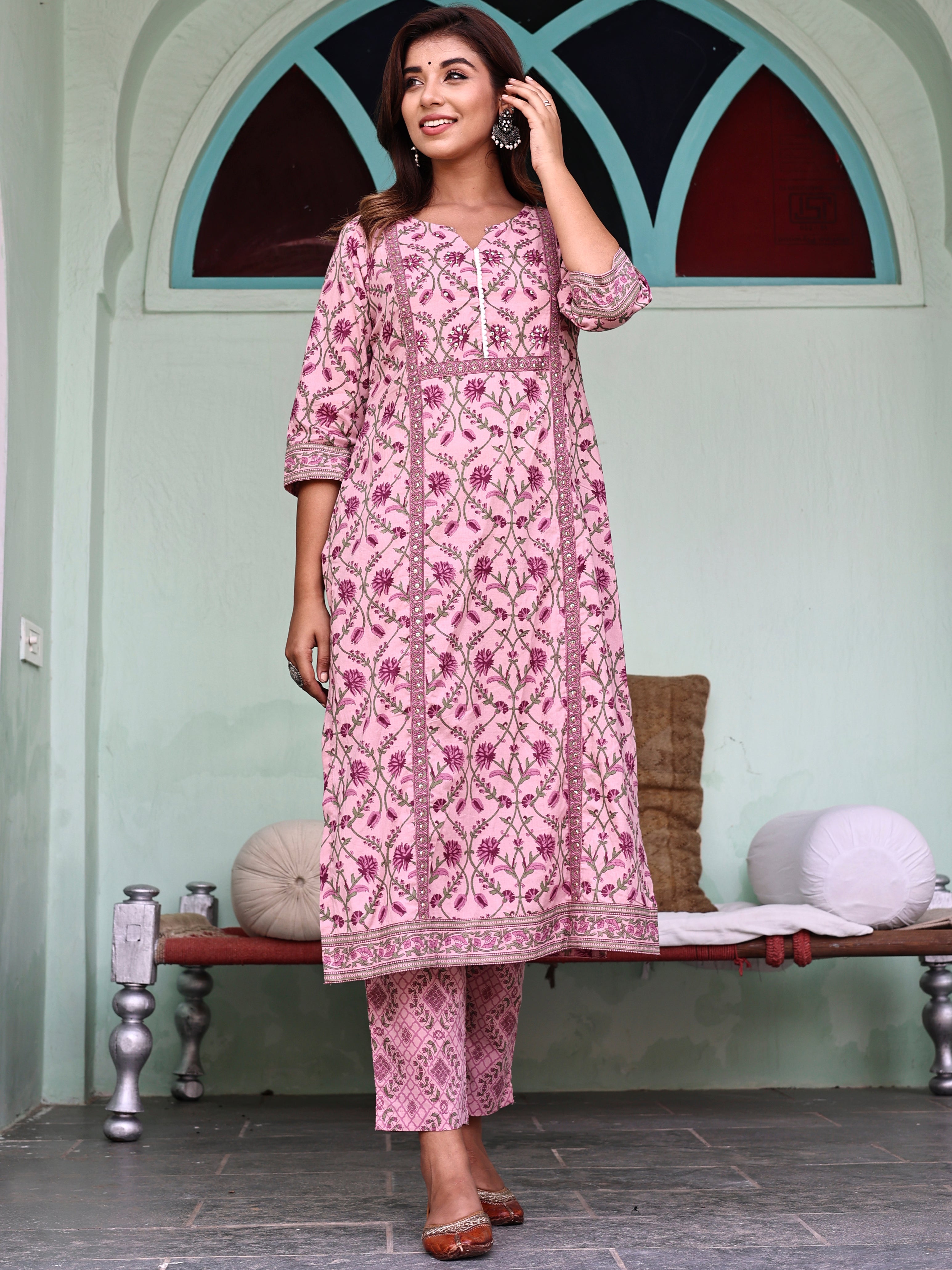 Product: This set contains Handcrafted Sanganeri Premium Cotton Kurta, 100% Cotton Pants and Kota Doria Dupatta.