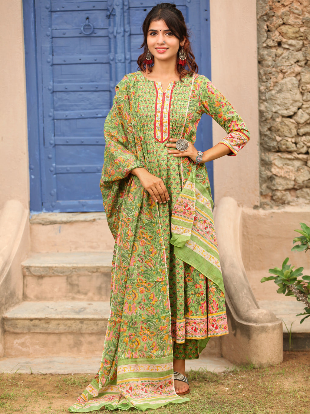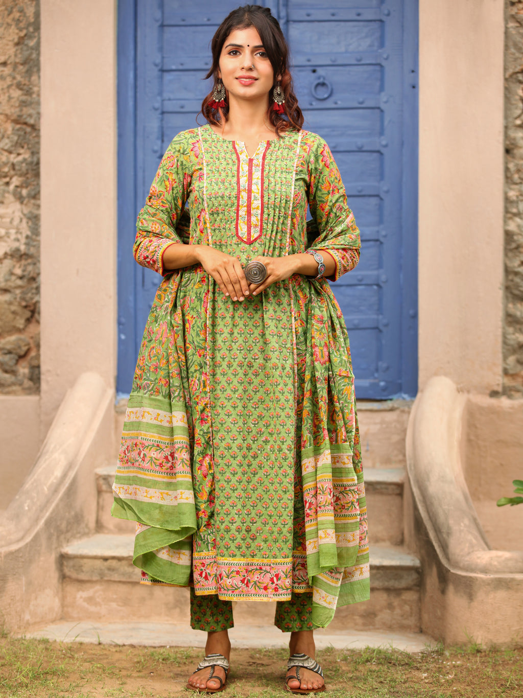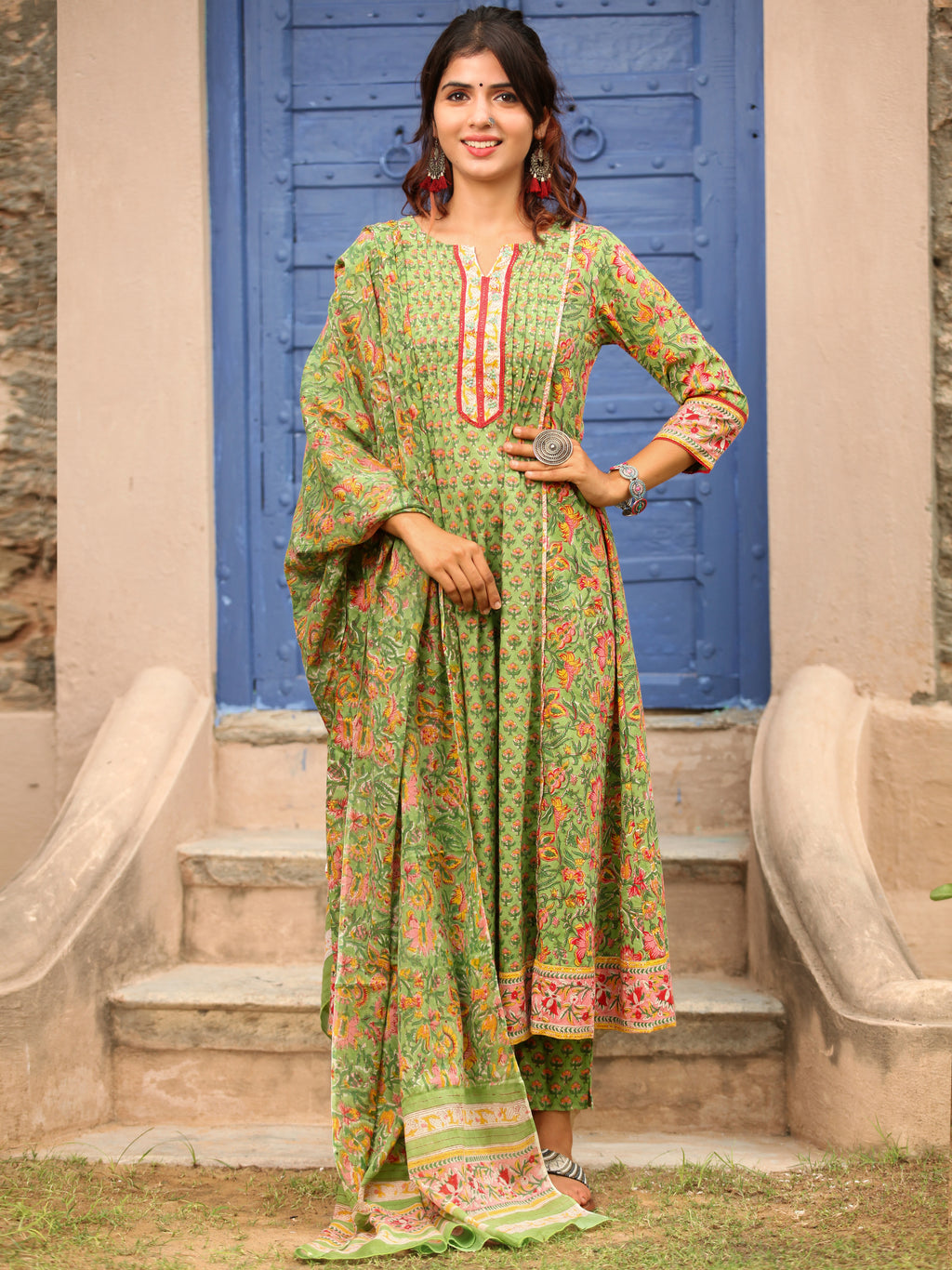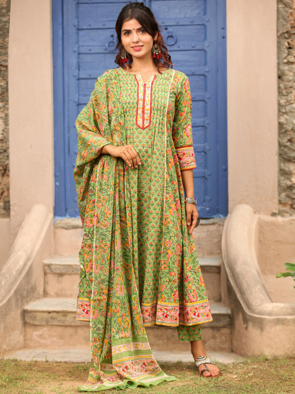 Product: This set contains Handcrafted Sanganeri Premium Cotton Kurta, 100% Cotton Pants and Cotton Dupatta.