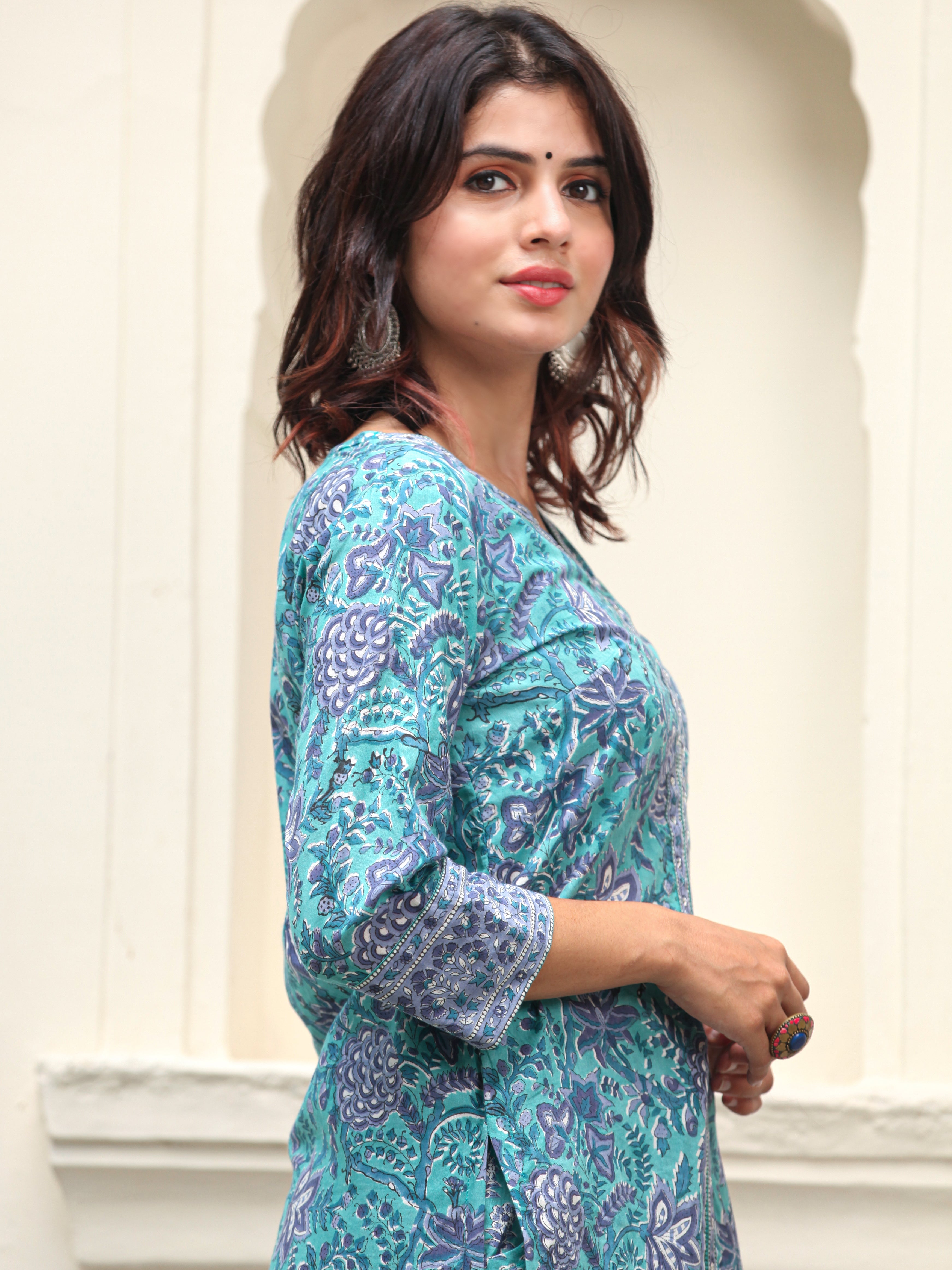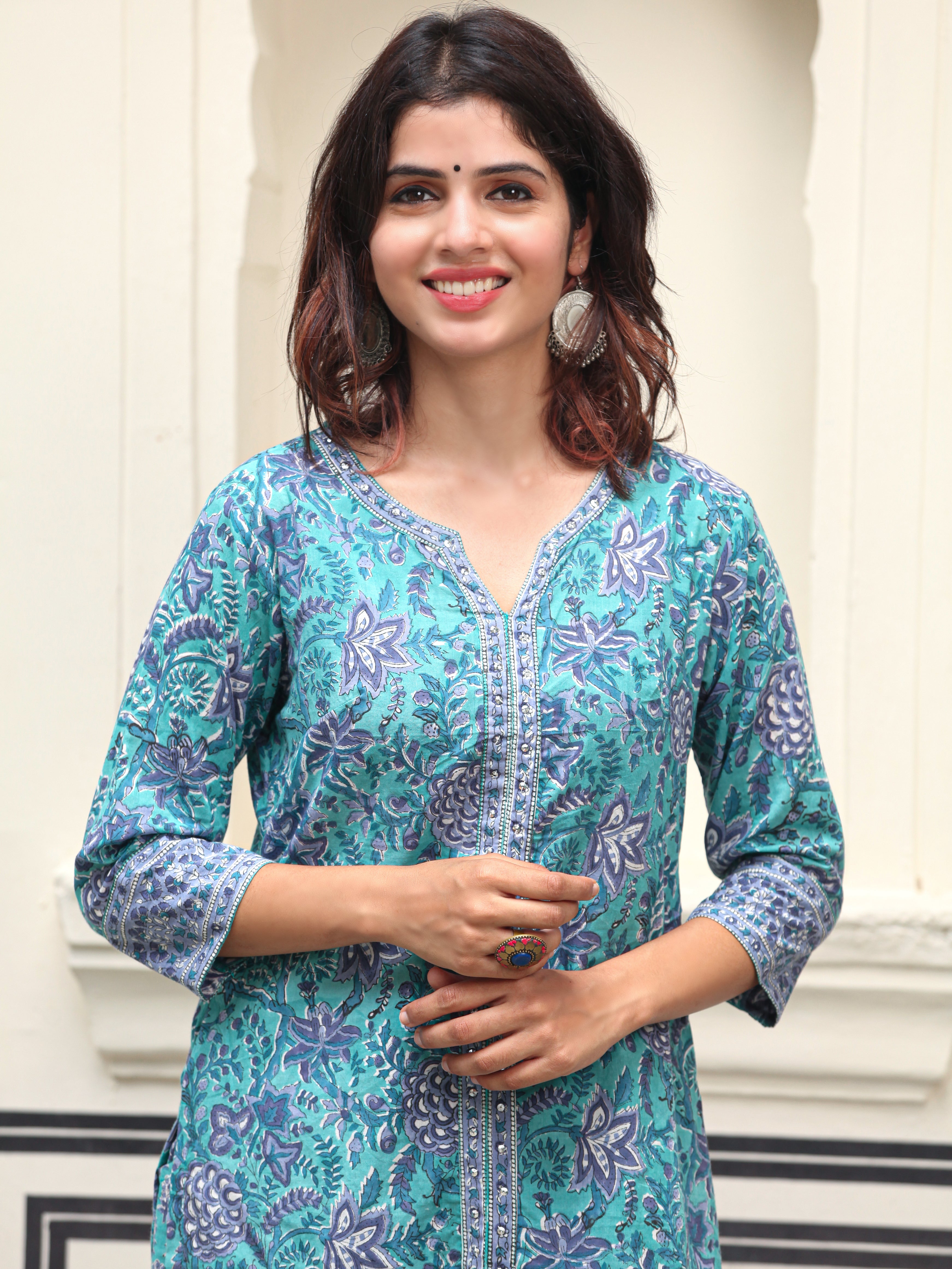 Product: Contains Hand Block Printed Cotton Kurta. Matching Pants/Bottoms and Dupatta are also available separately under BUY THE LOOK section.