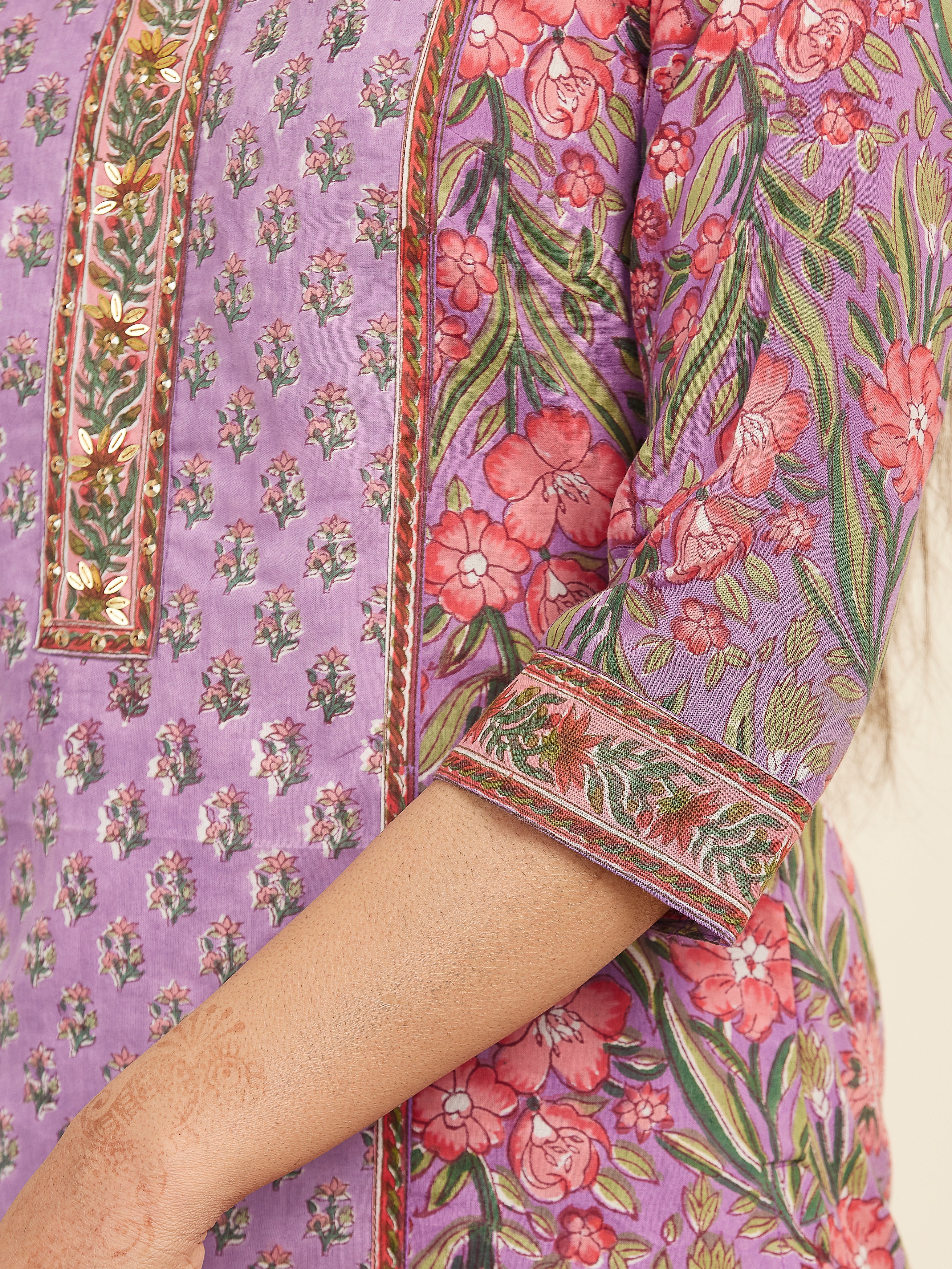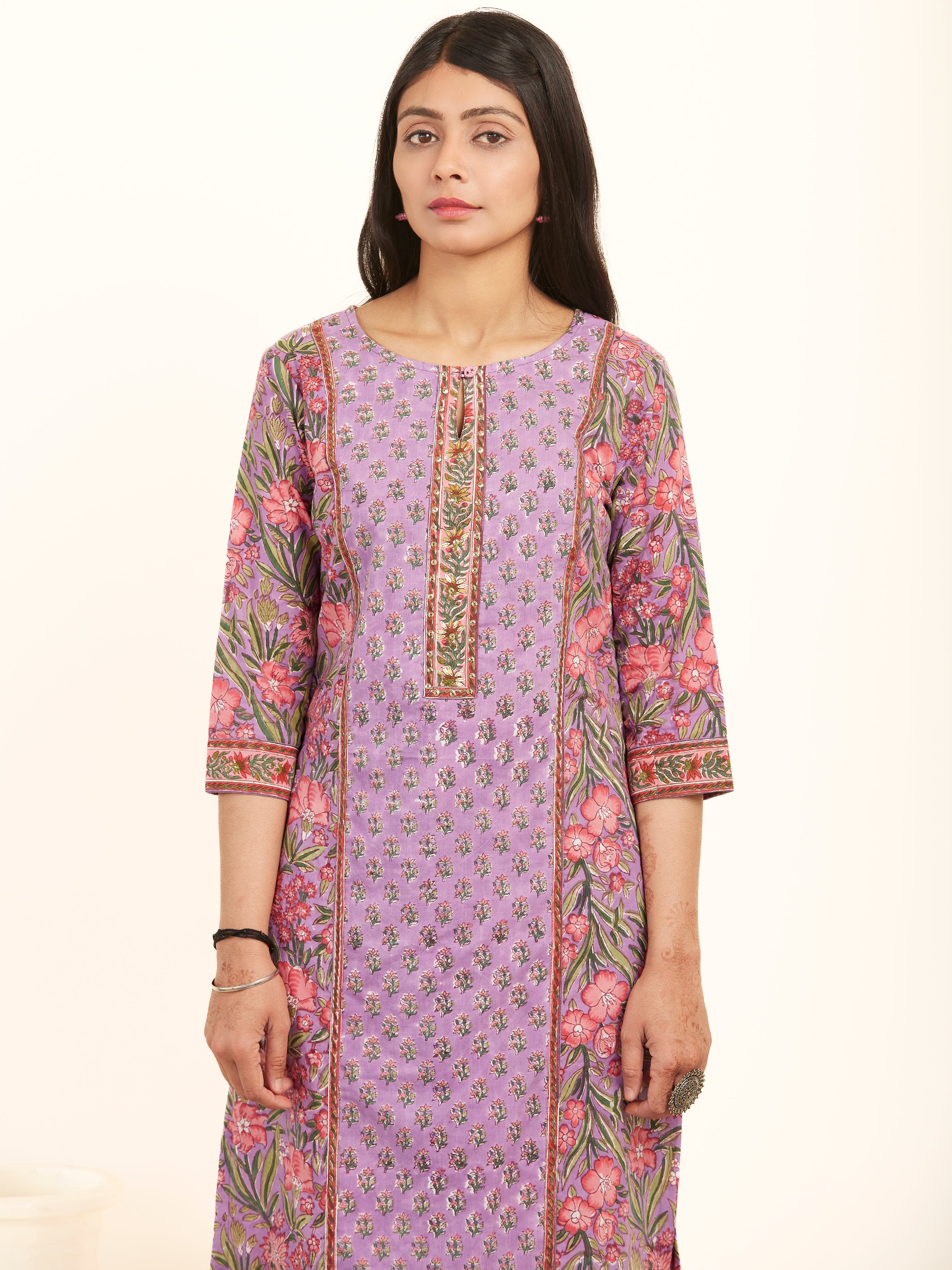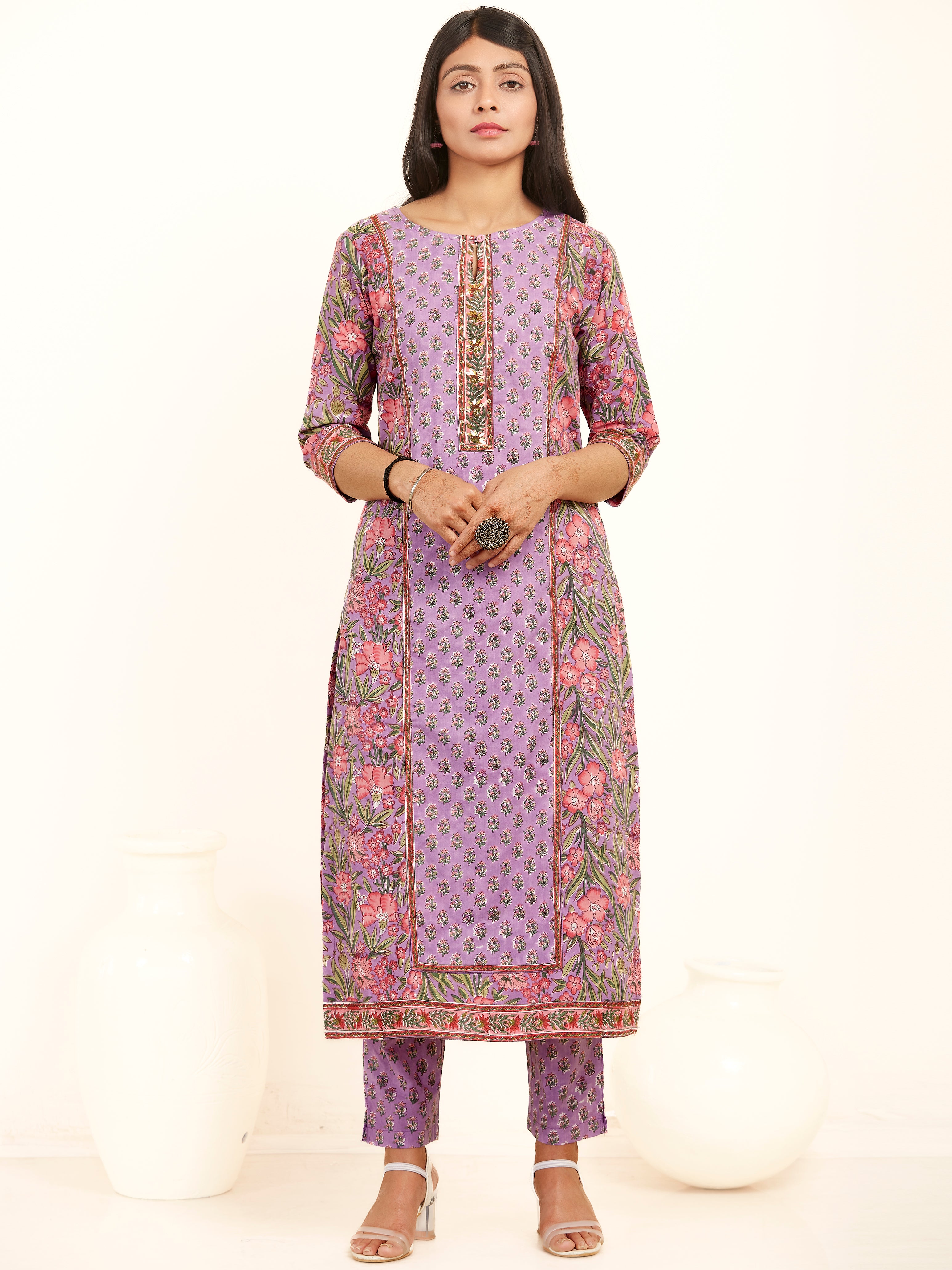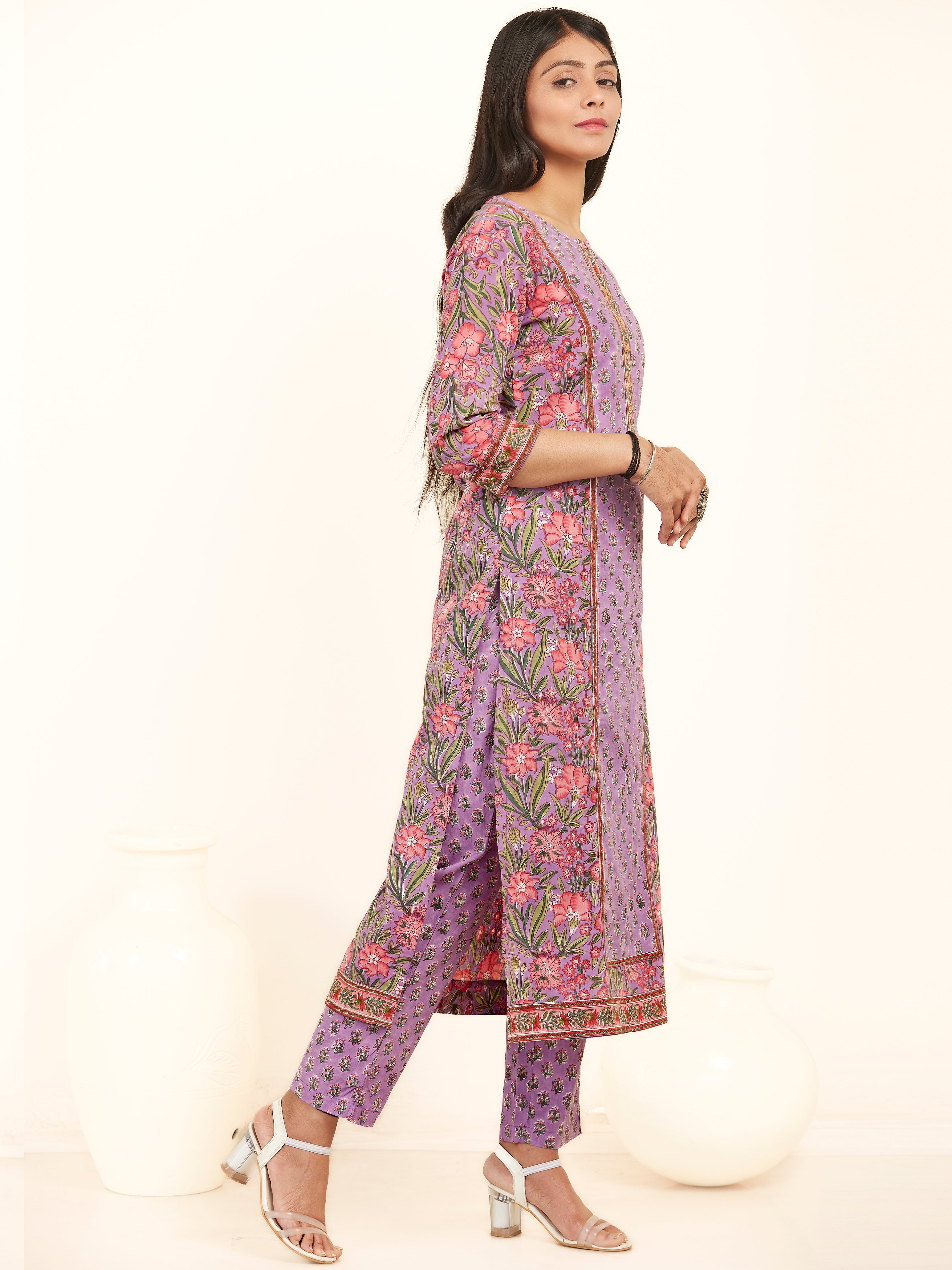 Product: Contains Sanganeri Hand Block Printed Cotton Kurta. Matching Pants/Bottoms and Dupatta are also available separately under BUY THE LOOK section.