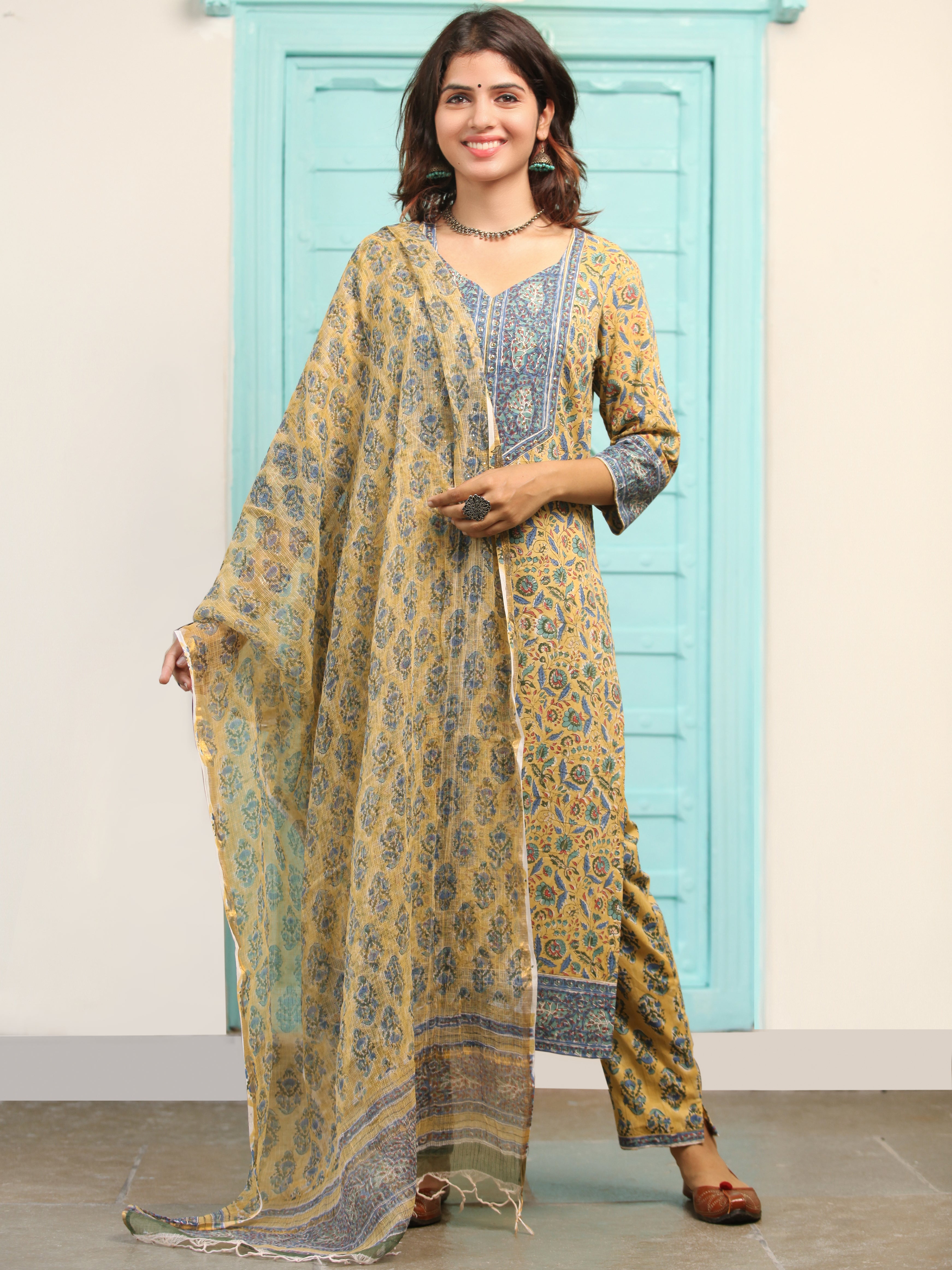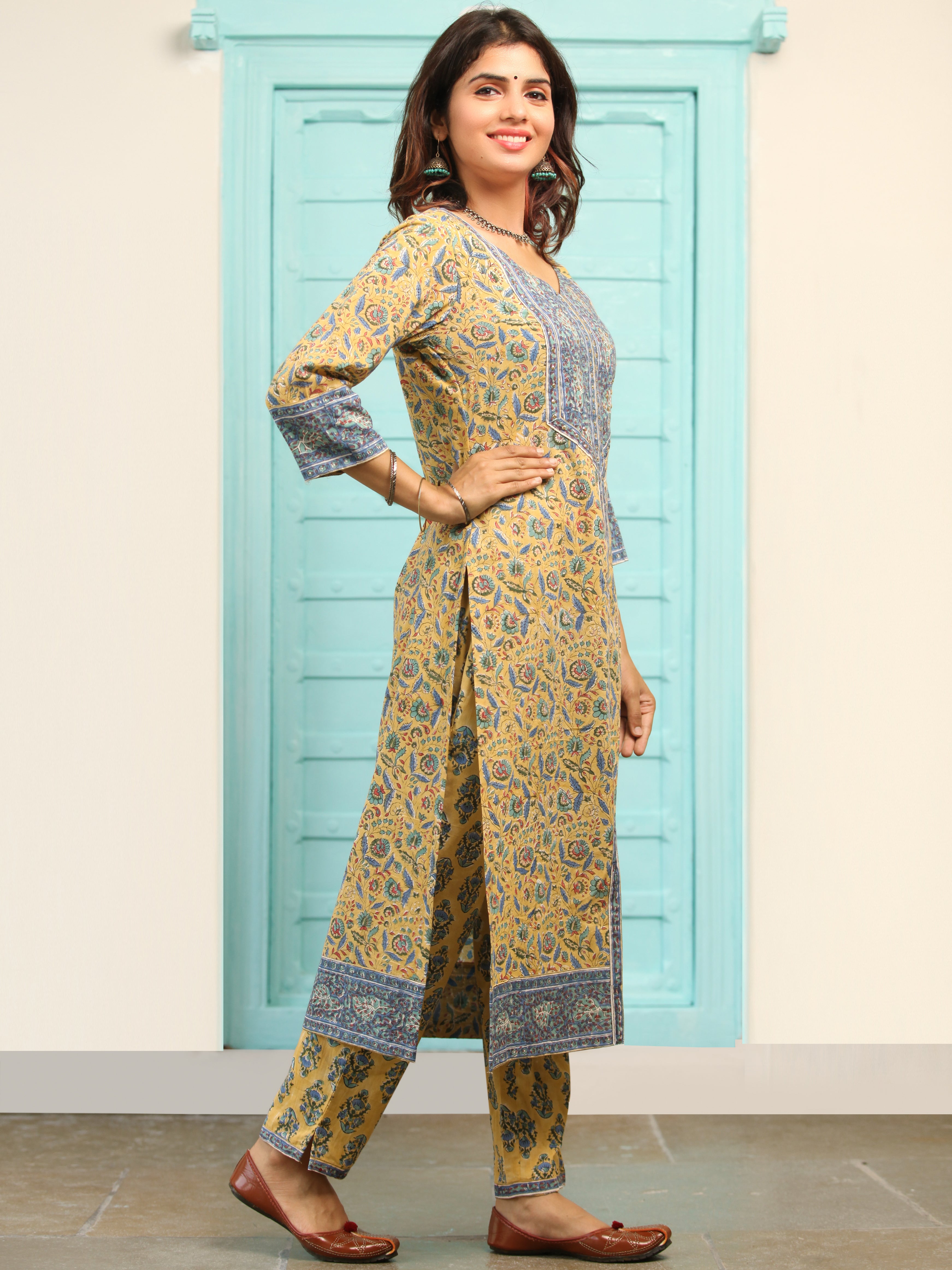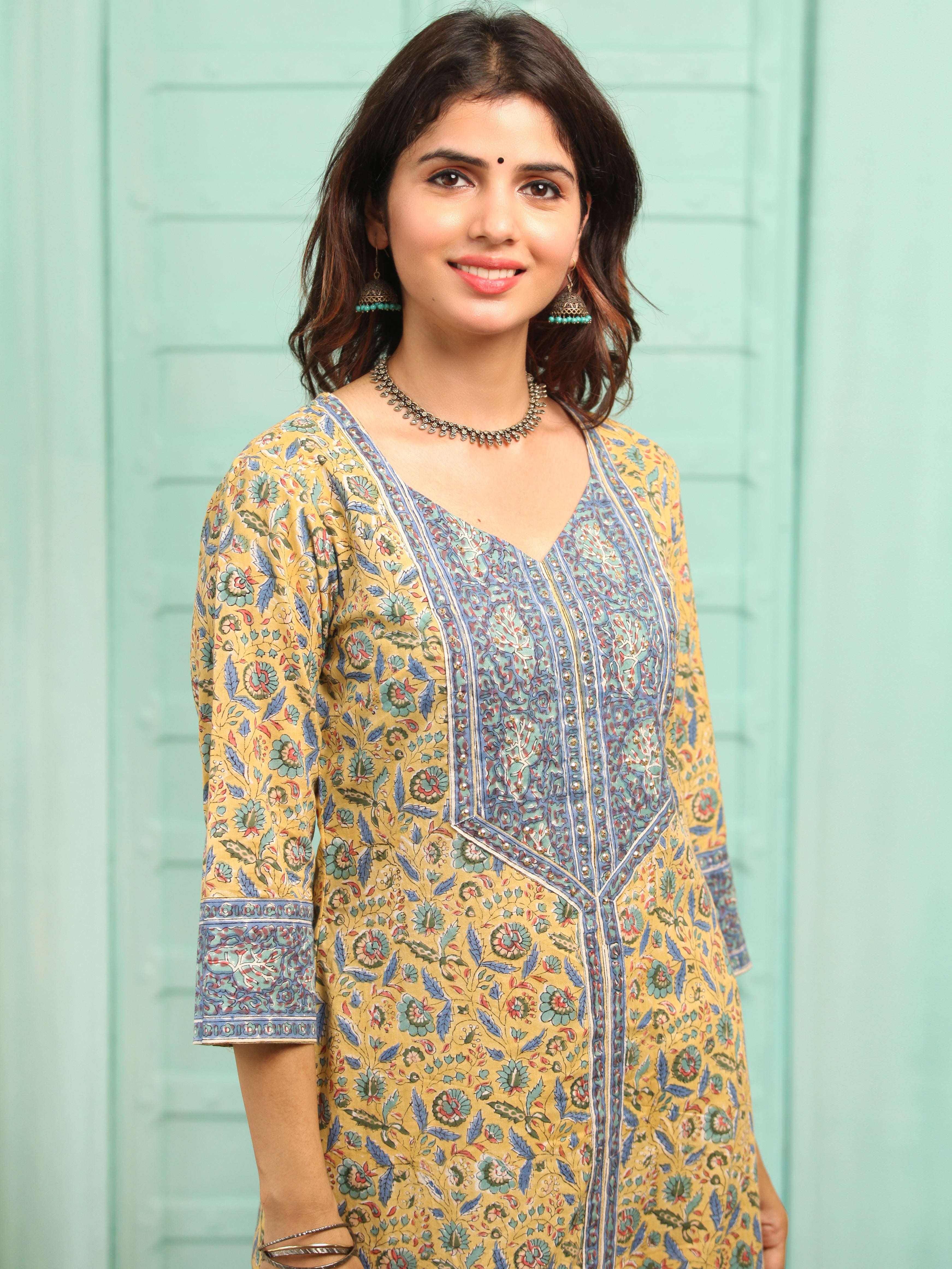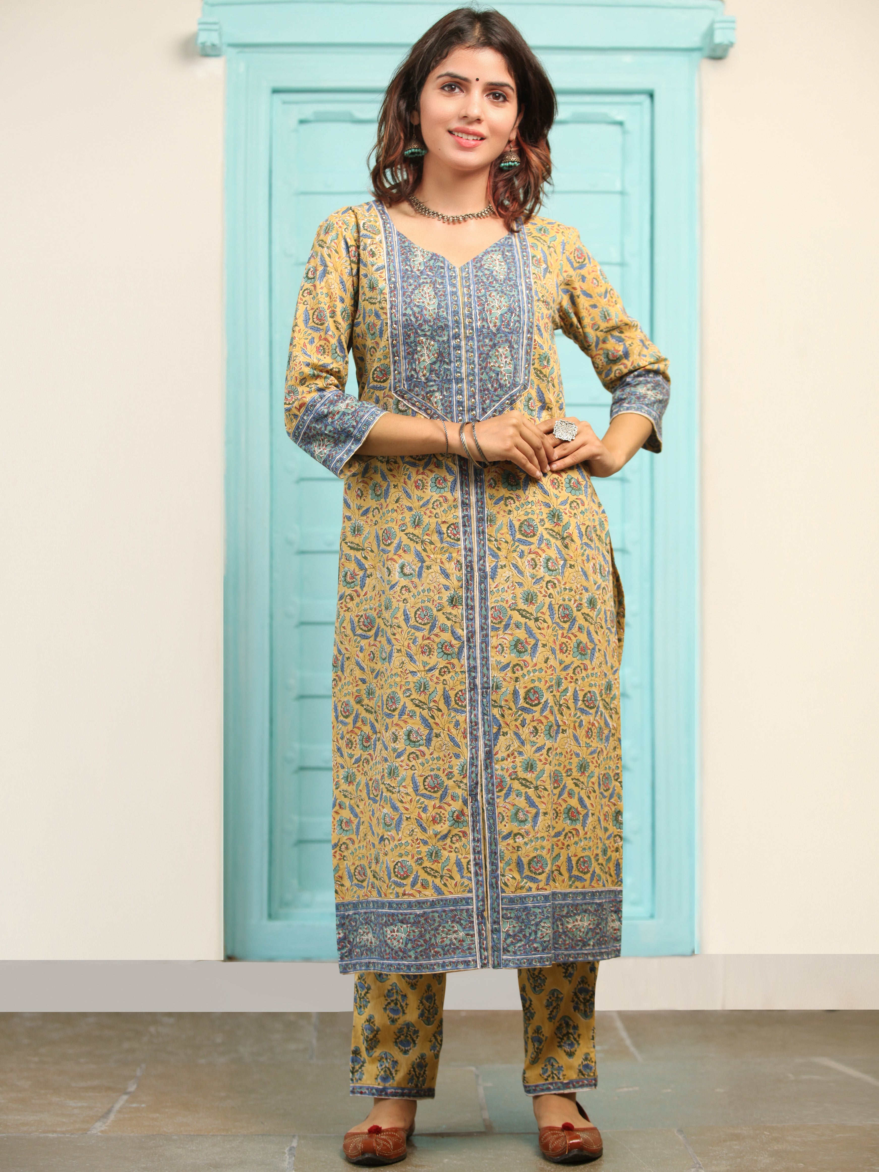 Product: This set contains Handcrafted Sanganeri Premium Cotton Kurta, 100% Cotton Pants and Cotton Dupatta.