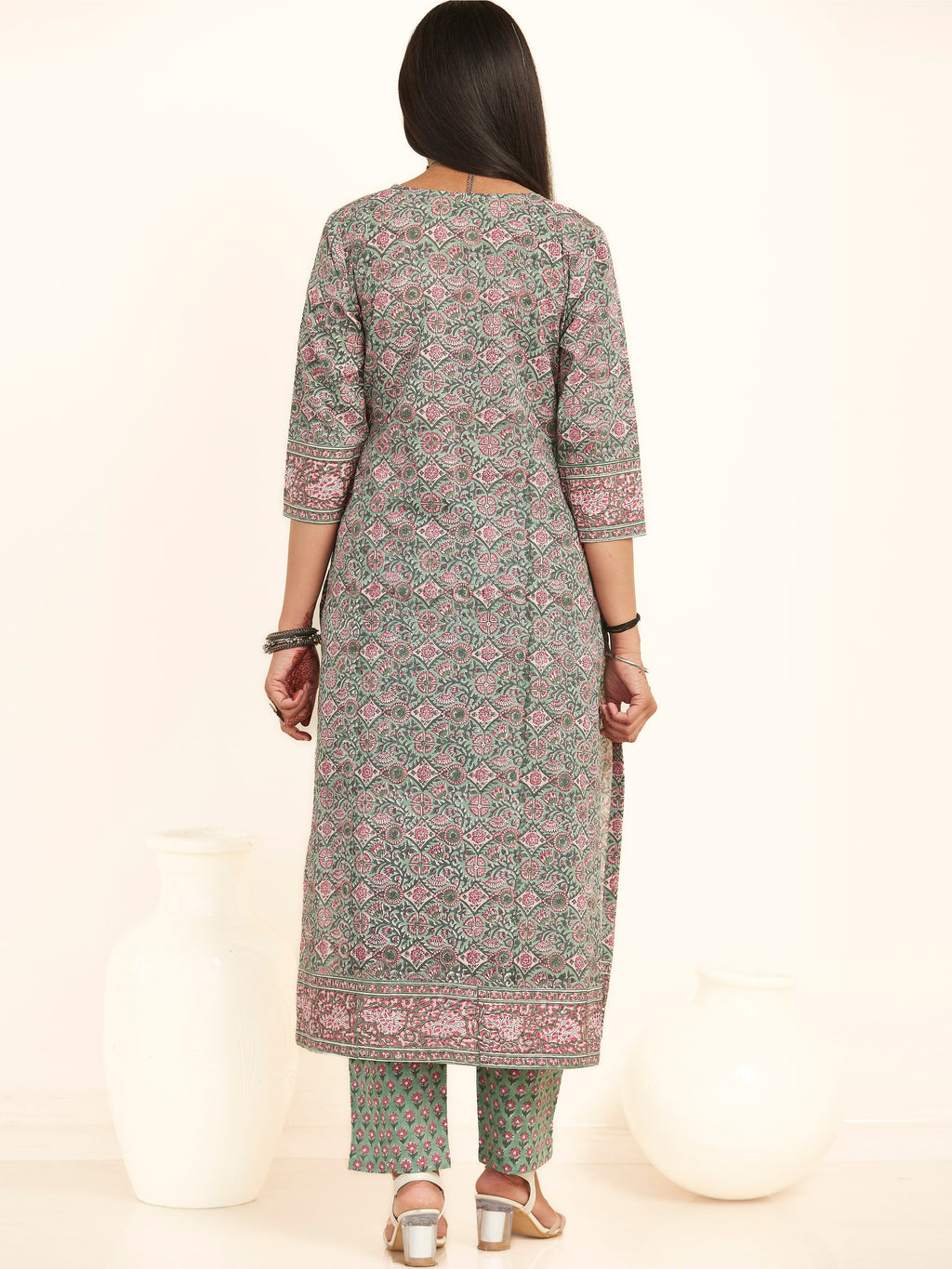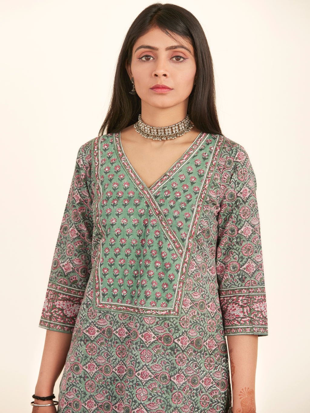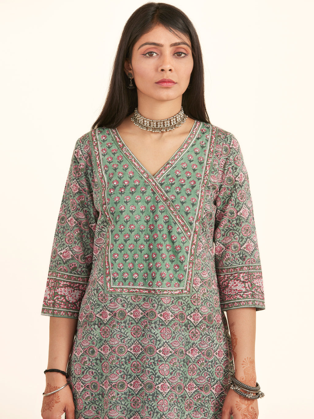 Product: This set contains Handcrafted Sanganeri Premium Cotton Kurta, 100% Cotton Pants and Kota Doria Dupatta.