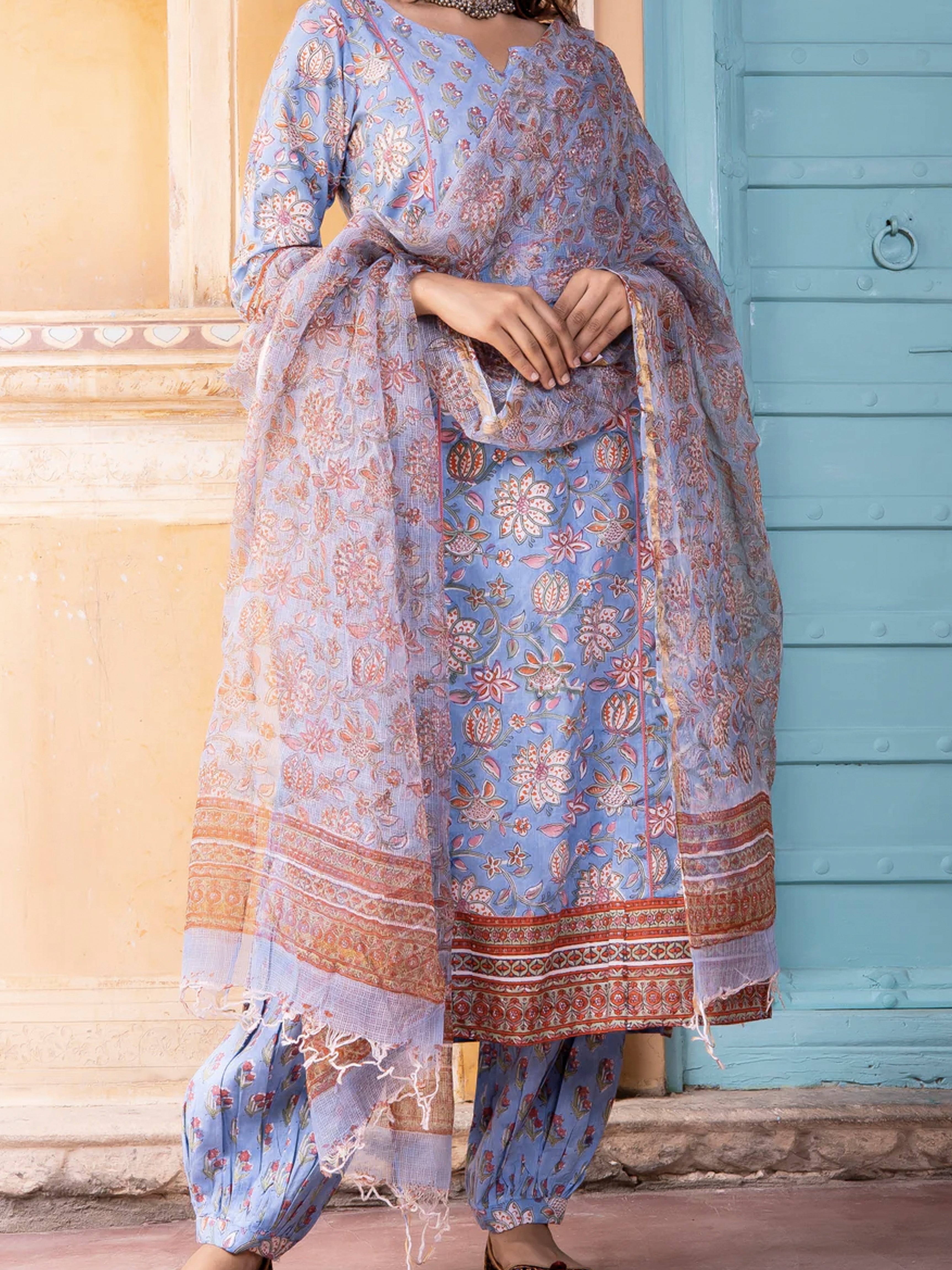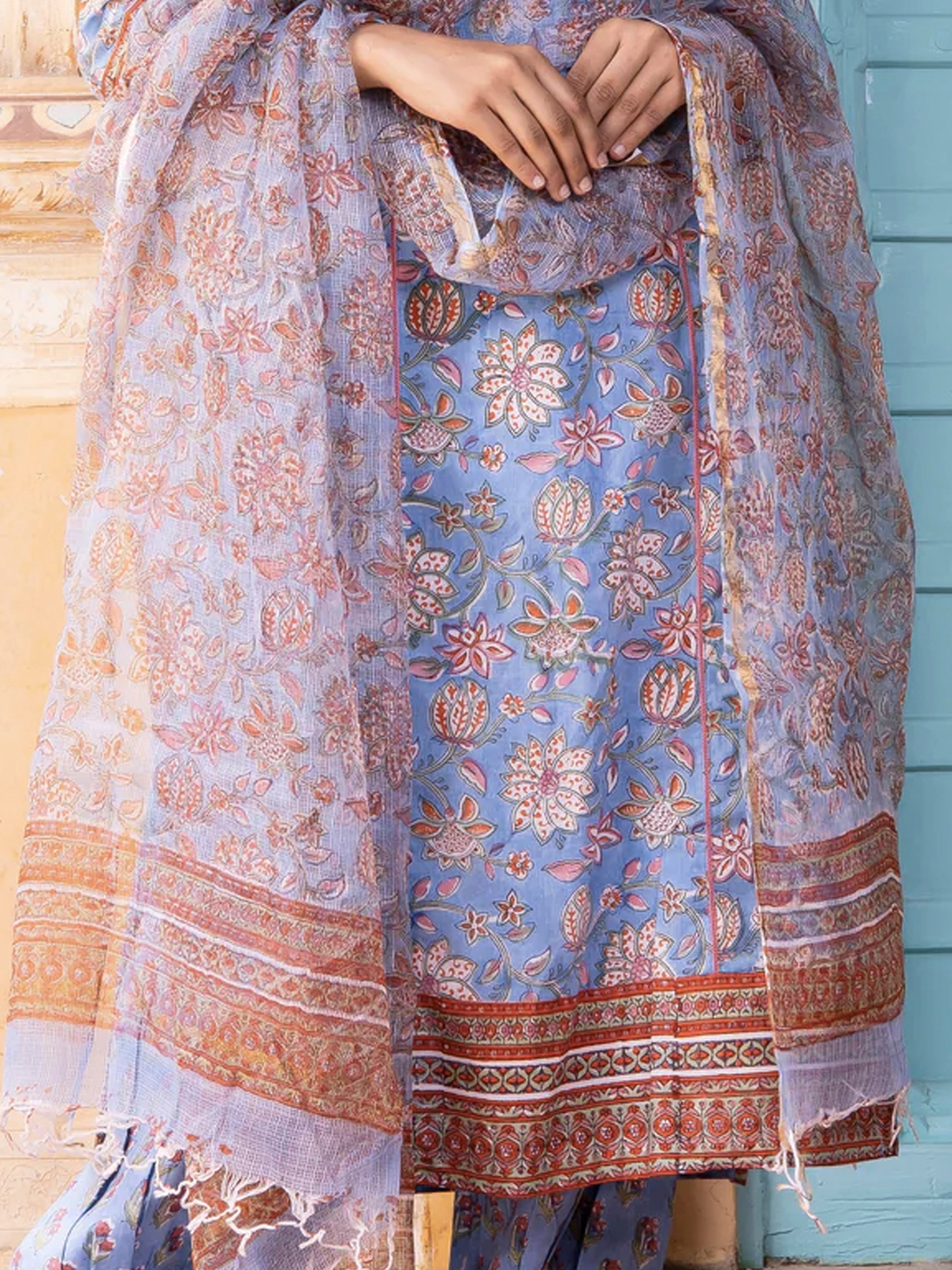 Product : Contains Sanganeri Hand Block Printed Kota Doria Dupatta. Matching Kurta and Pants are also available separately under BUY THE LOOK section.