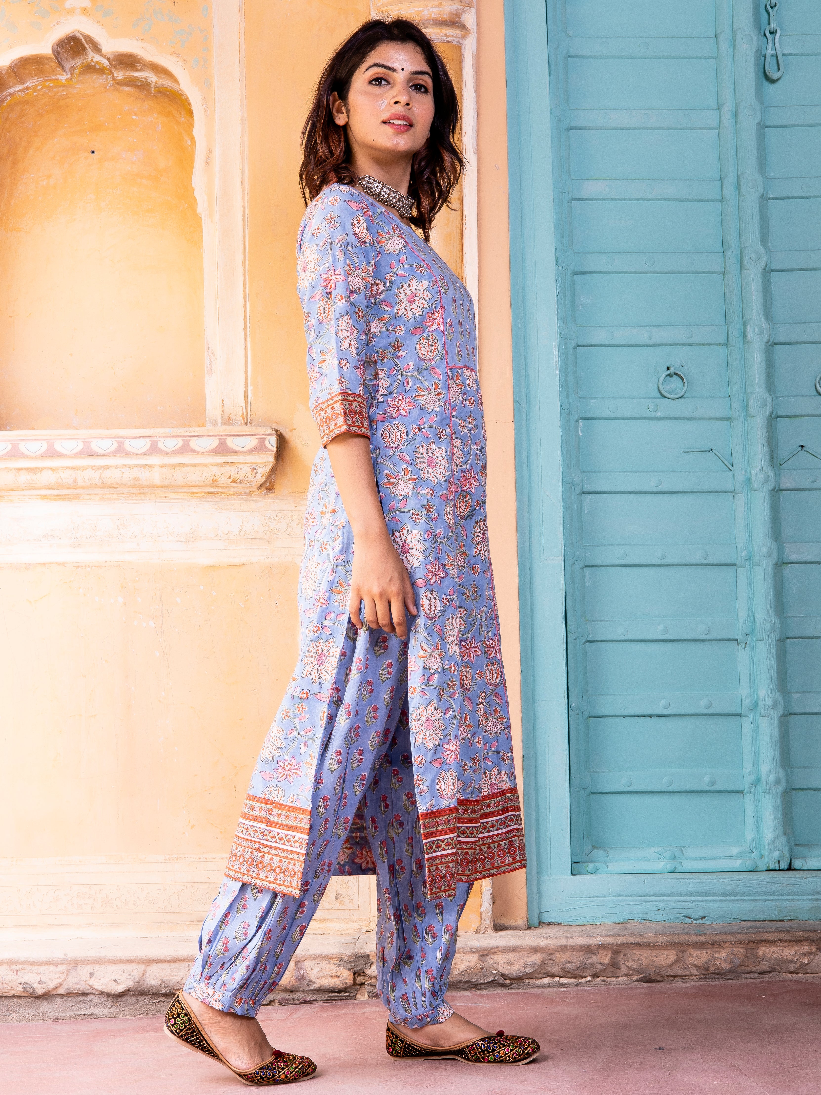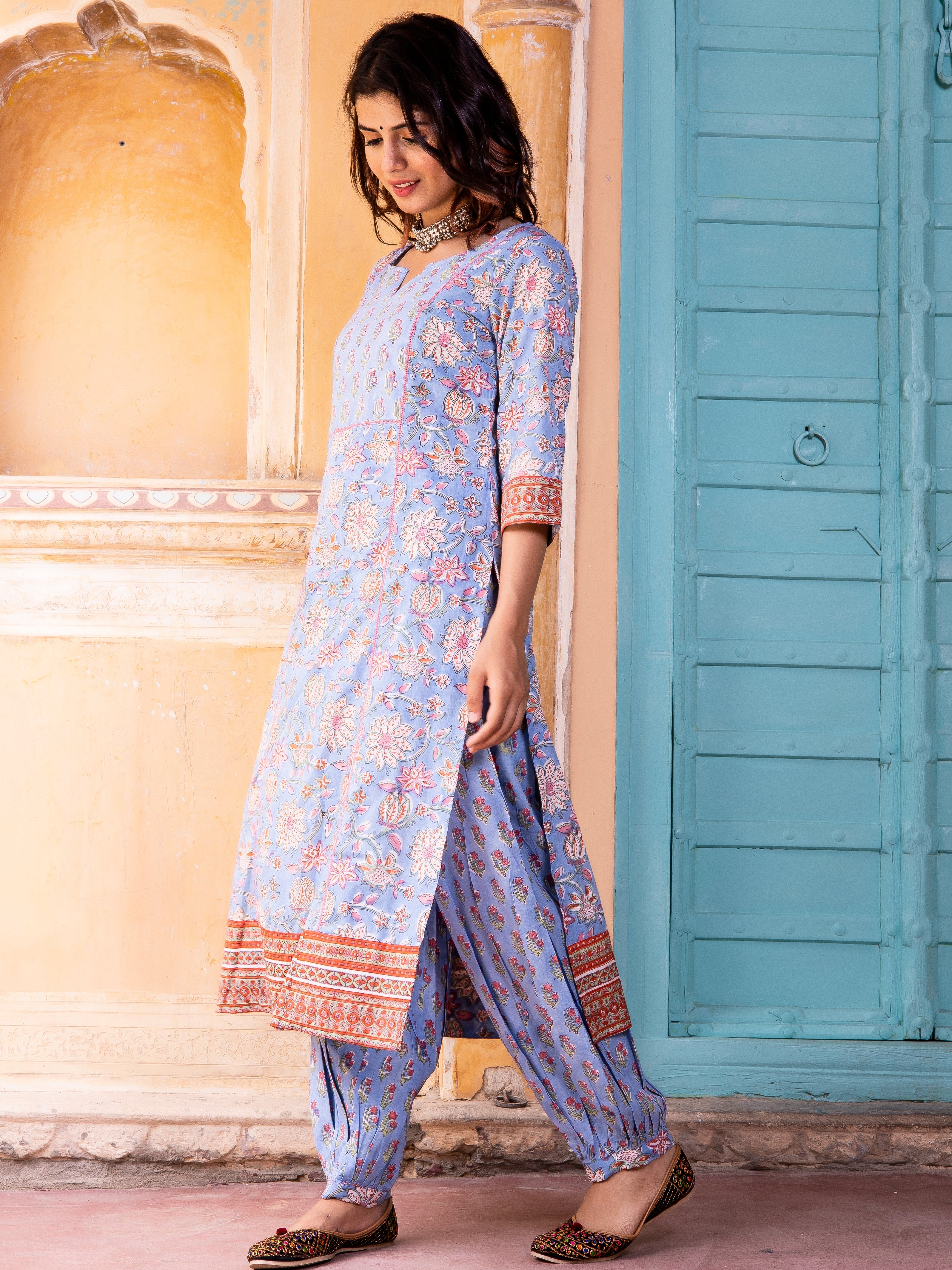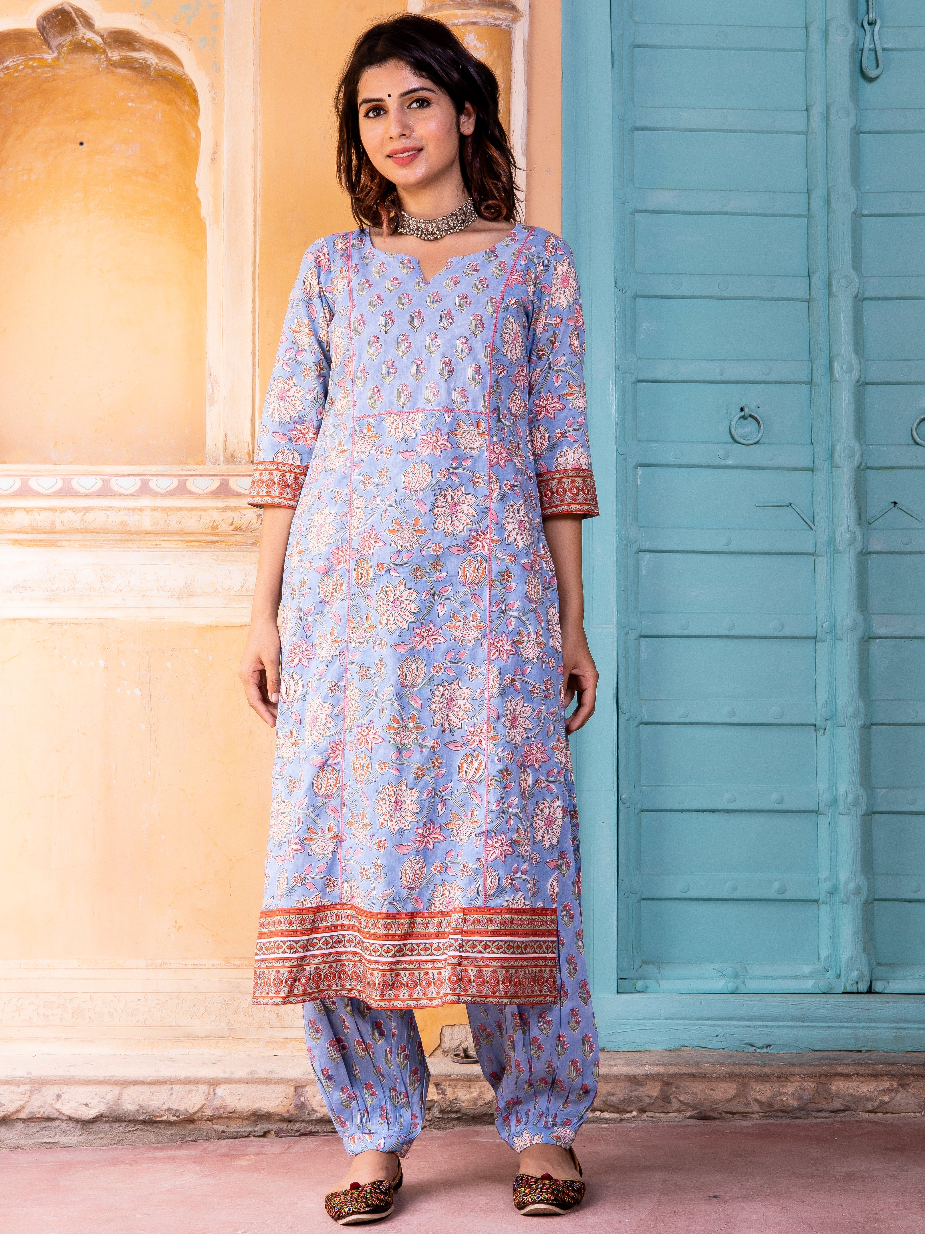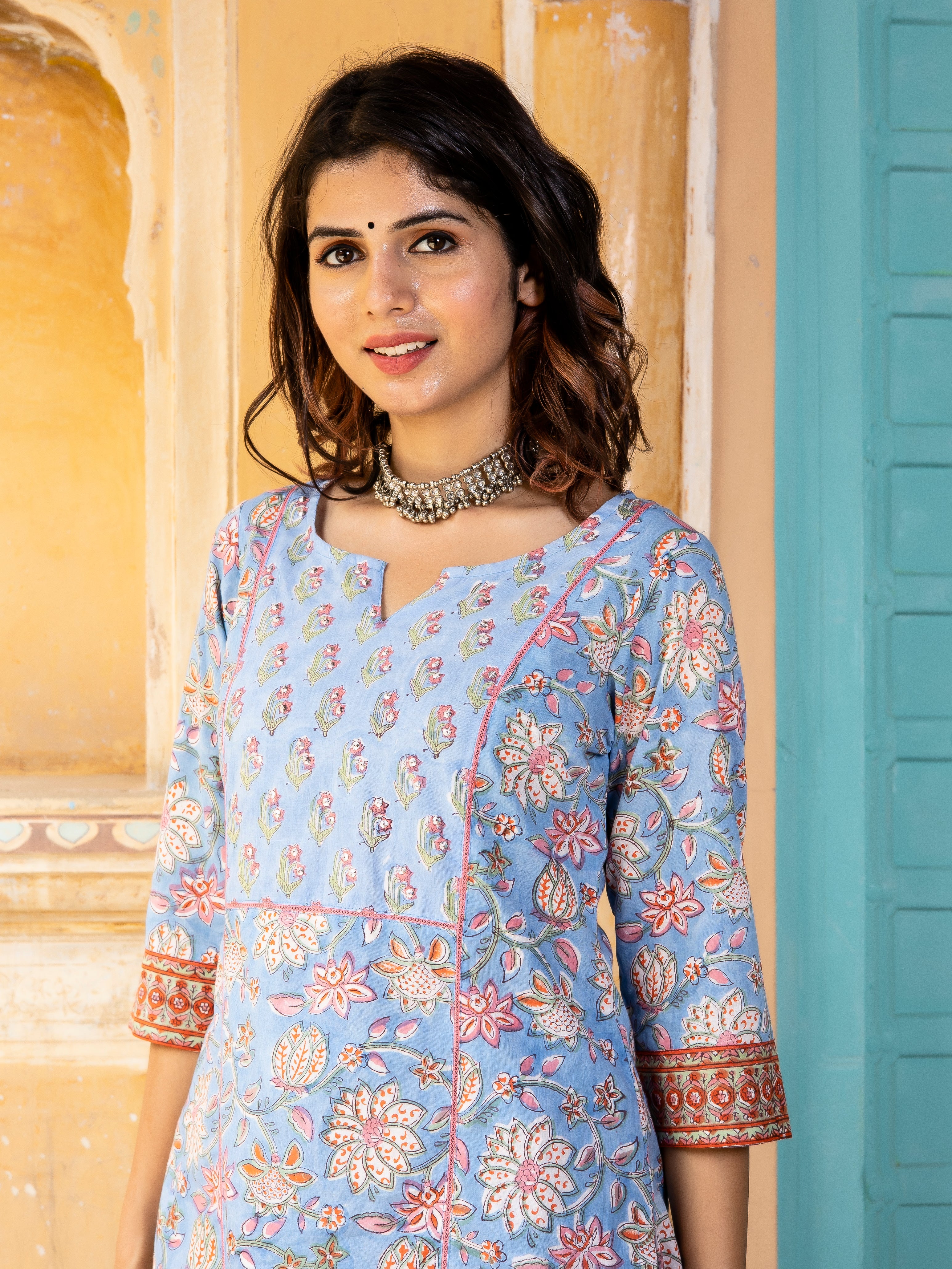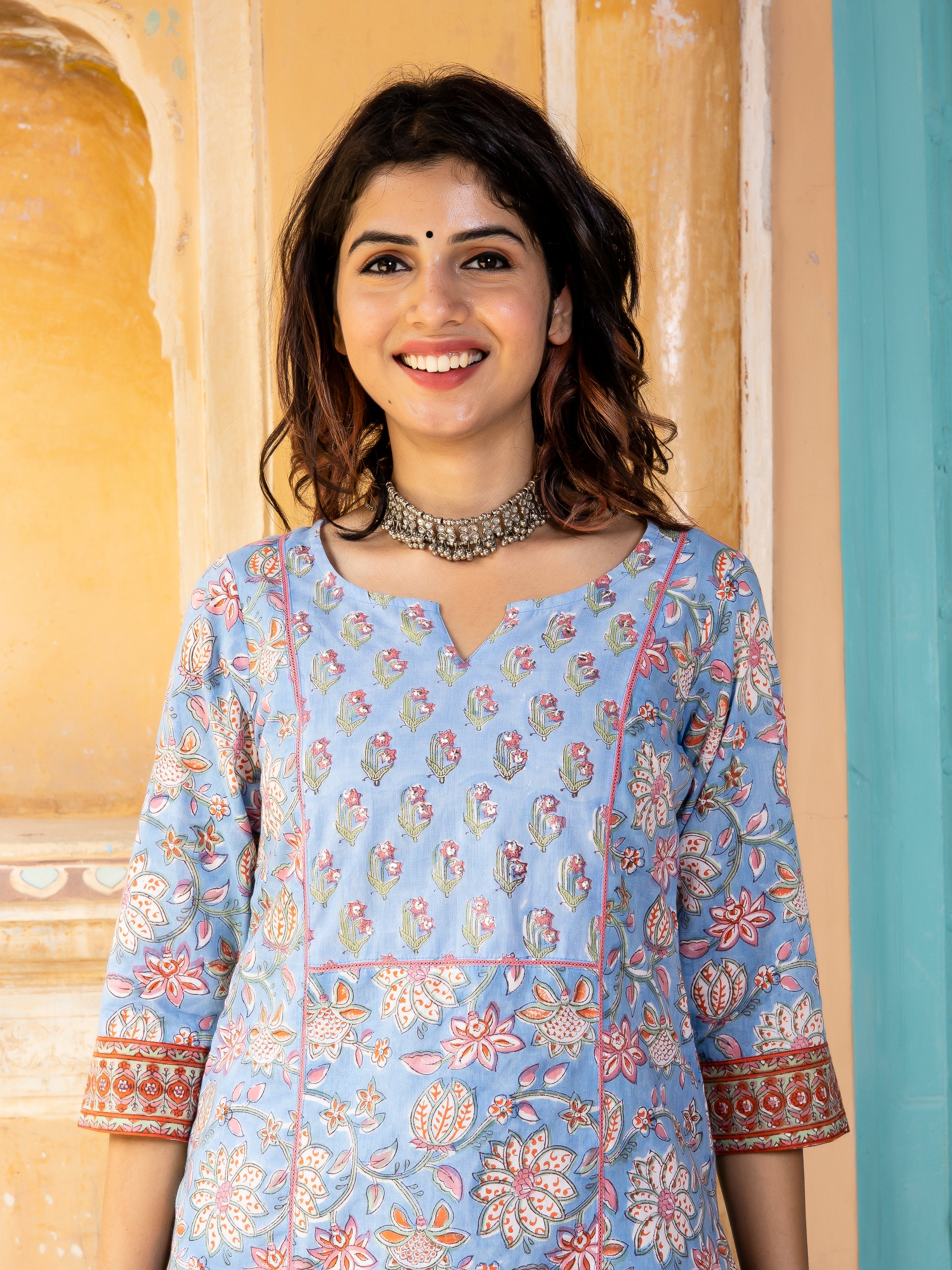 Product: Contains Hand Block Printed Cotton Kurta. Matching Pants/Bottoms and Dupatta are also available separately under BUY THE LOOK section.