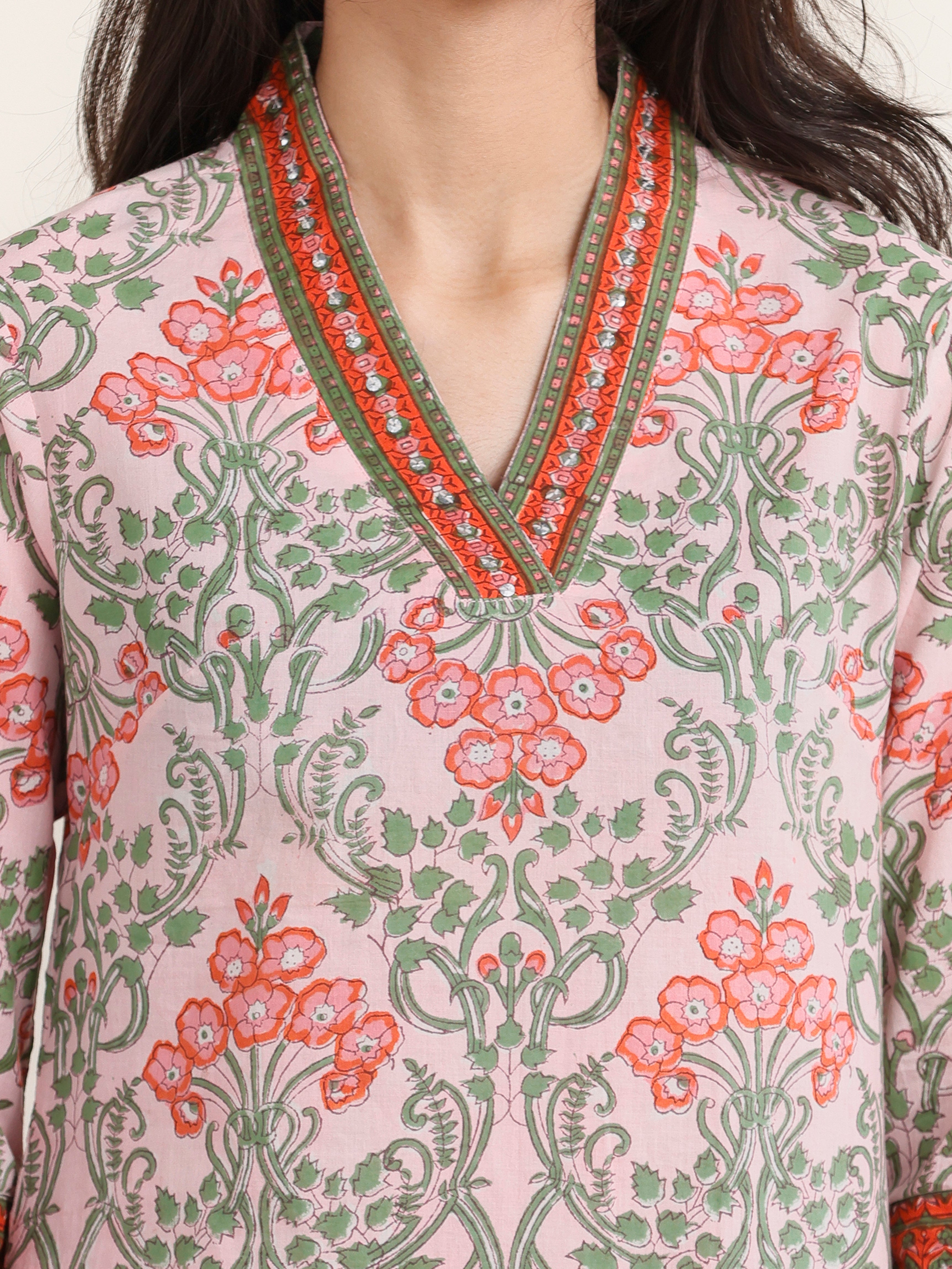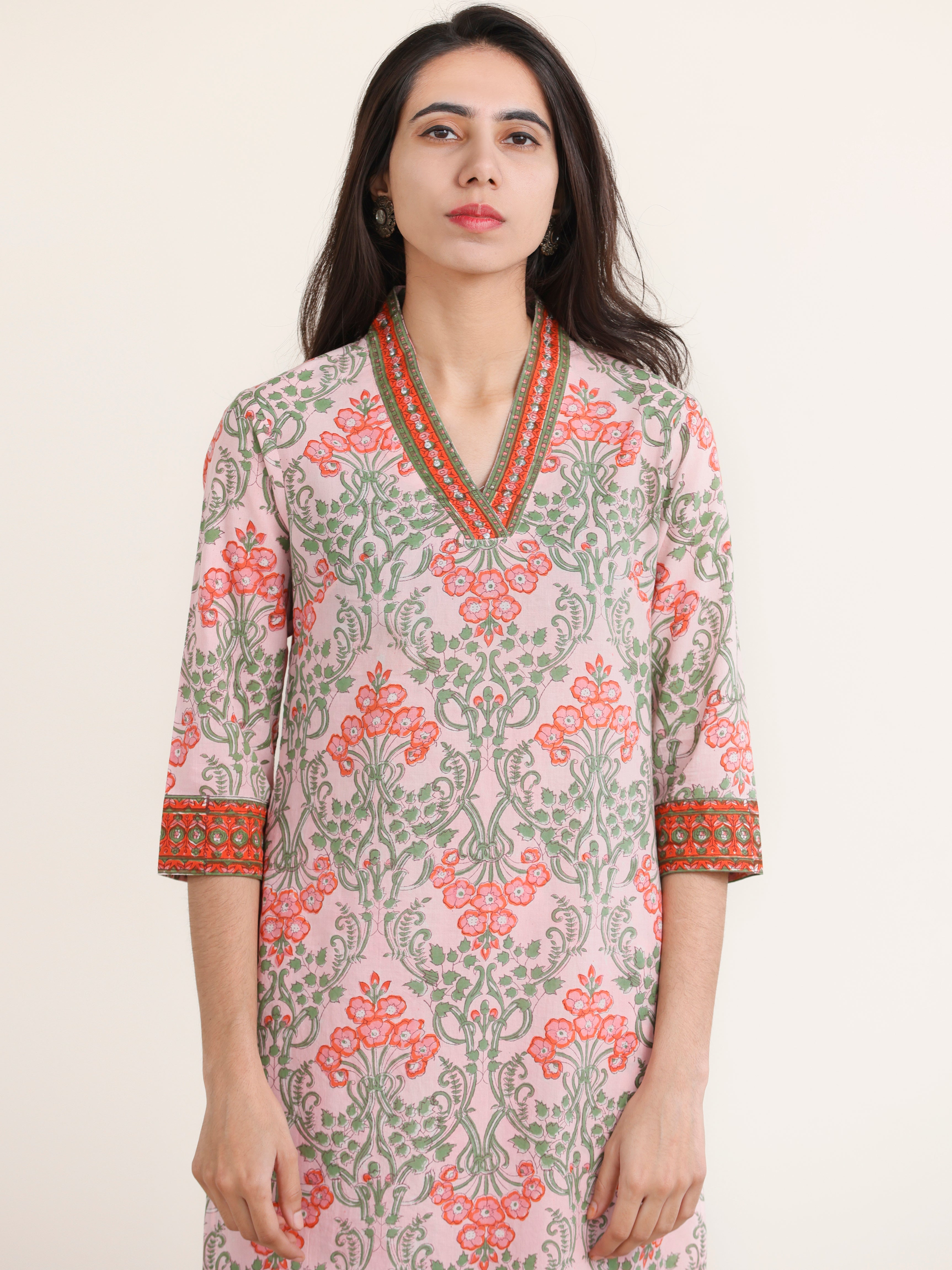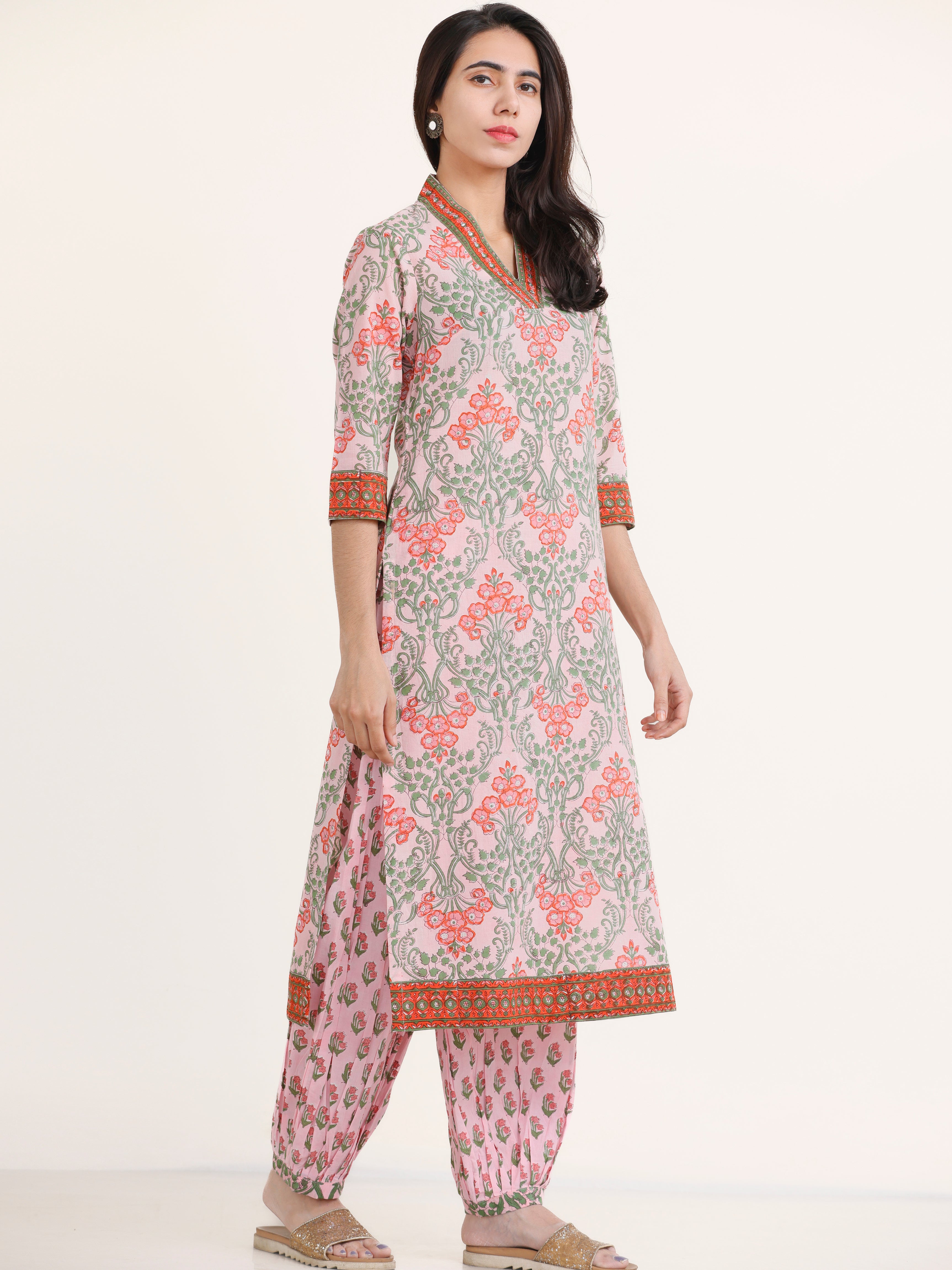 Product: Contains Hand Block Printed Cotton Kurta. Matching Pants/Bottoms and Dupatta are also available separately under BUY THE LOOK section.
