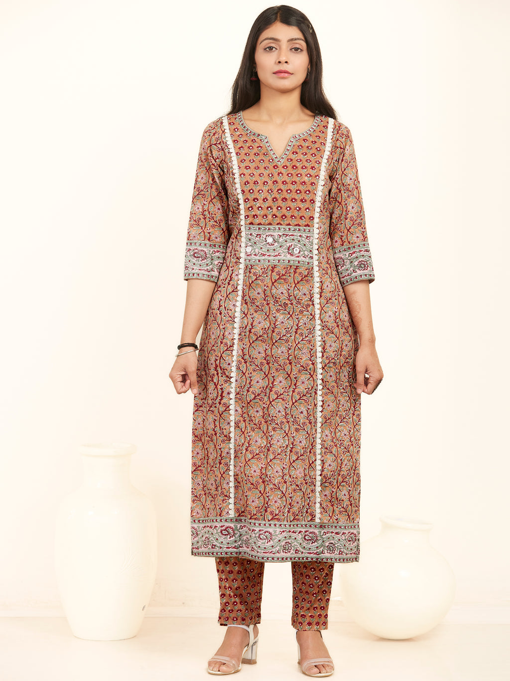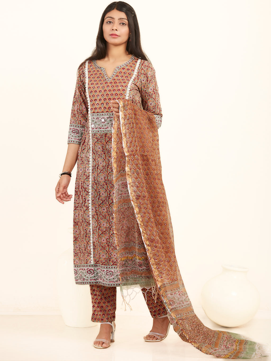 Jashn Neha Set Of Kurta Pants Kota Doria Dupatta