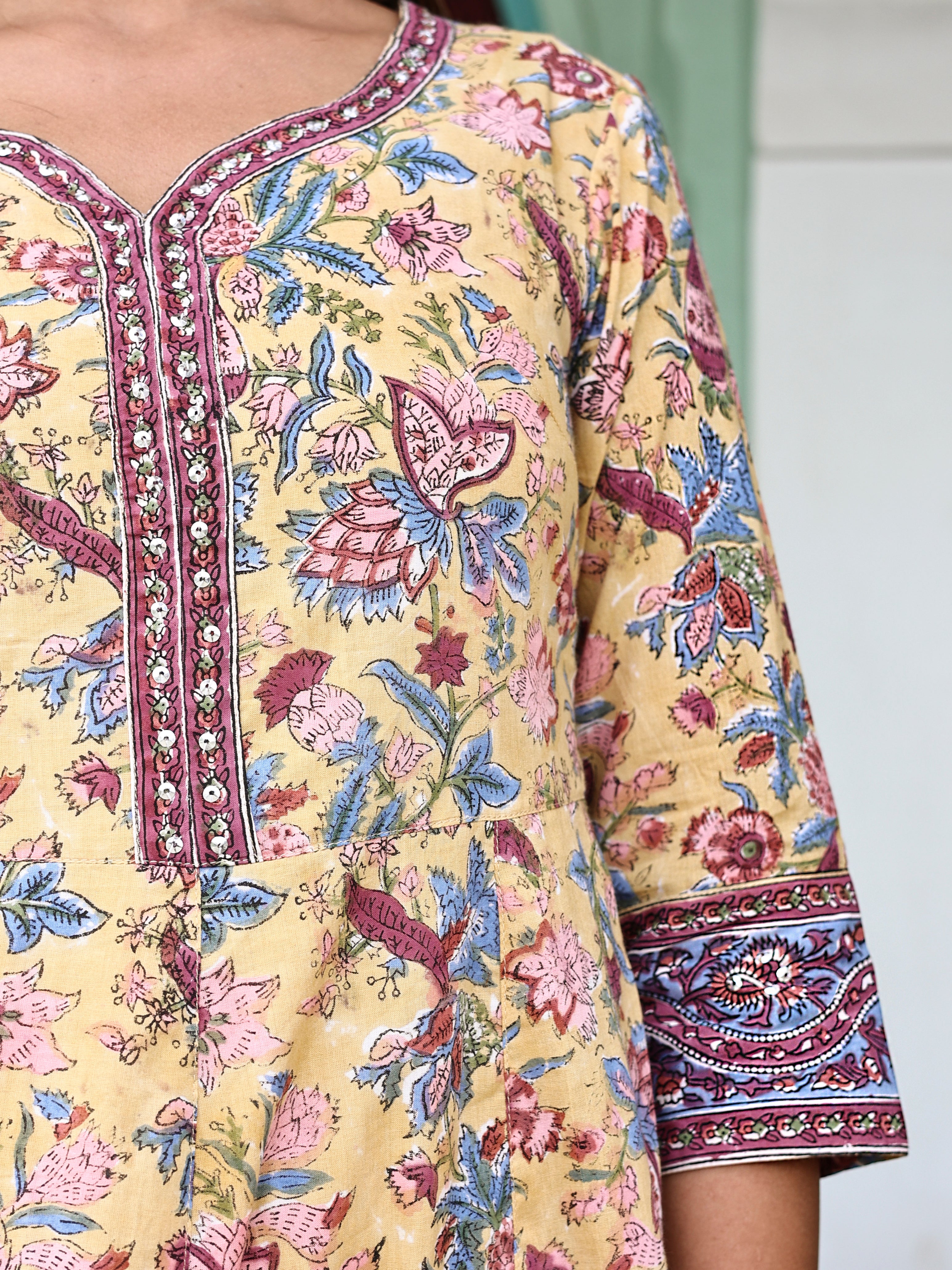 Product: Contains Hand Block Printed Cotton Kurta. Matching Pants/Bottoms and Dupatta are also available separately under BUY THE LOOK section.