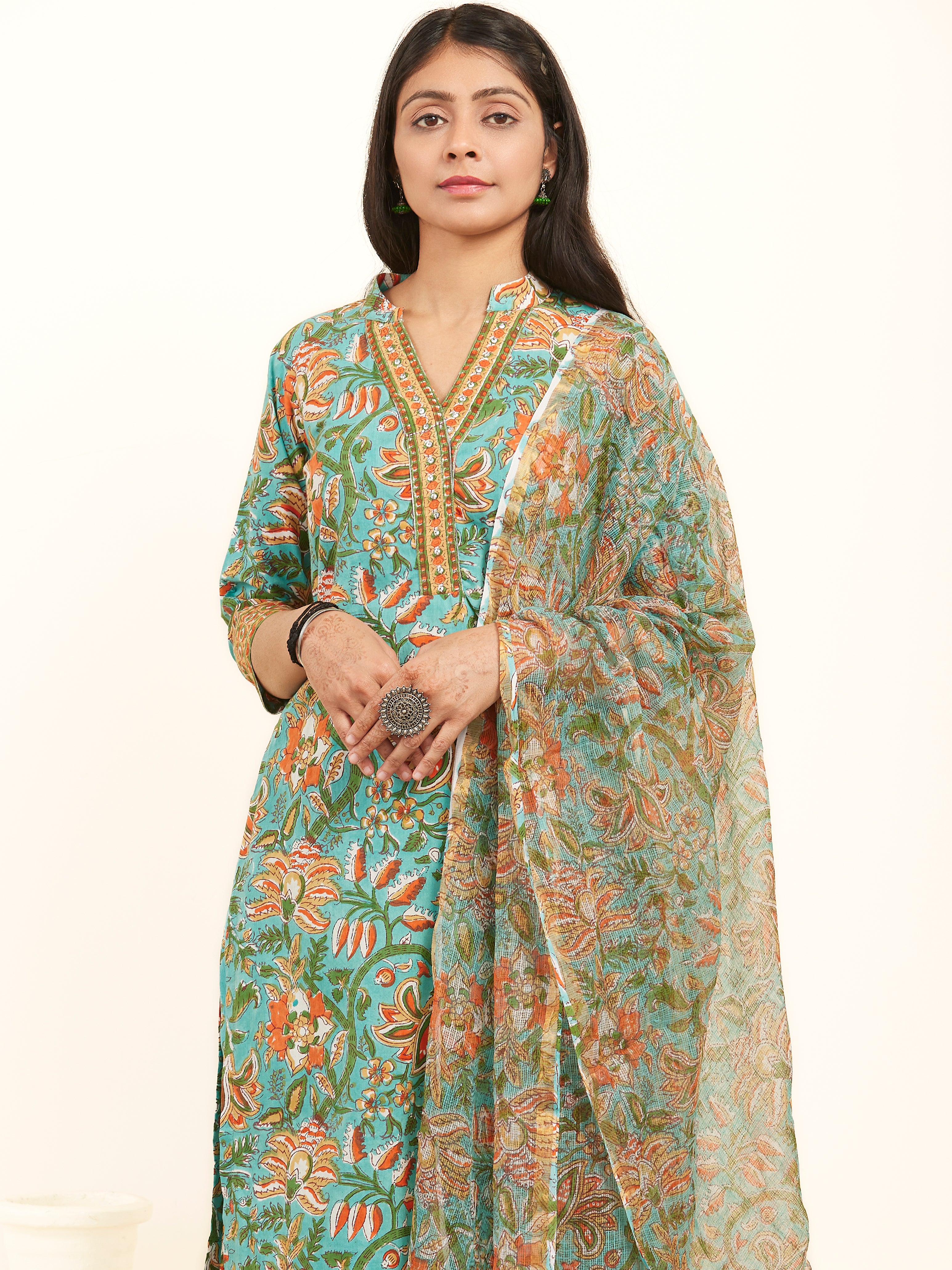Product: Contains Sanganeri Hand Block Printed Cotton Kurta. Matching Pants/Bottoms and Dupatta are also available separately under BUY THE LOOK section.