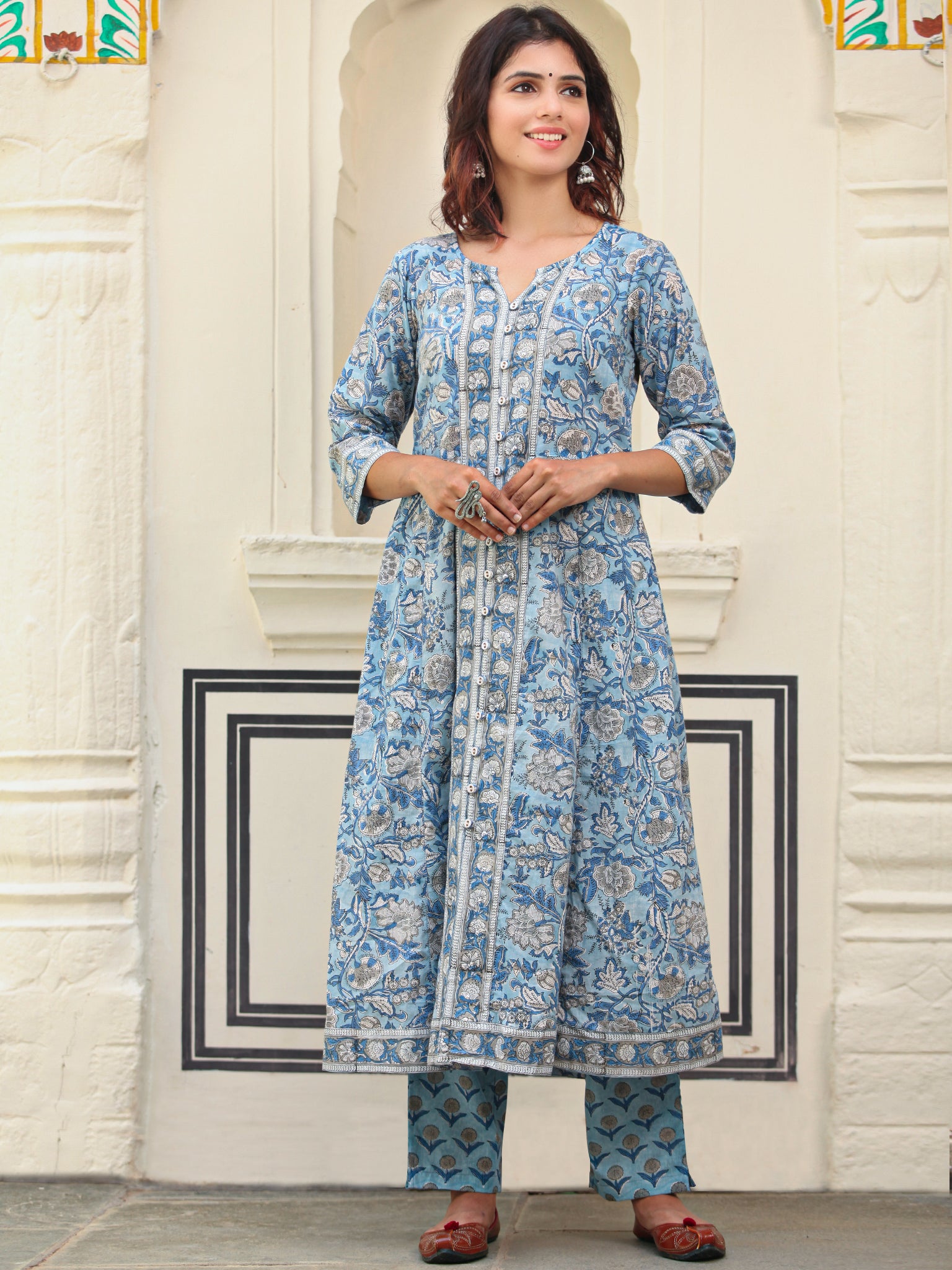 Product: Contains Hand Block Printed Cotton Kurta. Matching Pants/Bottoms and Dupatta are also available separately under BUY THE LOOK section.