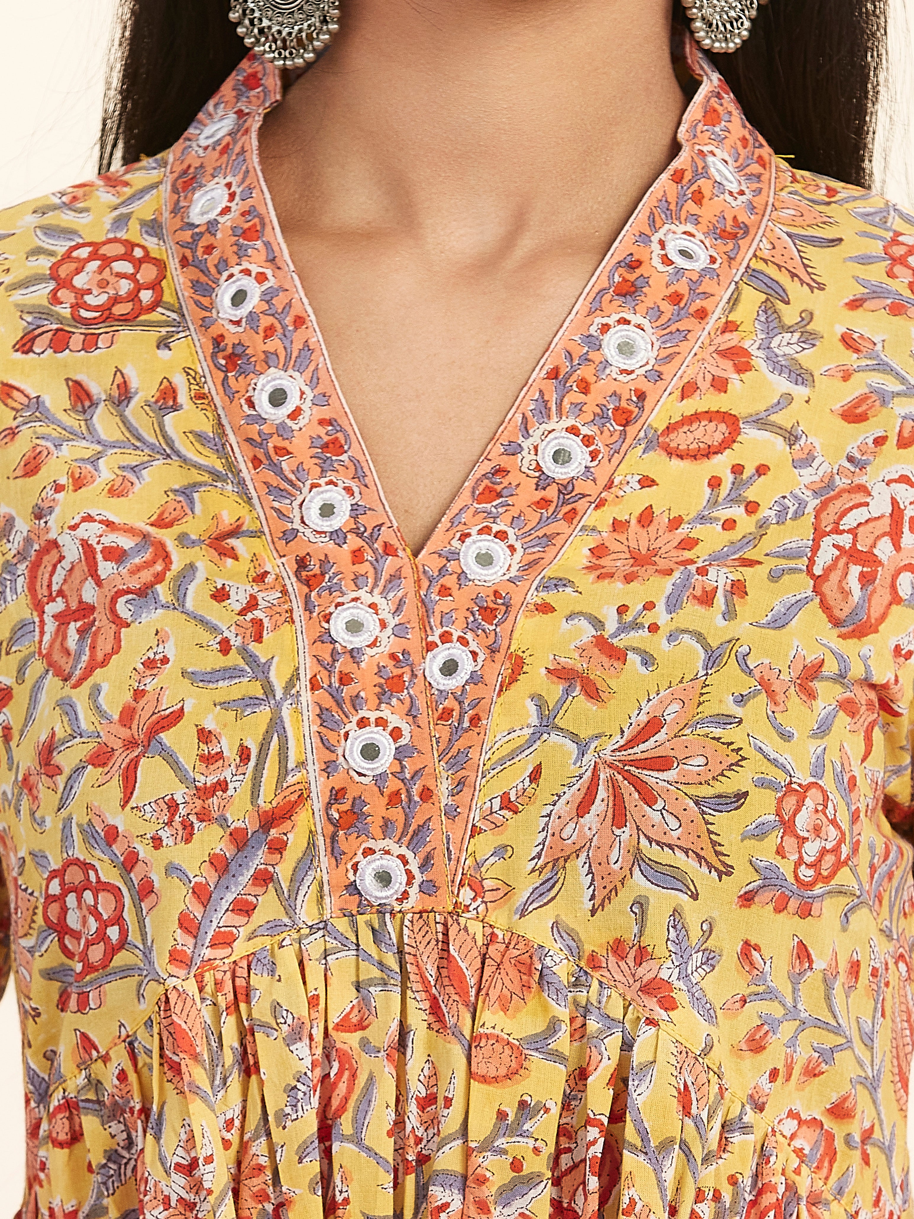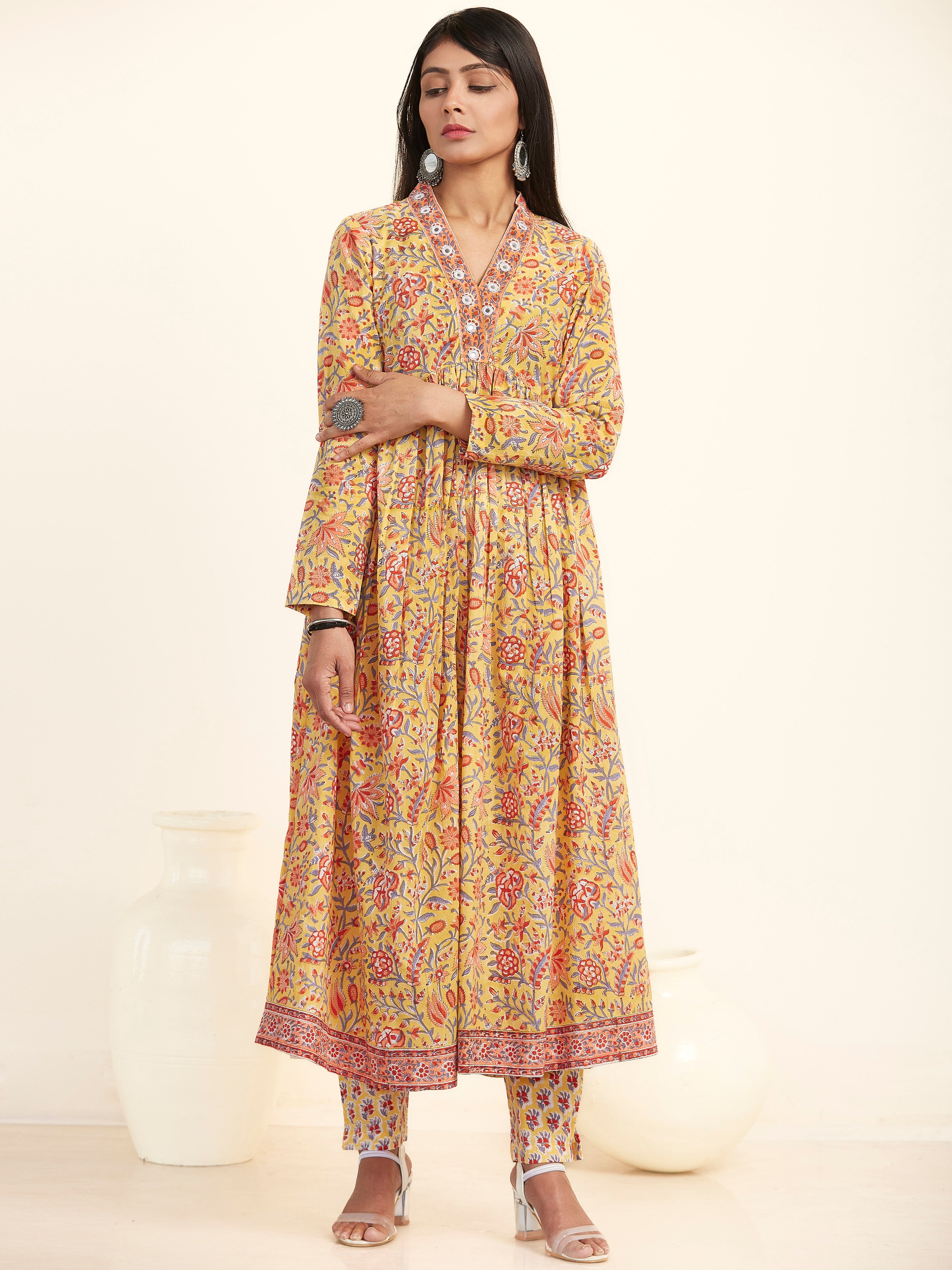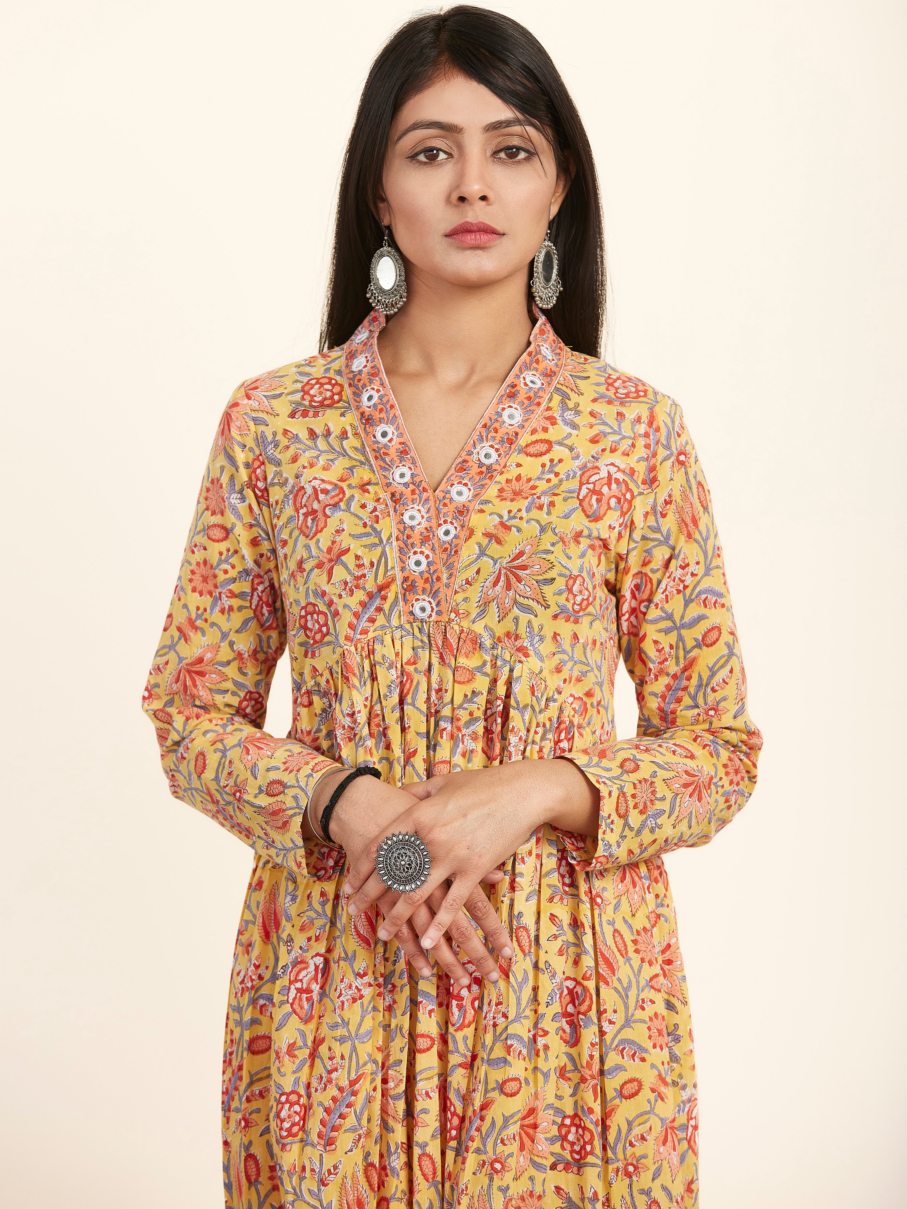 Product: Contains Hand Block Printed Cotton Kurta. Matching Pants/Bottoms and Dupatta are also available separately under BUY THE LOOK section.