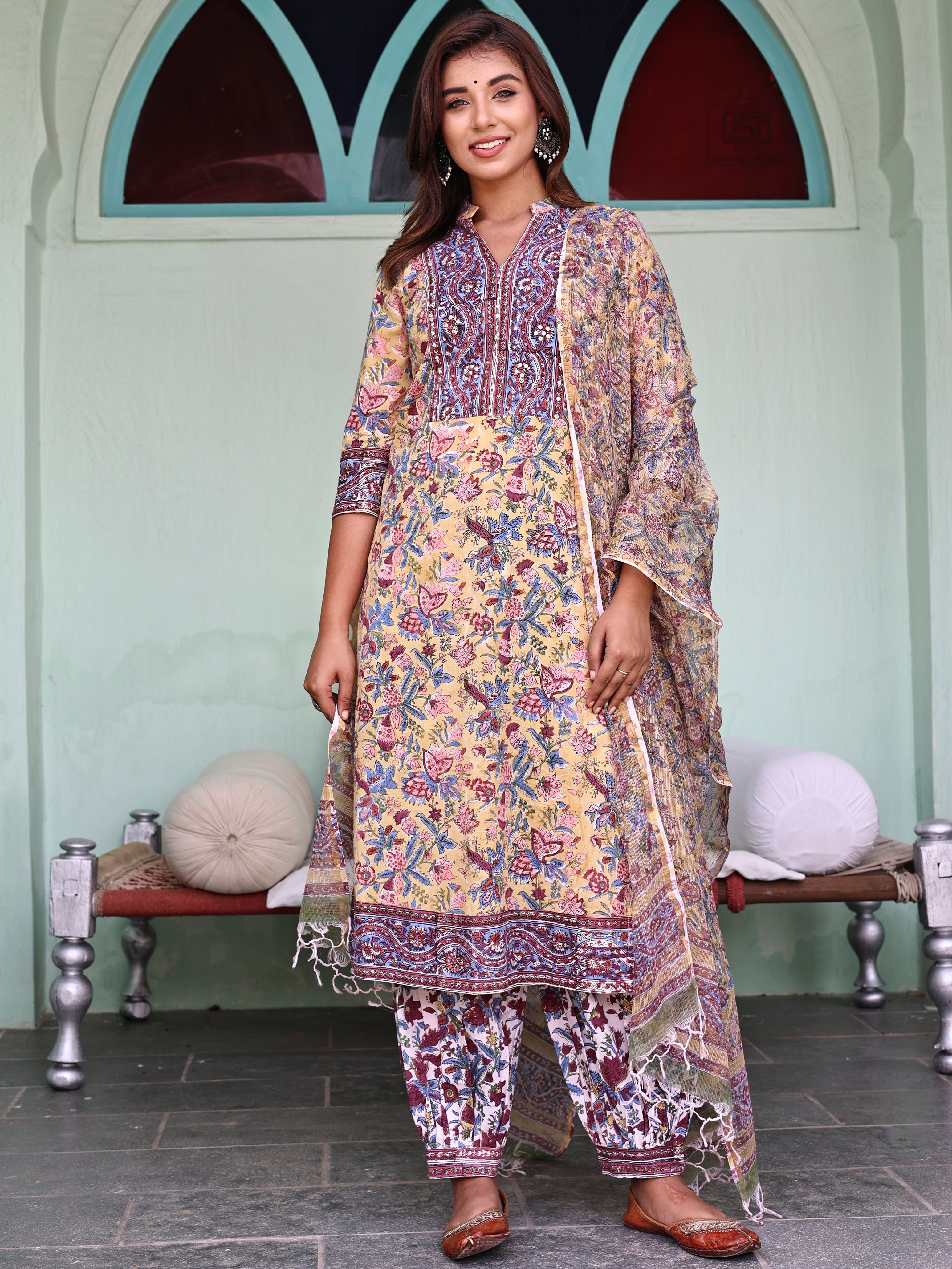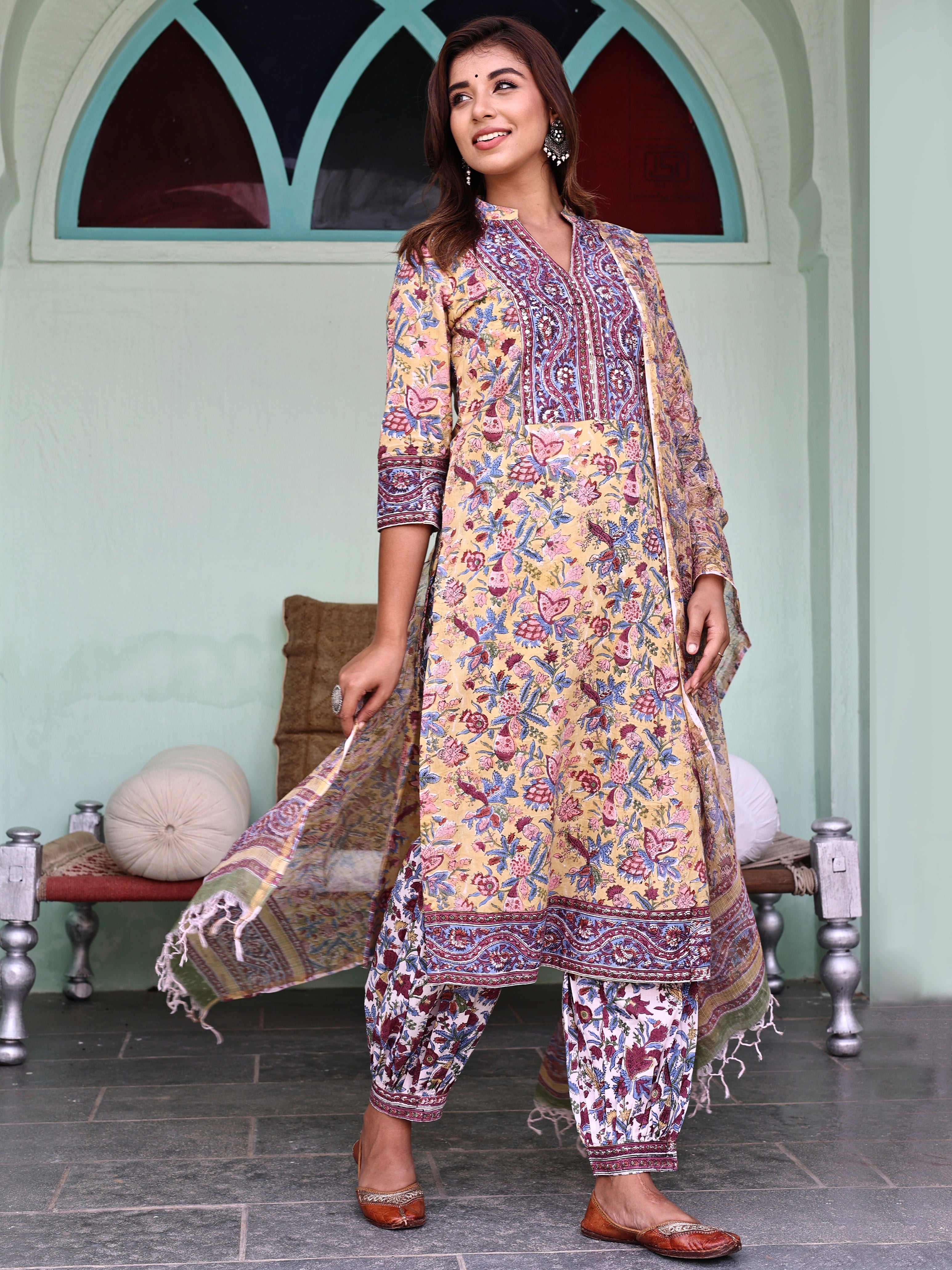 Fabric : Hand Block Printed. Kurta - Cotton. Pants - Cotton, Dupatta - Kota Doria