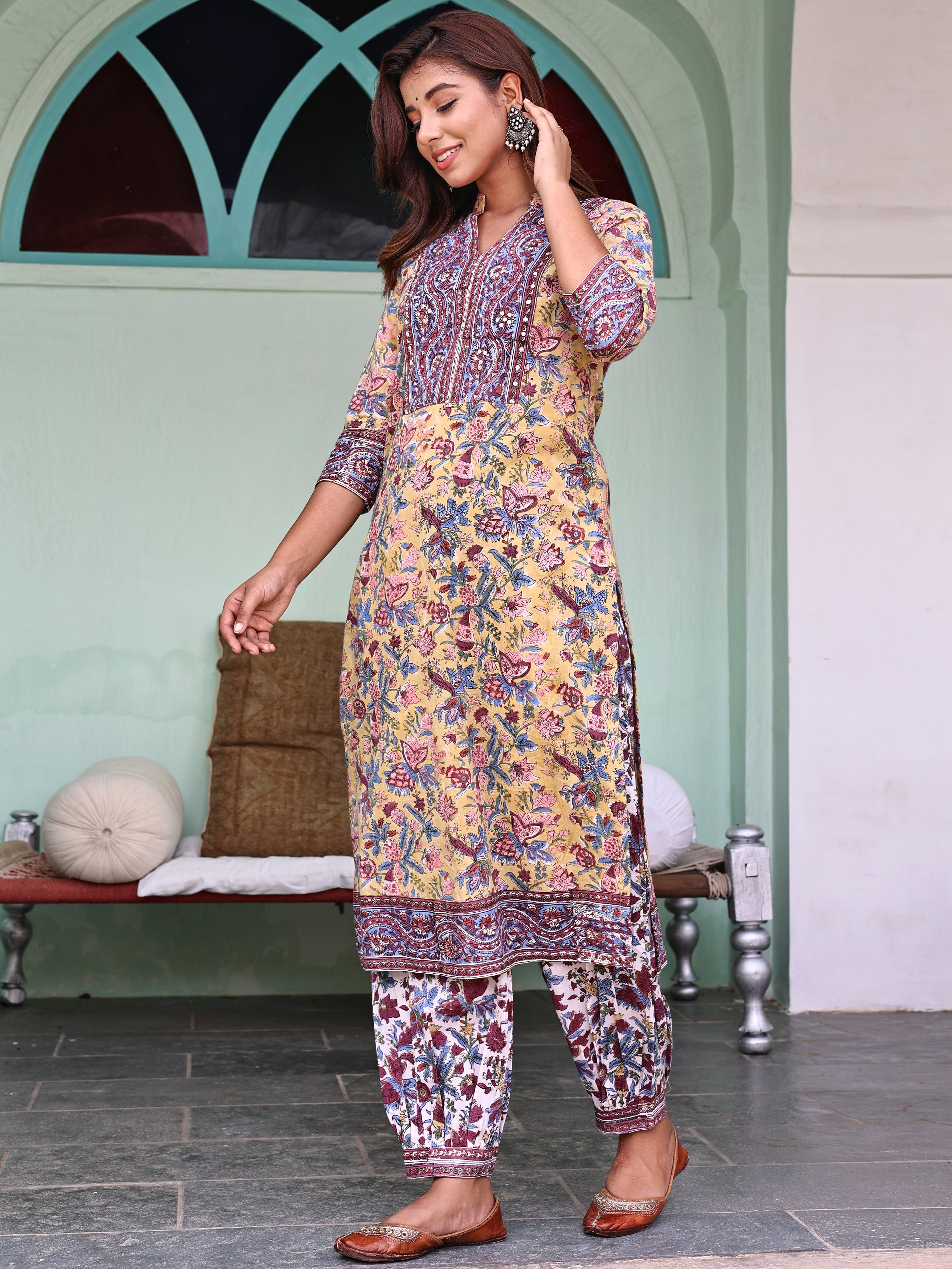 Product: This set contains Handcrafted Sanganeri Premium Cotton Kurta, 100% Cotton Pants and Kota Doria Dupatta.