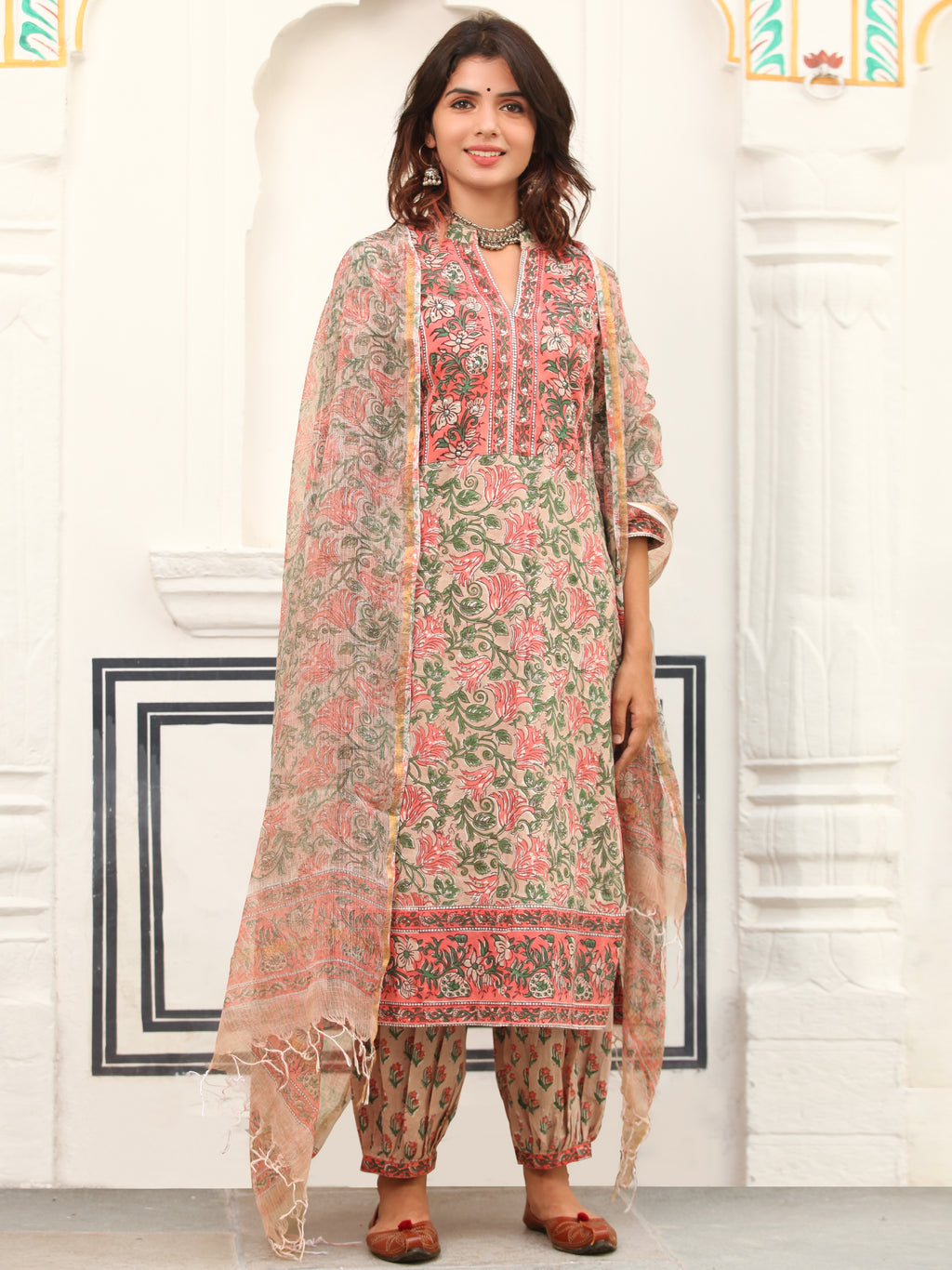 Jashn Vrinda Set Of Kurta Salwar Pants Kota Dupatta