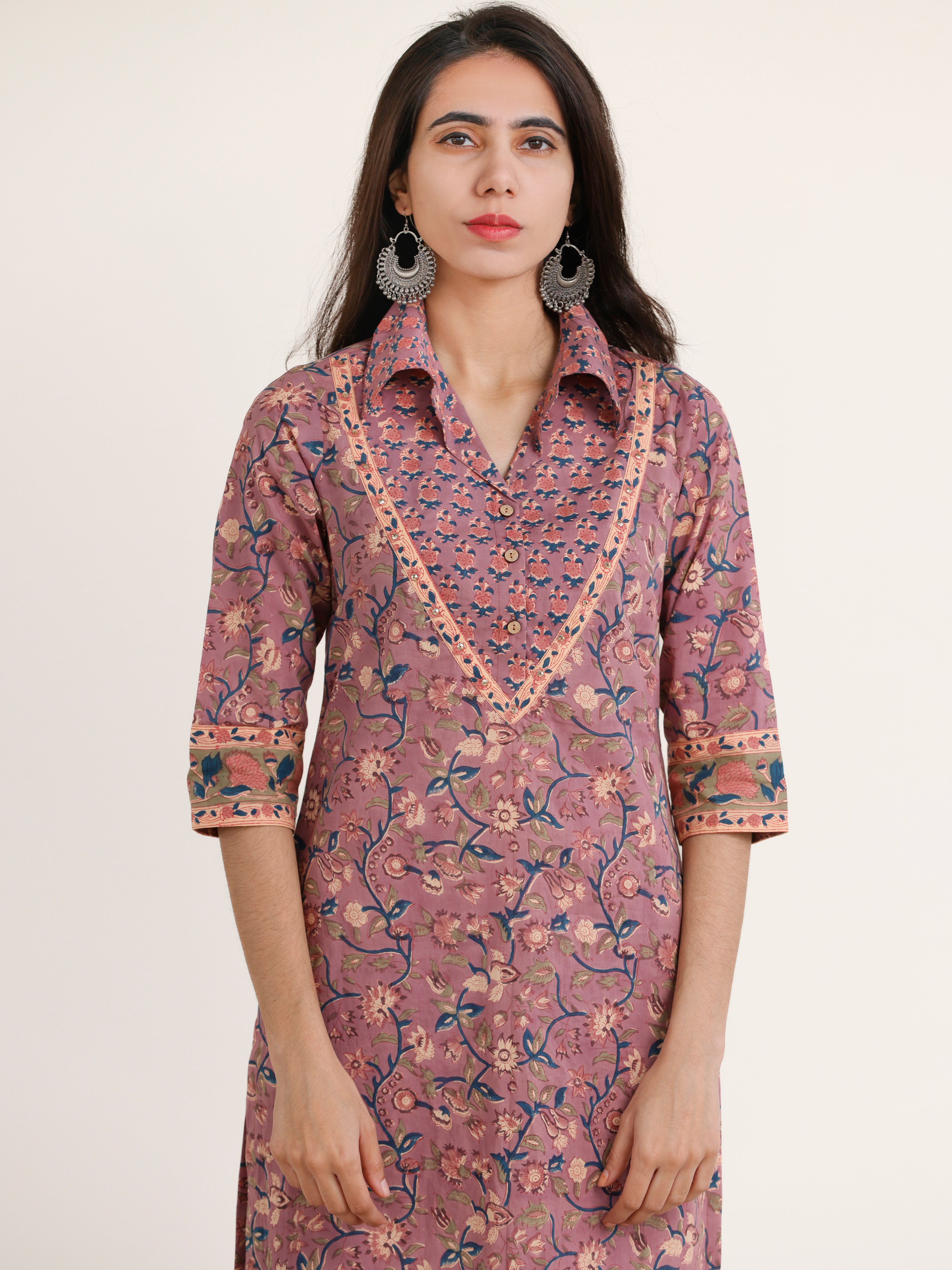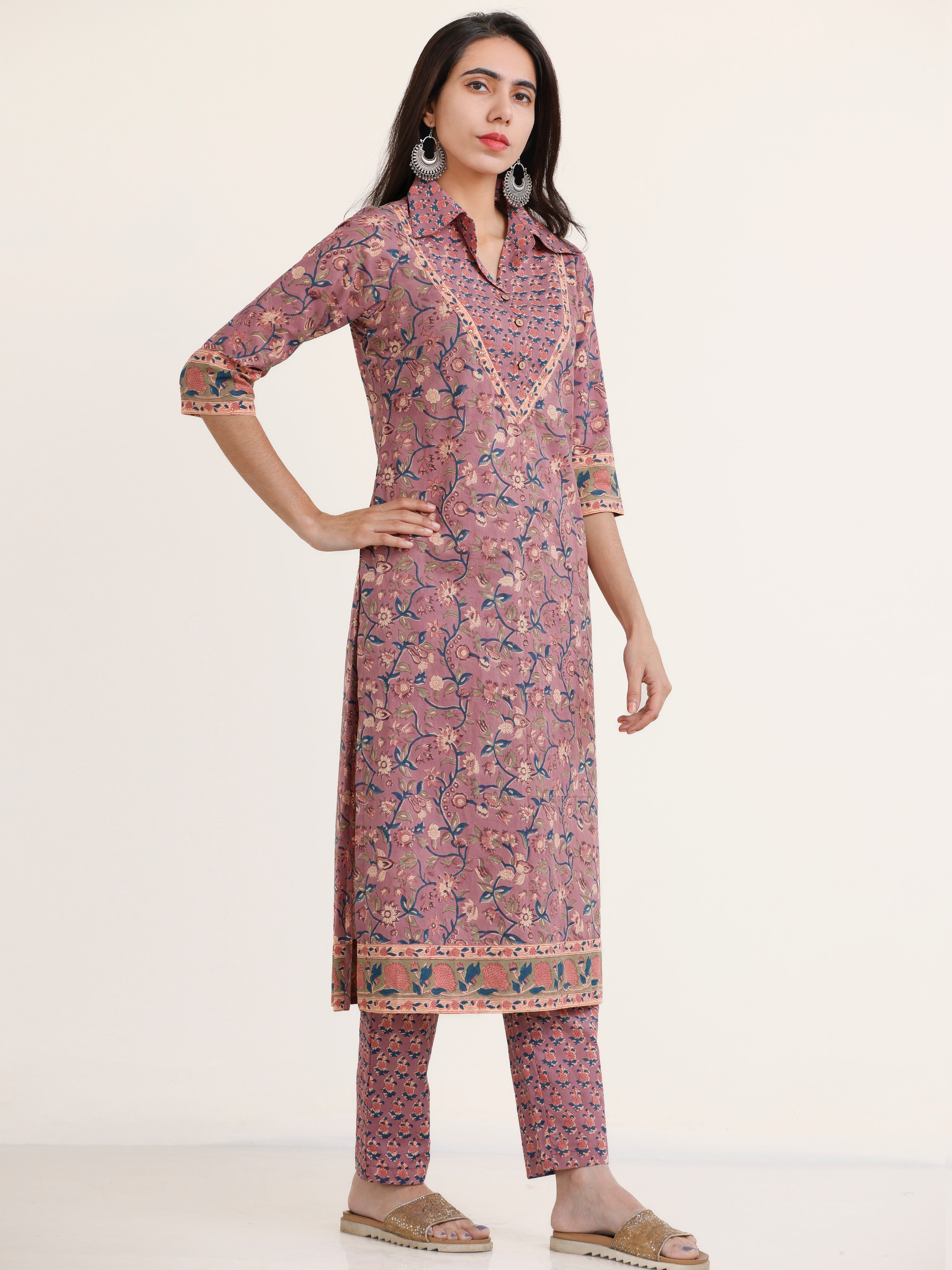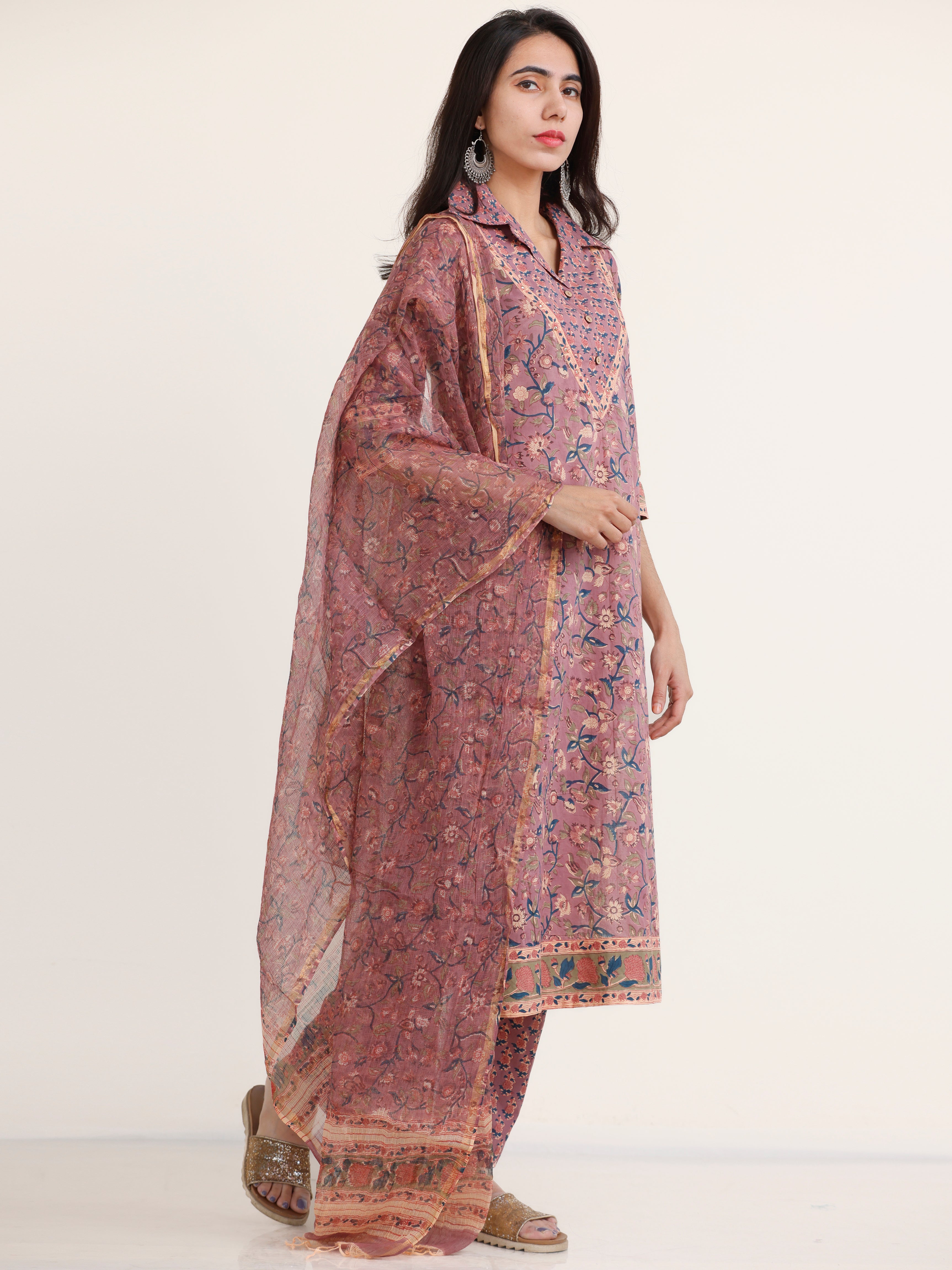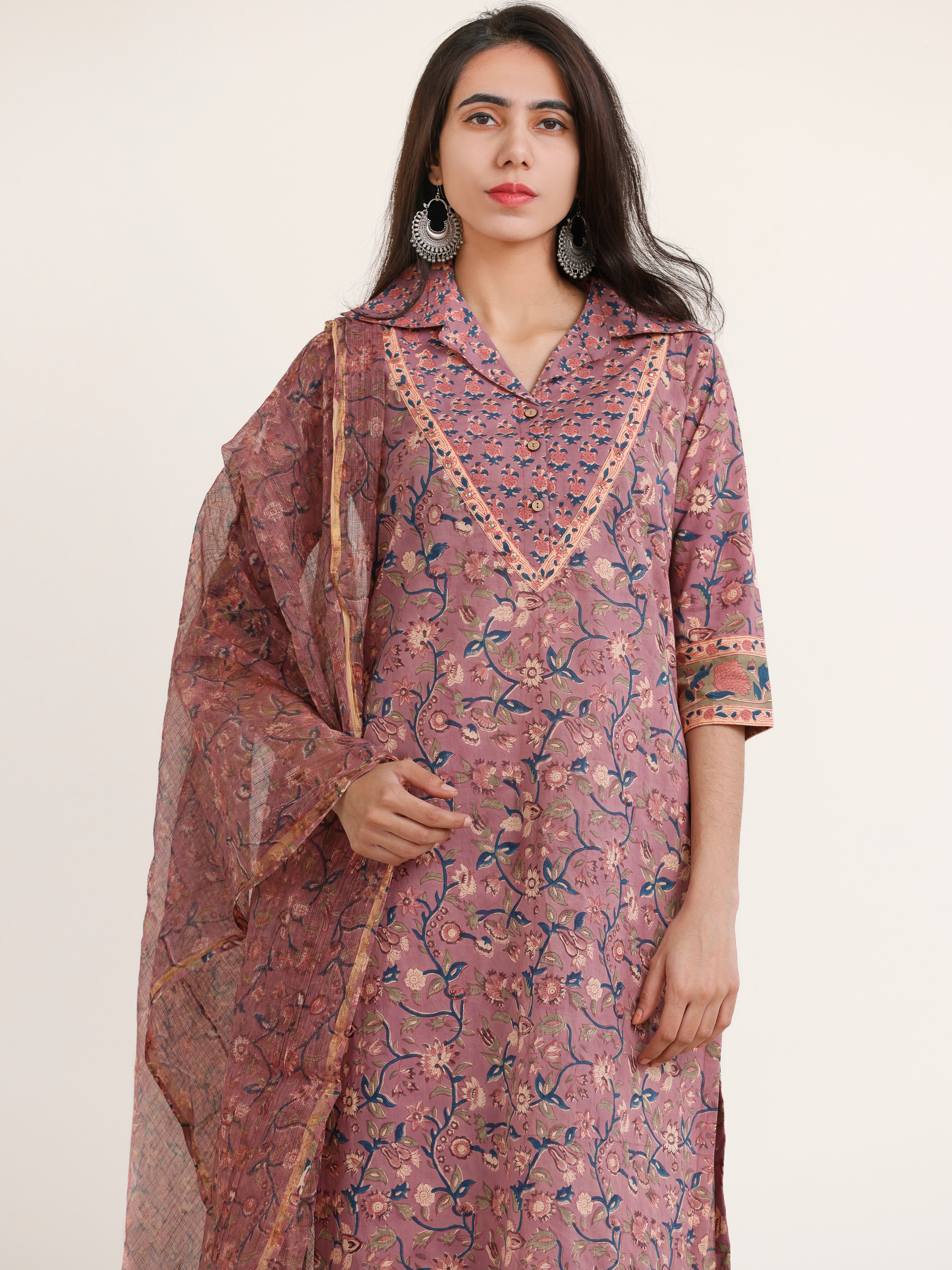 Product: This set contains Handcrafted Sanganeri Premium Cotton Kurta, 100% Cotton Pants and Kota Doria Dupatta.