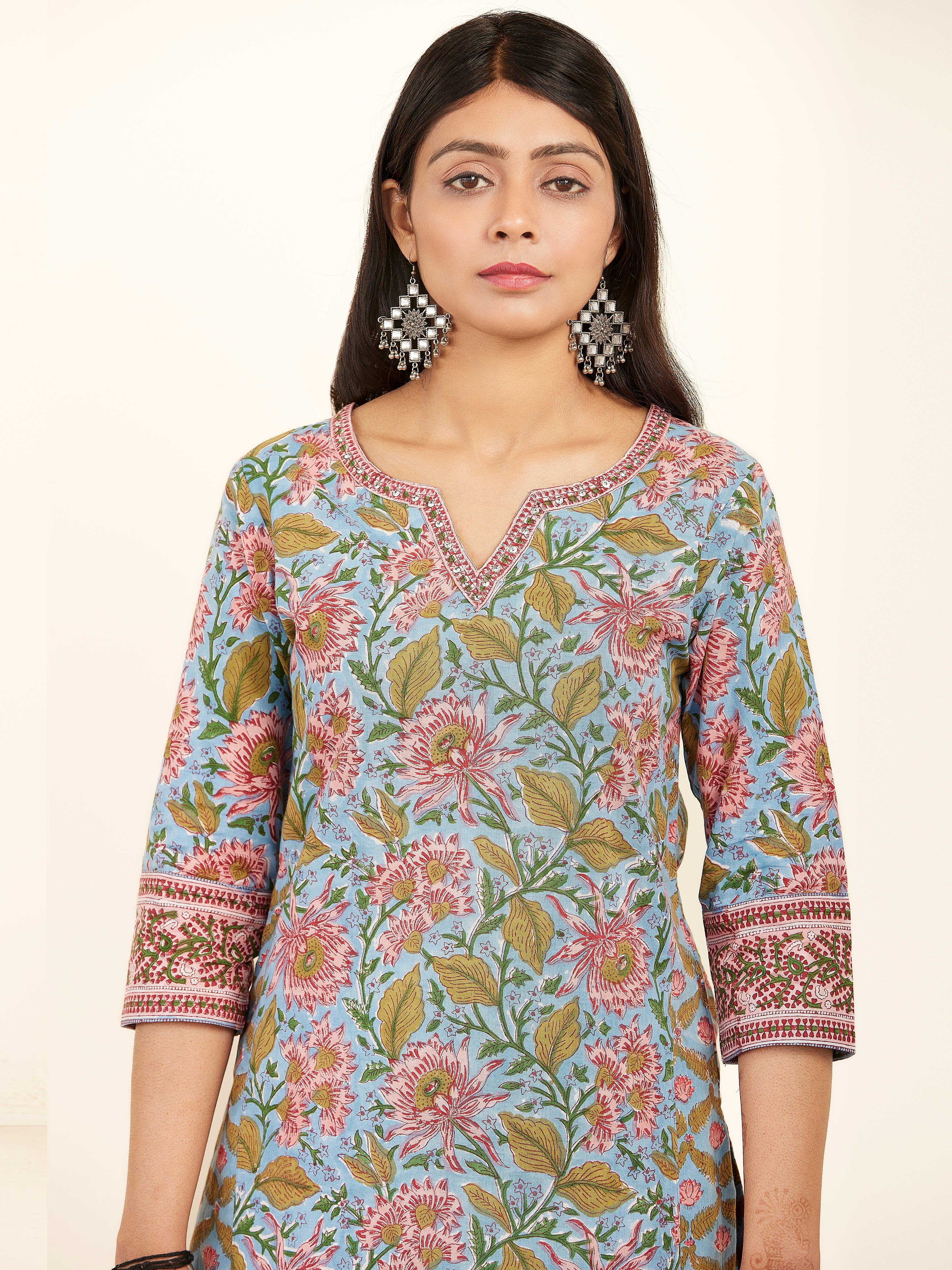 Product: Contains Hand Block Printed Cotton Kurta. Matching Pants/Bottoms and Dupatta are also available separately under BUY THE LOOK section.