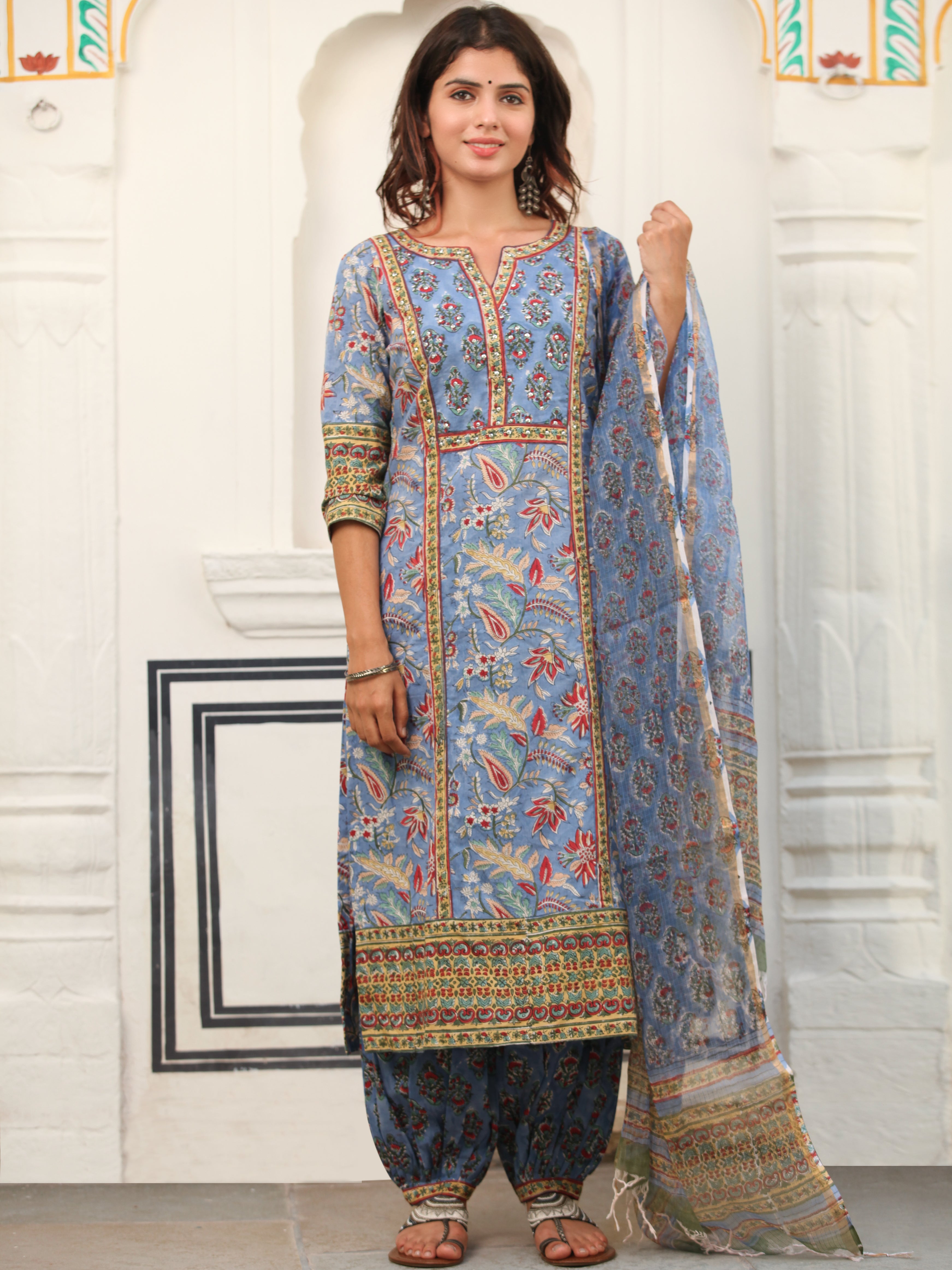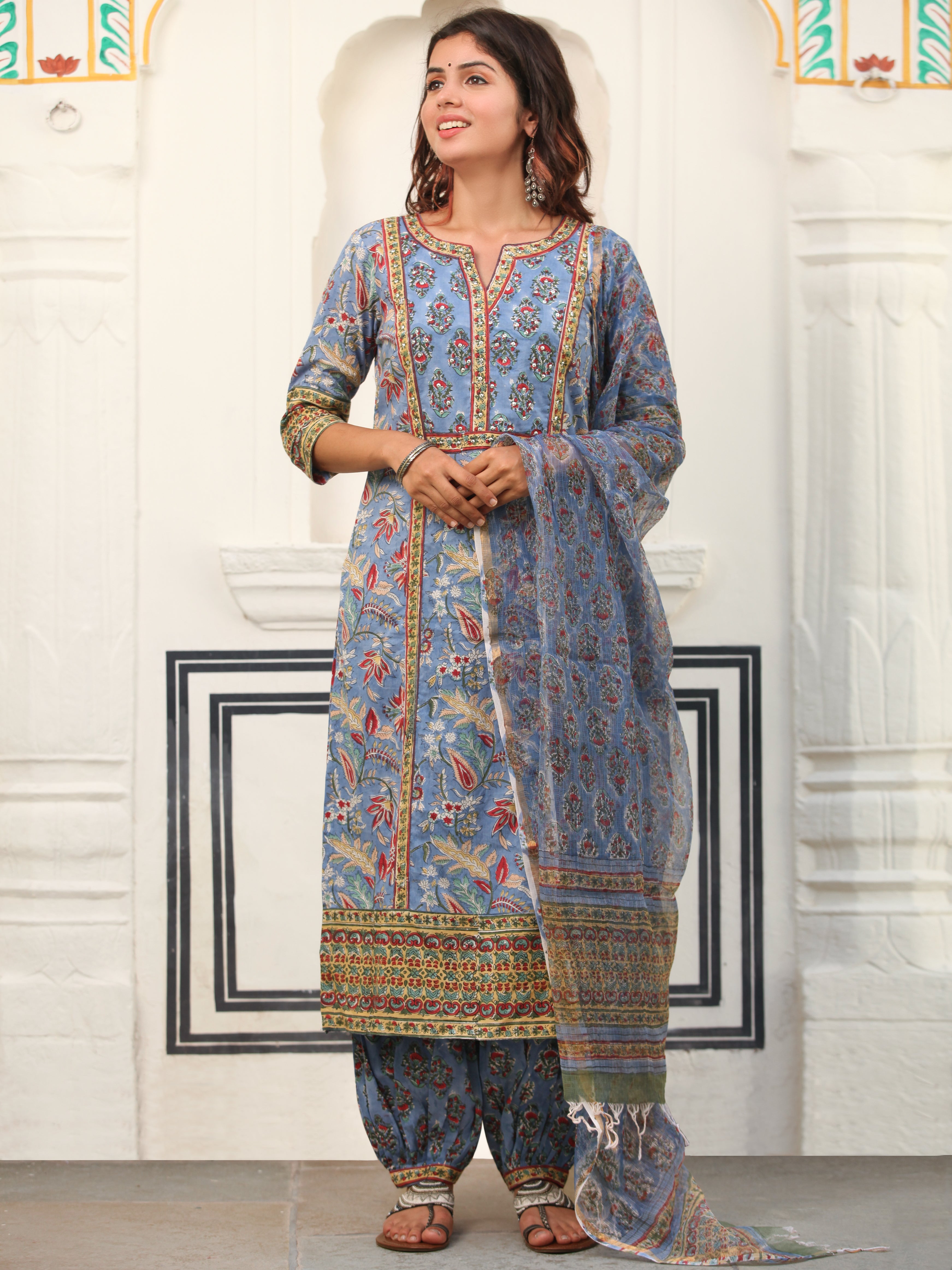 Fabric : Hand Block Printed. Kurta - Cotton. Pants - Cotton, Dupatta - Cotton