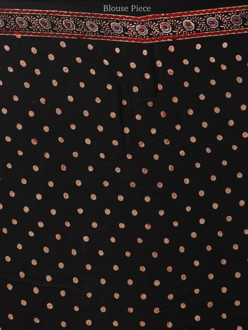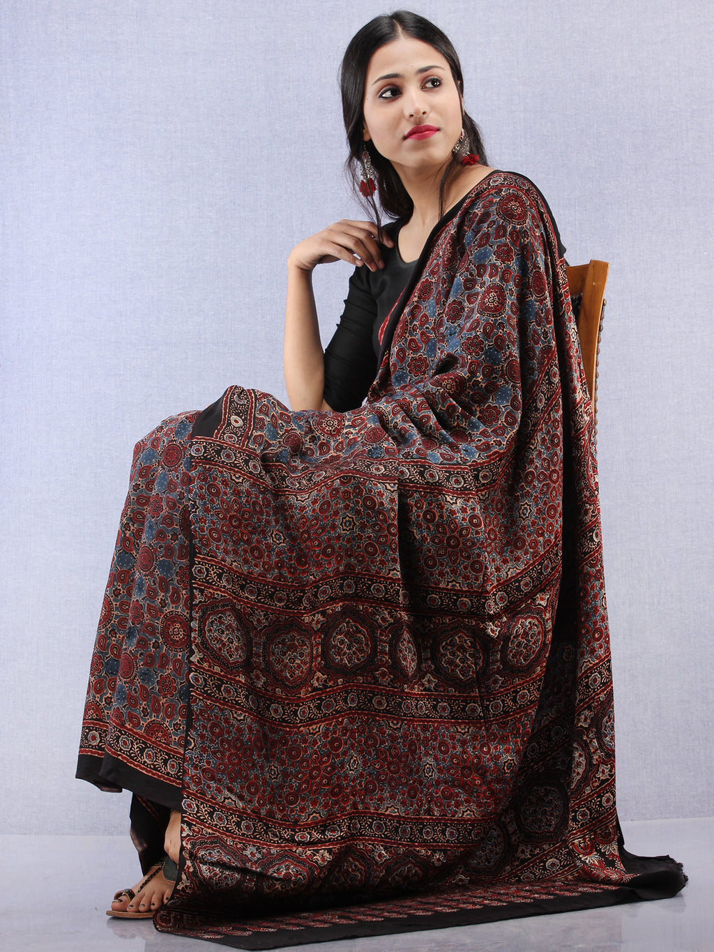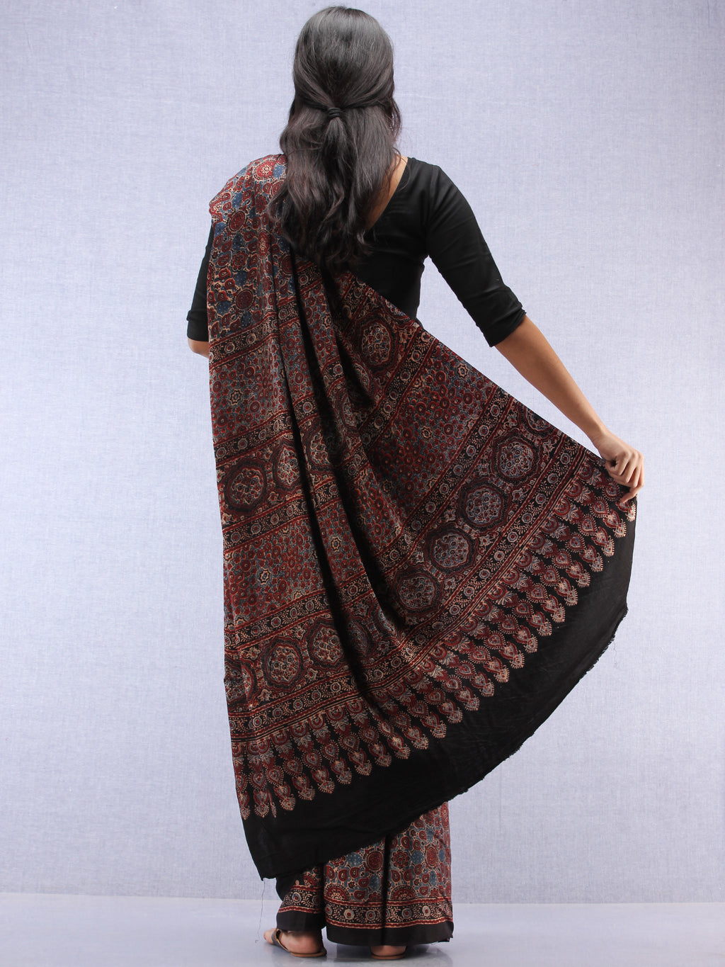 Maroon Beige Black Indigo Ajrakh Hand Block Printed Modal Silk Saree - S031704449