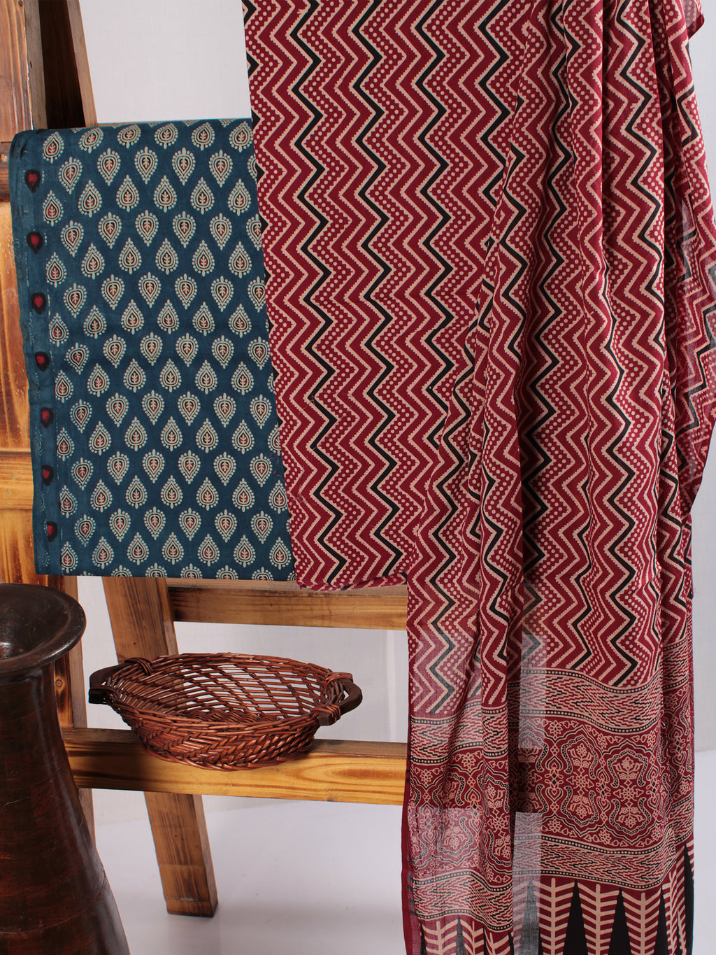 Maroon Indigo Black Ivory Hand Block Printed Suit Set (Set of 3) - SU01HB475