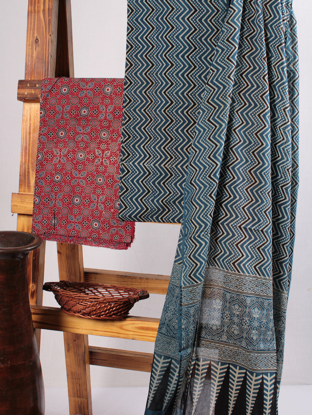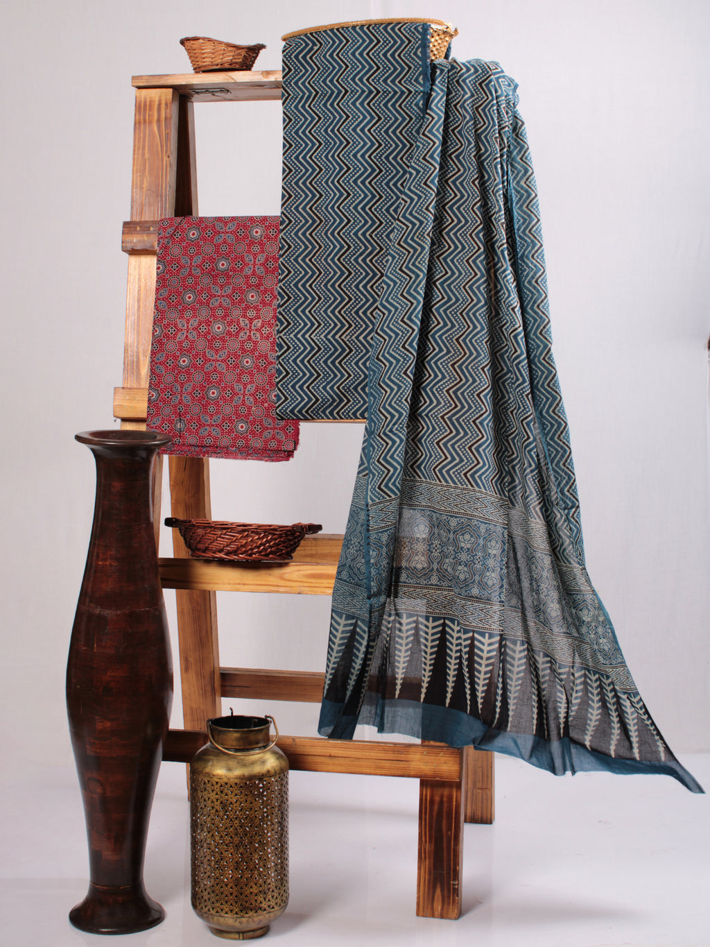 Maroon Indigo Black Ivory Hand Block Printed Suit Set (Set of 3) - SU01HB476