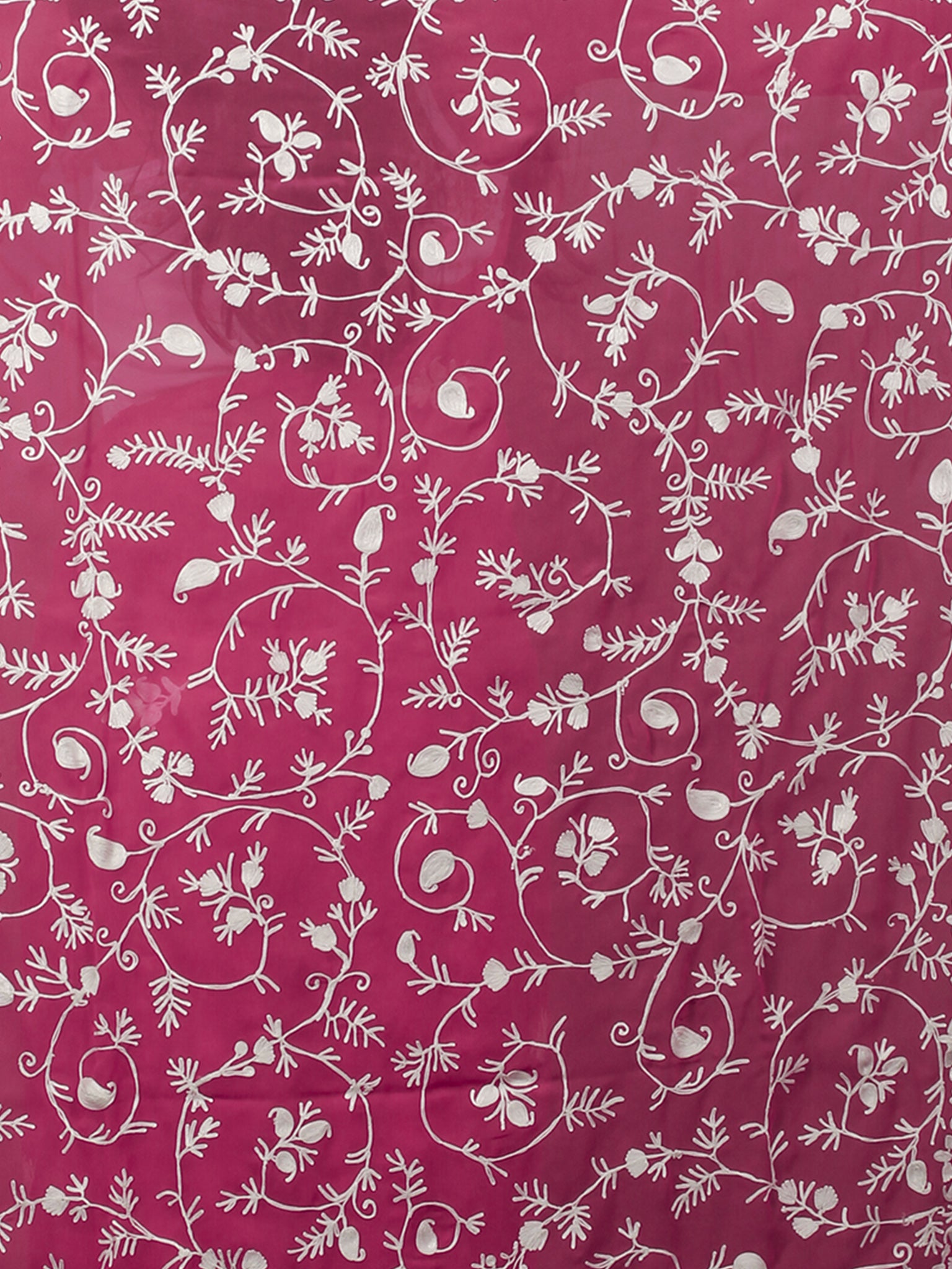 Pink White Aari Embroidered Chiffon Saree From Kashmir - S031702134