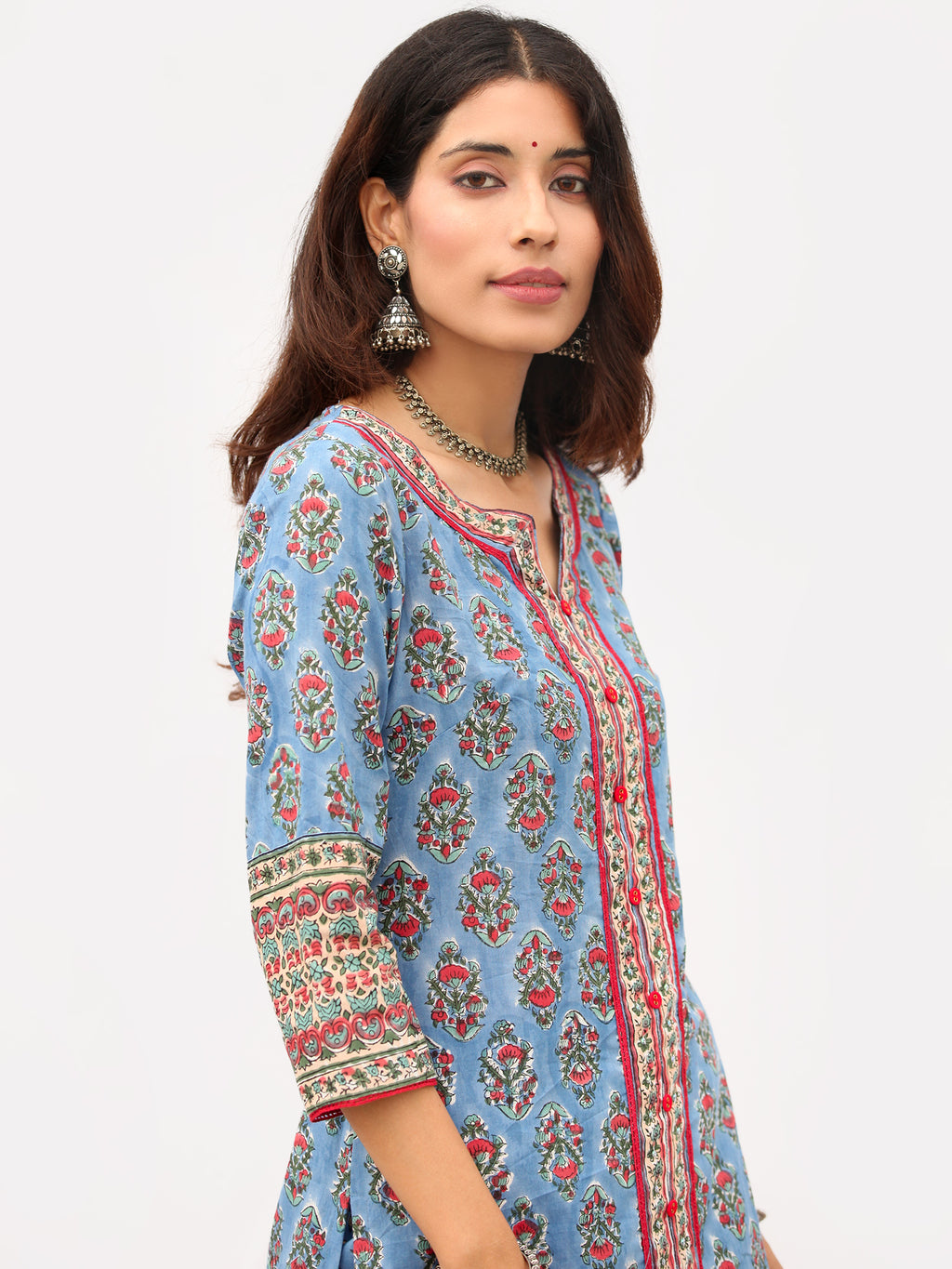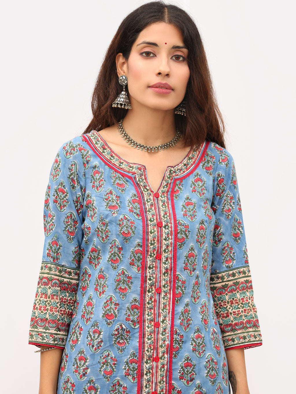Product: Contains Hand Block Printed Cotton Kurta. Matching Pants/Bottoms and Dupatta are also available separately under BUY THE LOOK section.