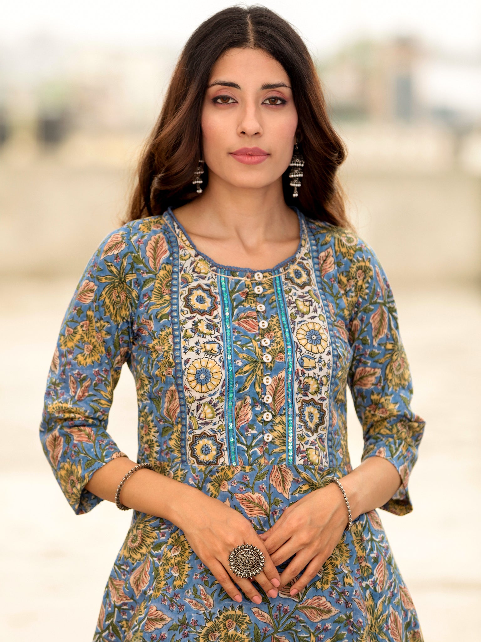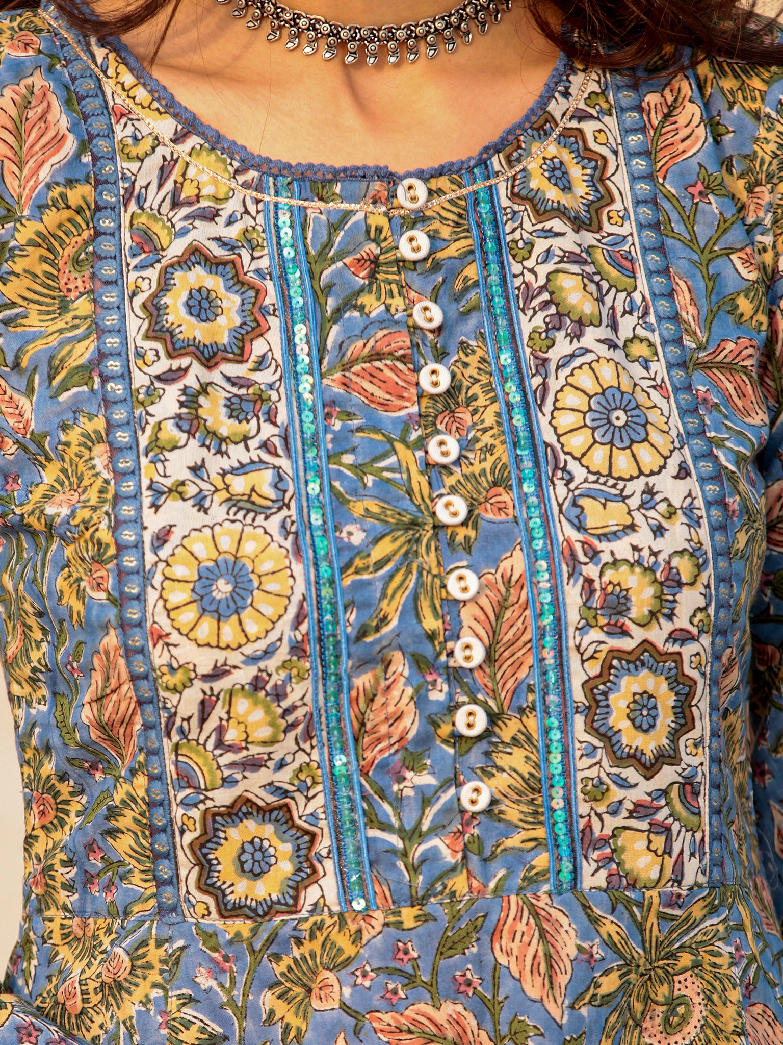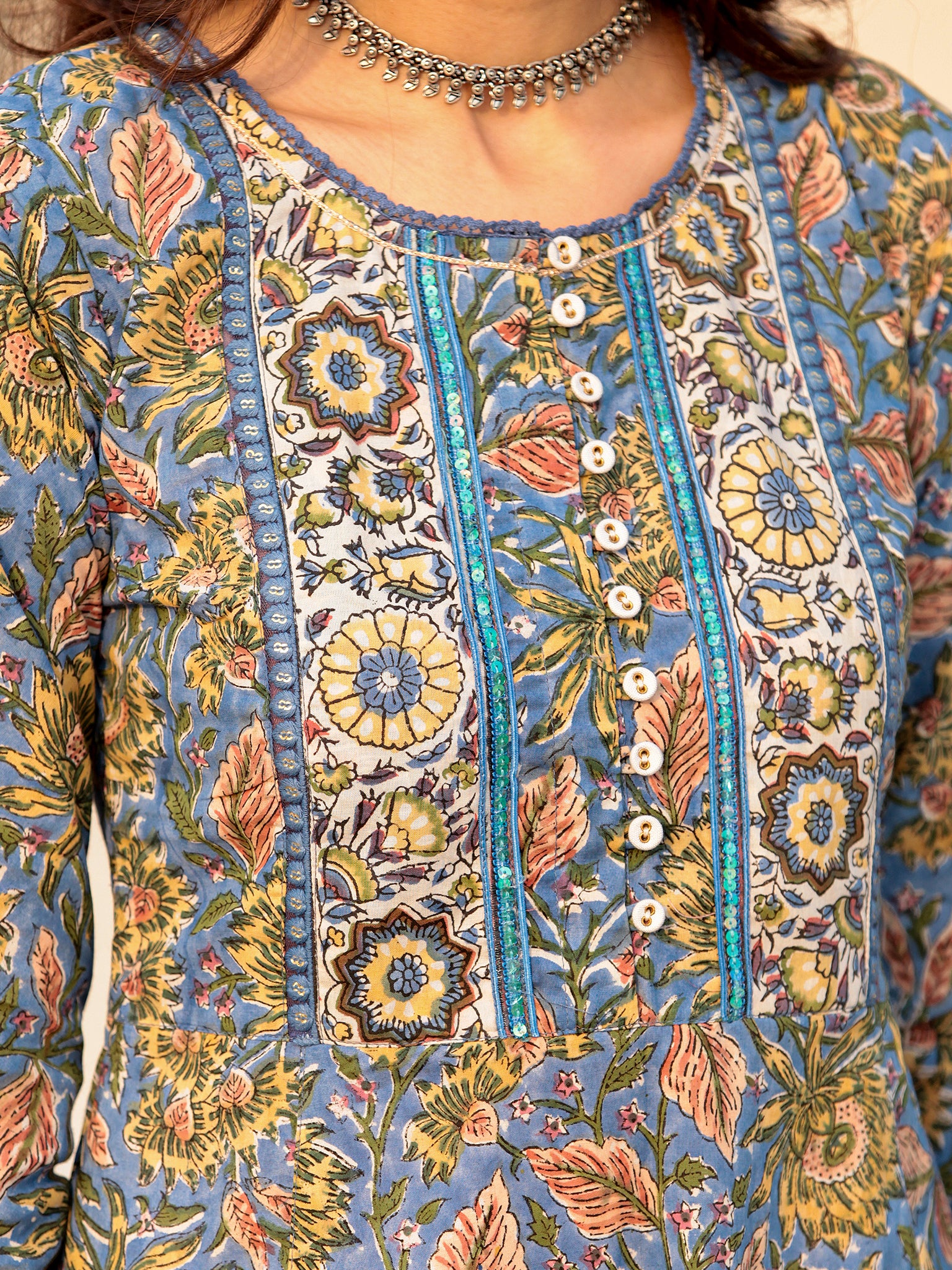 Product: Contains Hand Block Printed Cotton Kurta. Matching Pants/Bottoms and Dupatta are also available separately under BUY THE LOOK section.