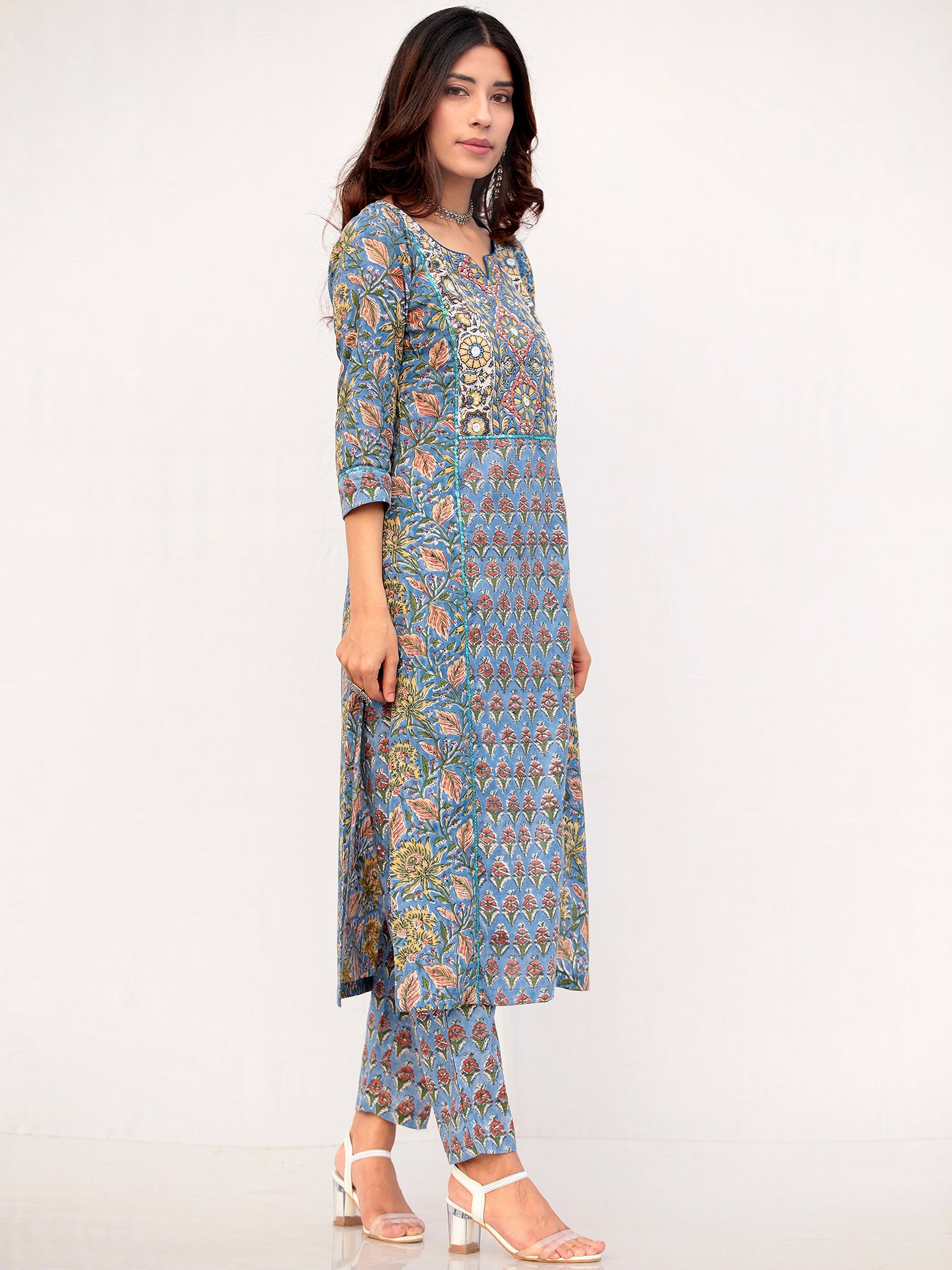 Product: Contains Hand Block Printed Cotton Kurta. Matching Pants/Bottoms and Dupatta are also available separately under BUY THE LOOK section.