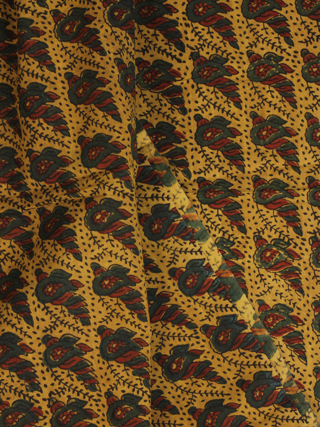 Mustard Bottle Green Maroon Ajrakh Hand Block Printed Cotton Fabric Per Meter - F003F2110