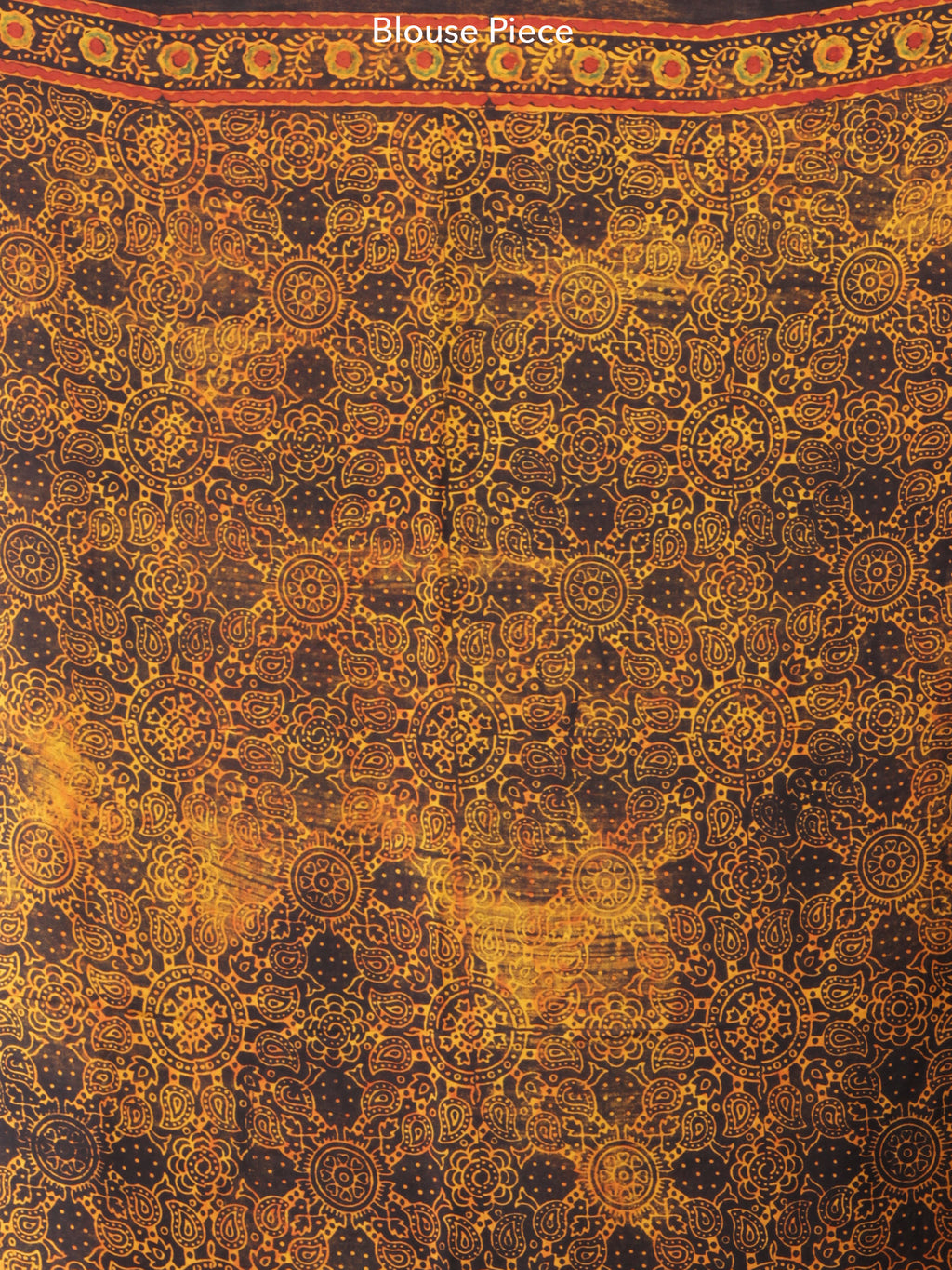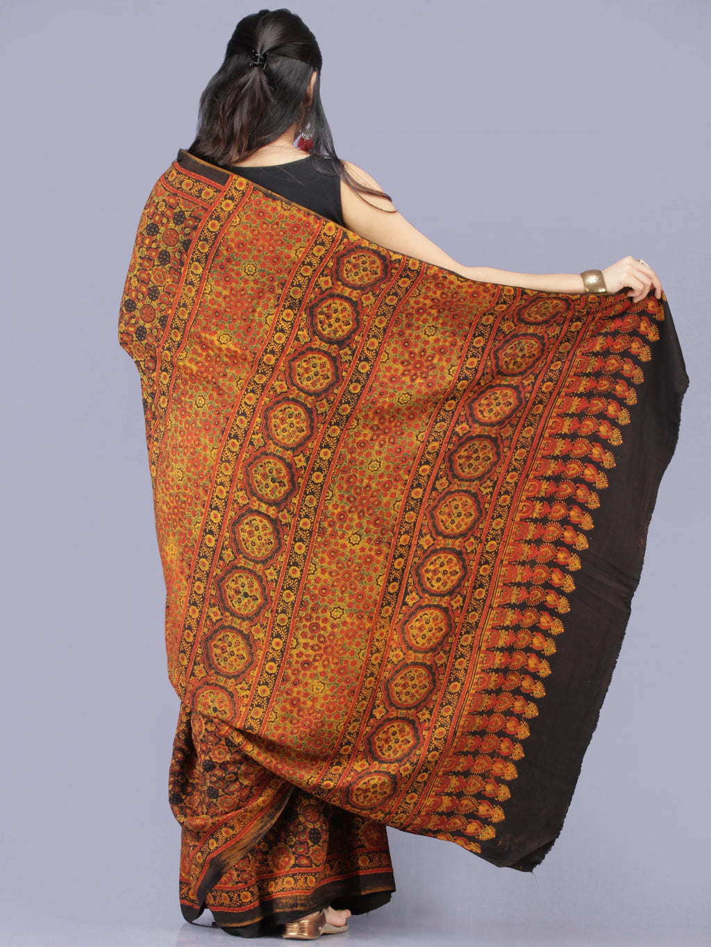 Mustard Rustic Black Ajrakh Hand Block Printed Modal Silk Saree - S031704195