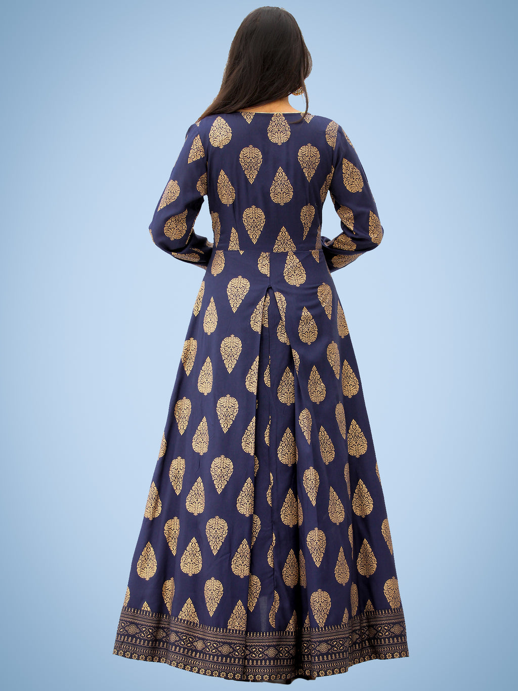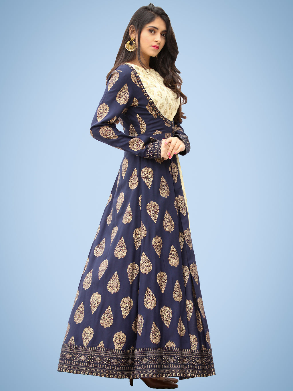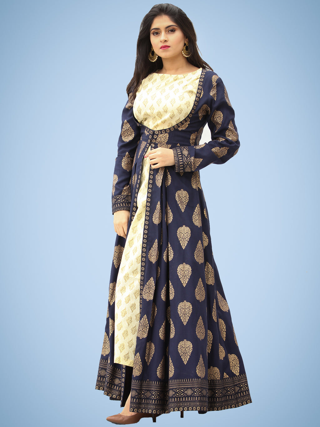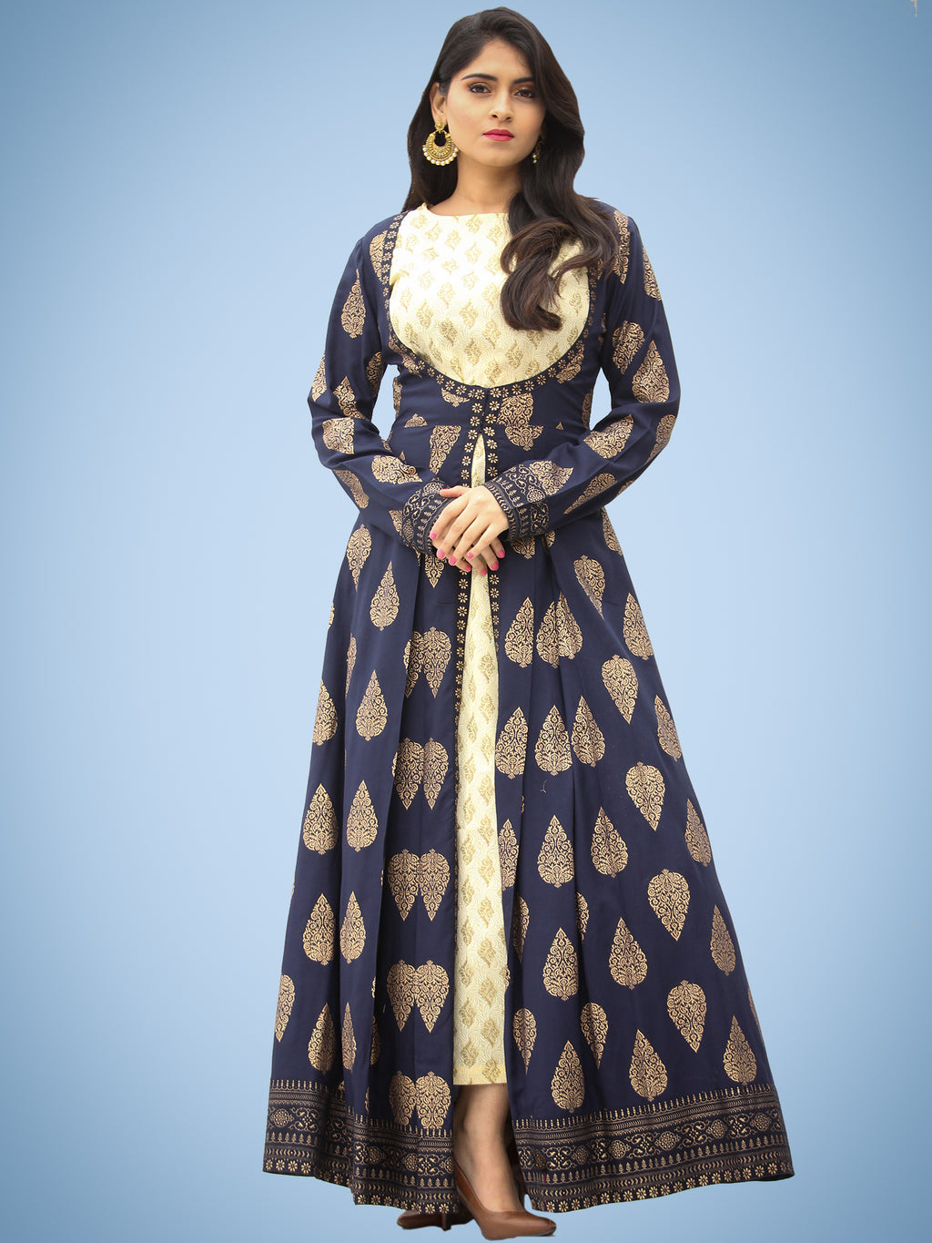 FABRIC/S: Indigo Printed - Rayon Cotton, Beige : Ivory