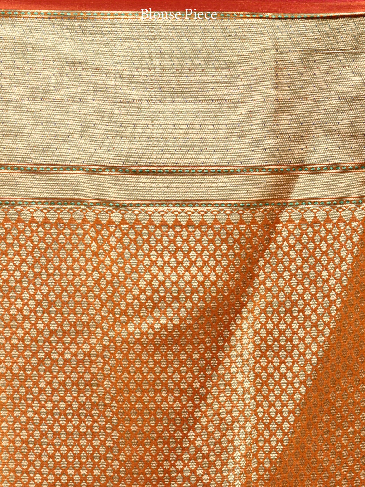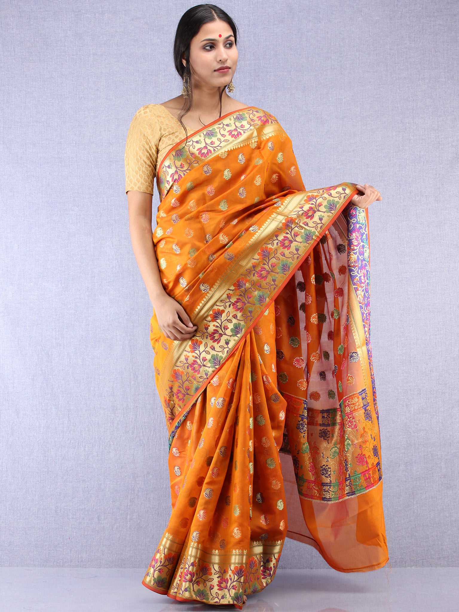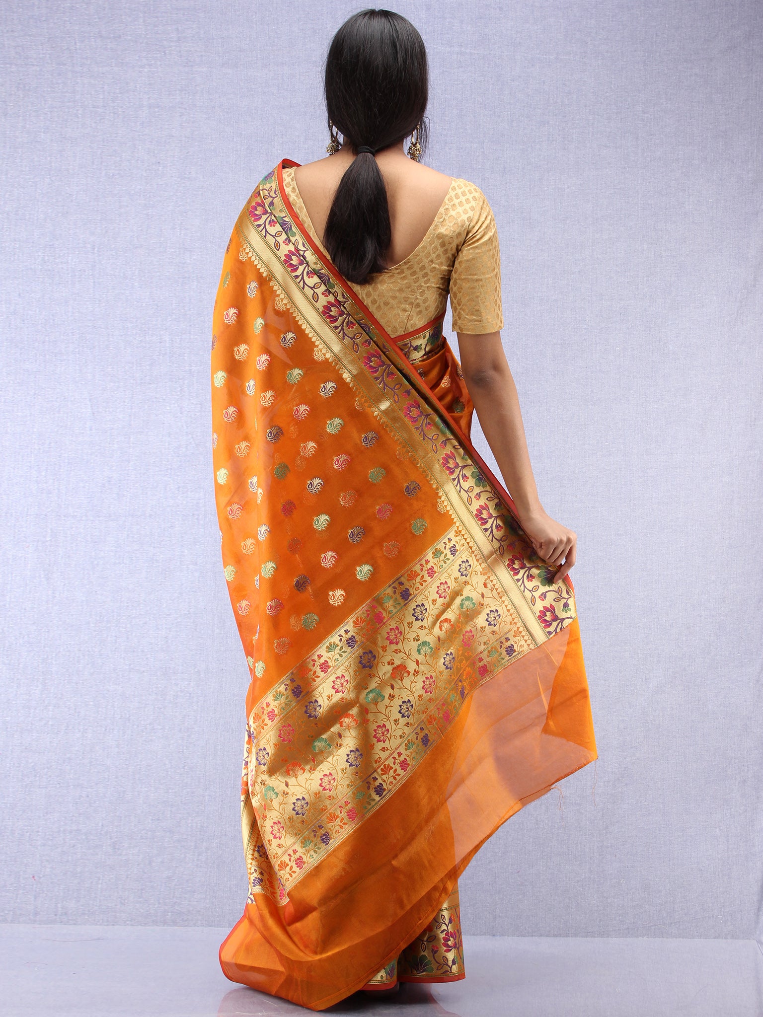 Banarasee Chanderi Saree With Meenakari Work - Orange & Gold - S031704363