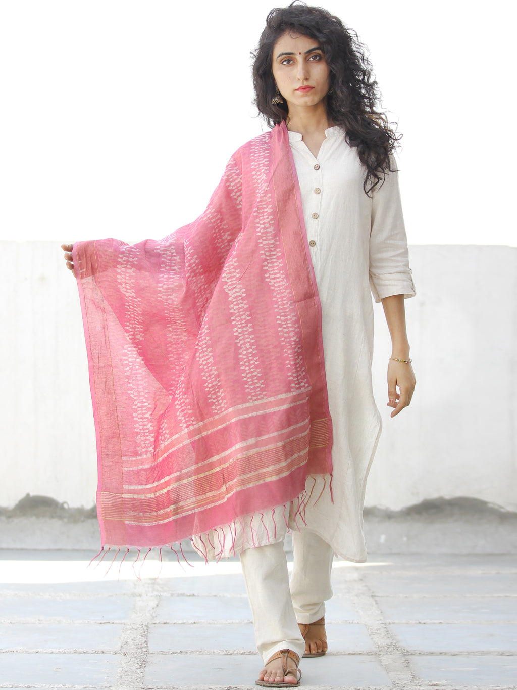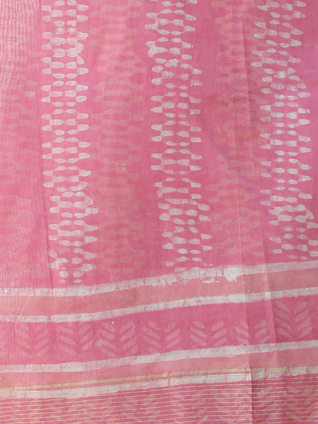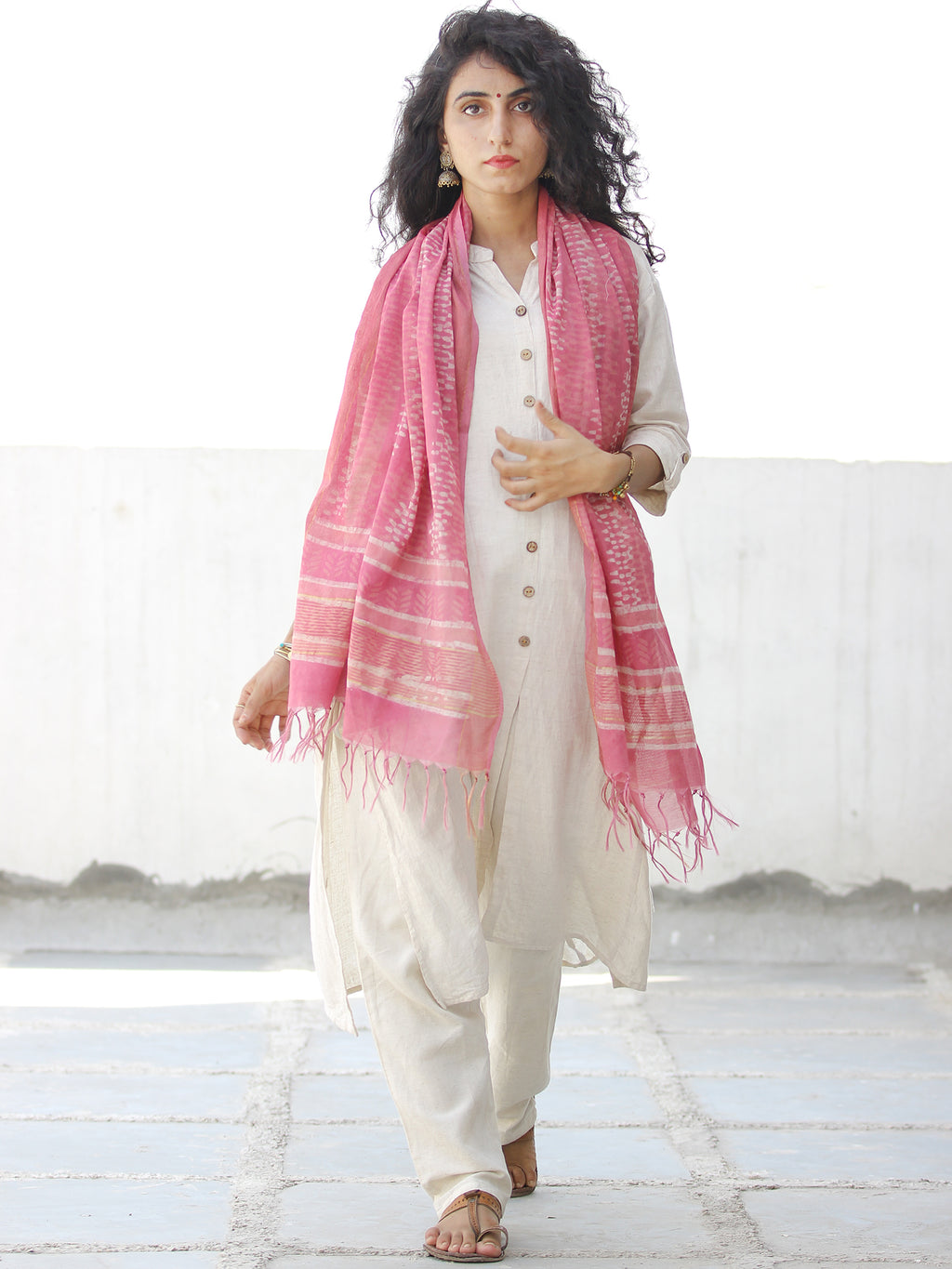 Pink Ivory  Chanderi Hand Block Printed Stole - D04170581