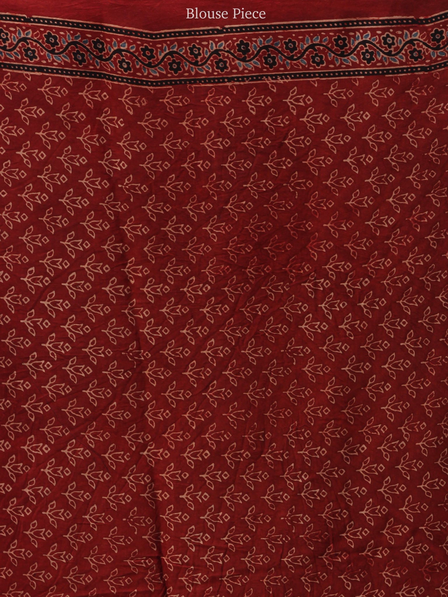 Red Beige Black Indigo Ajrakh Hand Block Printed Modal Silk Saree - S031704443