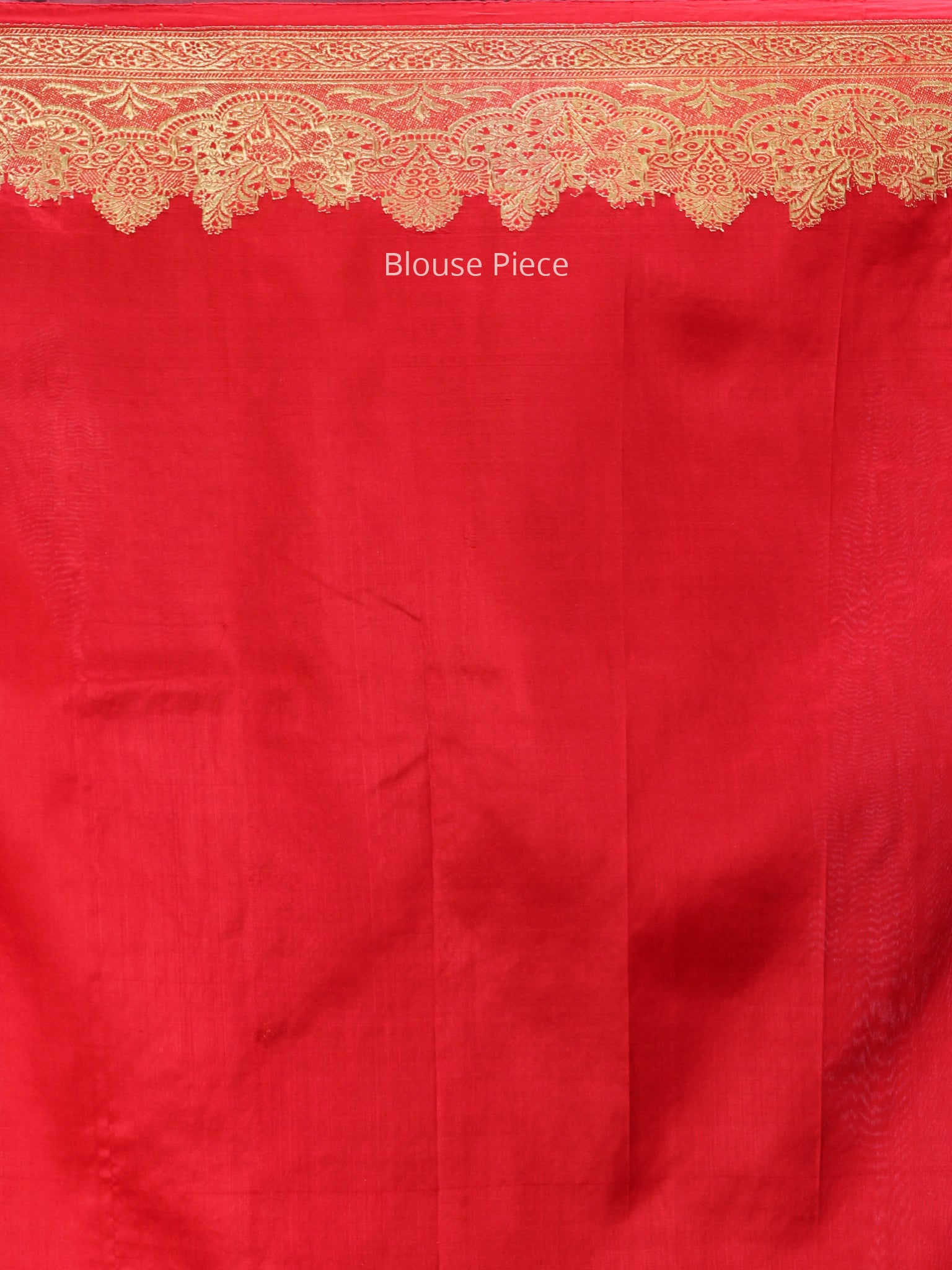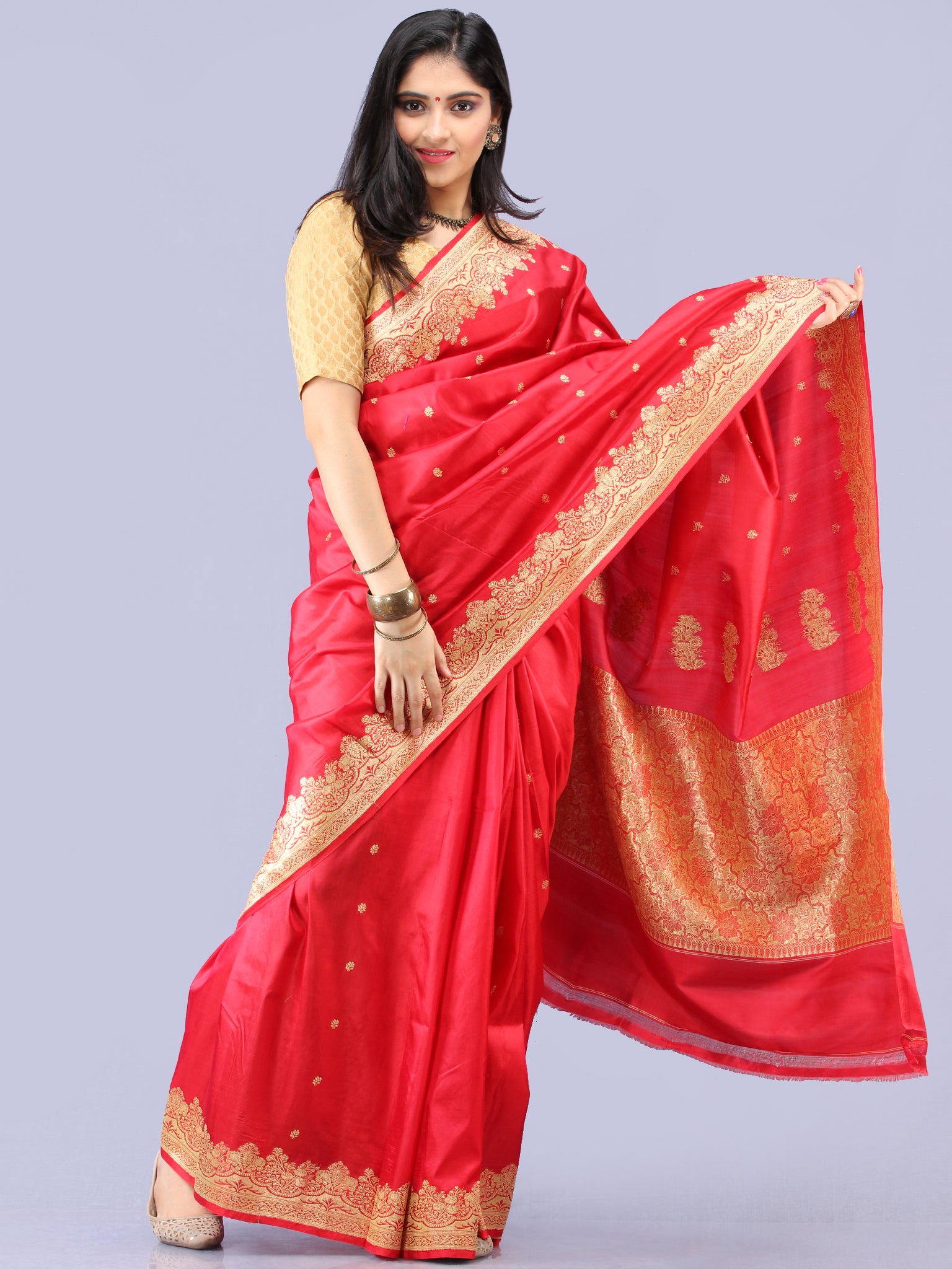 Banarasee Pure Katan Silk Handloom Saree With Zari Work - Green & Gold - S031704297