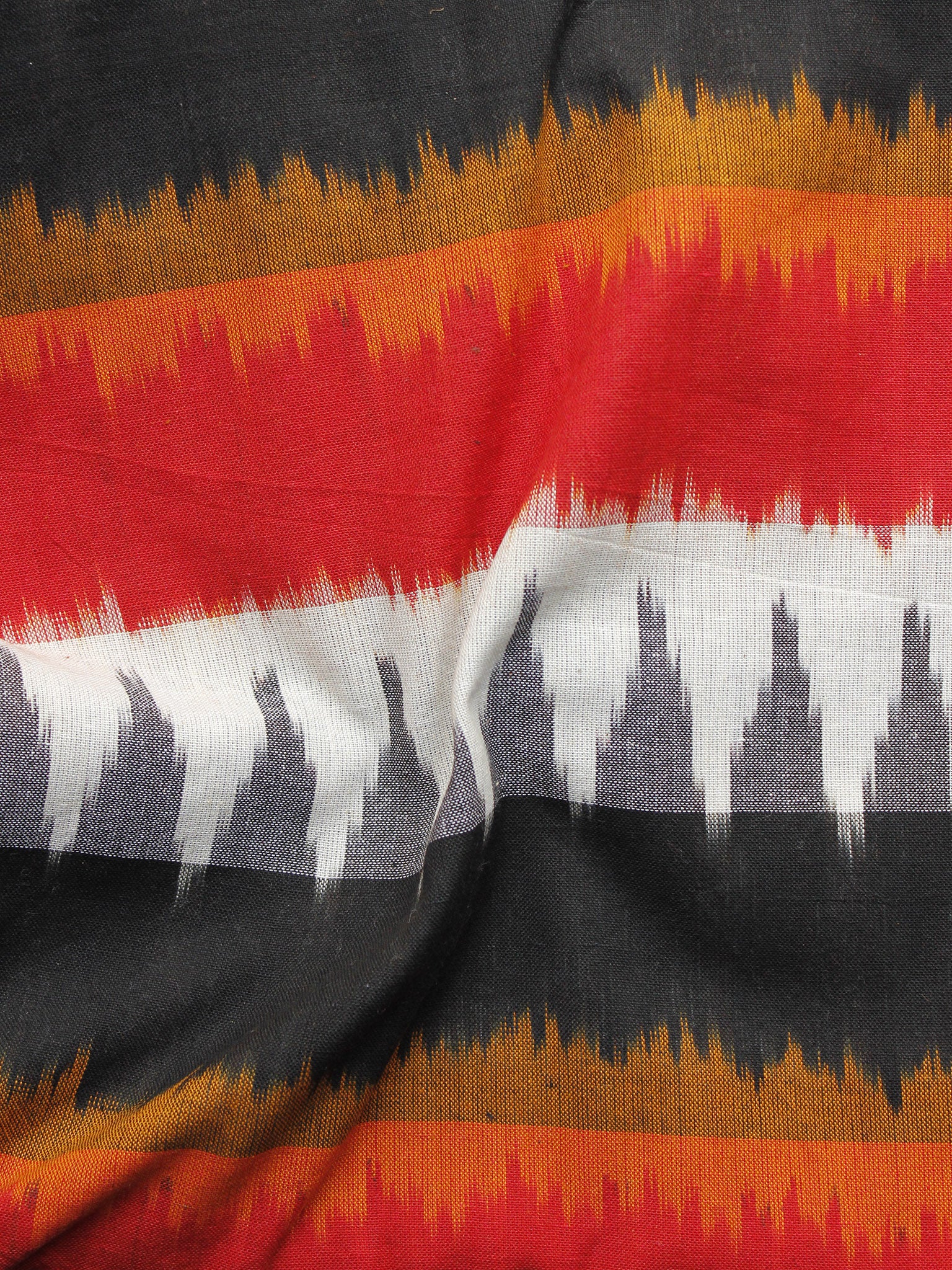 Red Orange Black Grey White Pochampally Hand Woven Ikat Fabric Per Meter - F002F1056