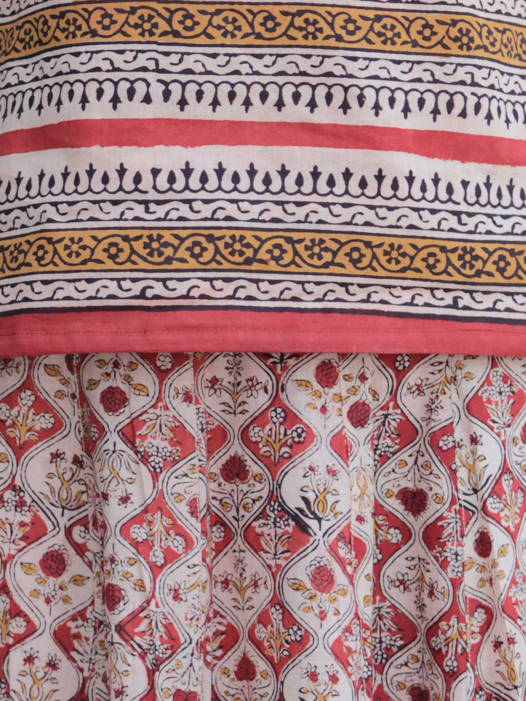 PRODUCT: Fabric is 100% pure cotton. Hand Block printed by Artisans in Rajasthan. It has embroidery on yoke and lining attached.