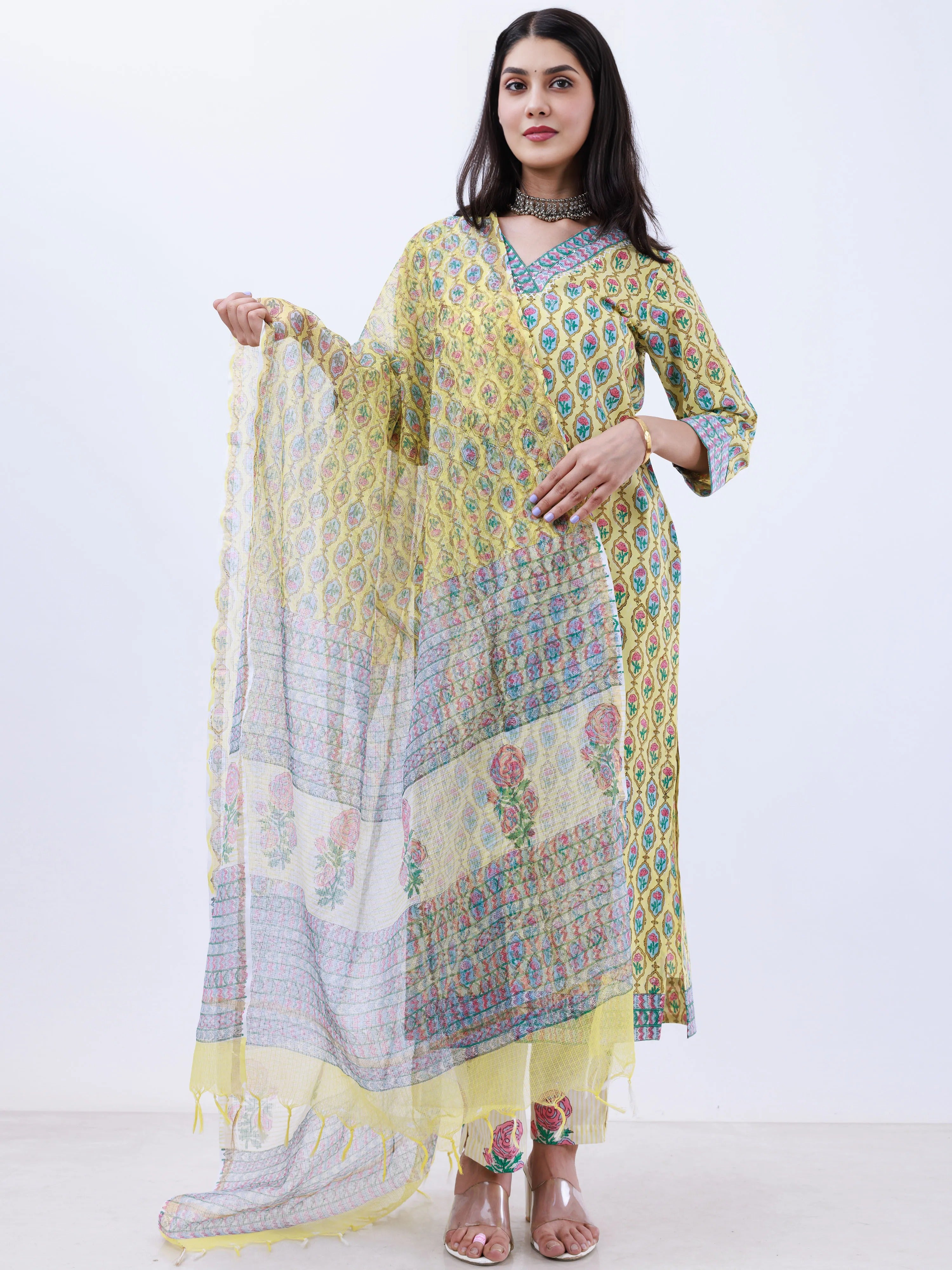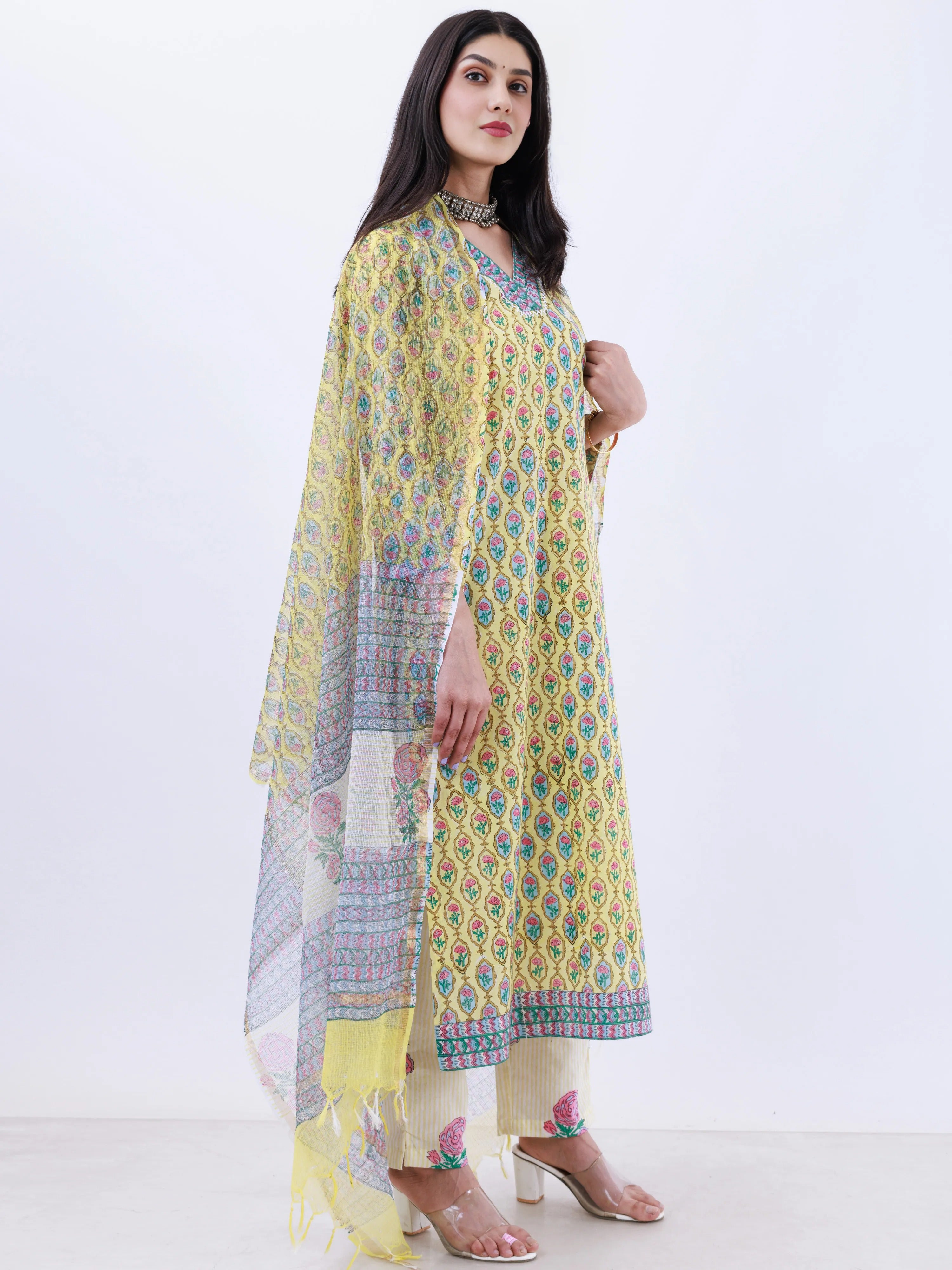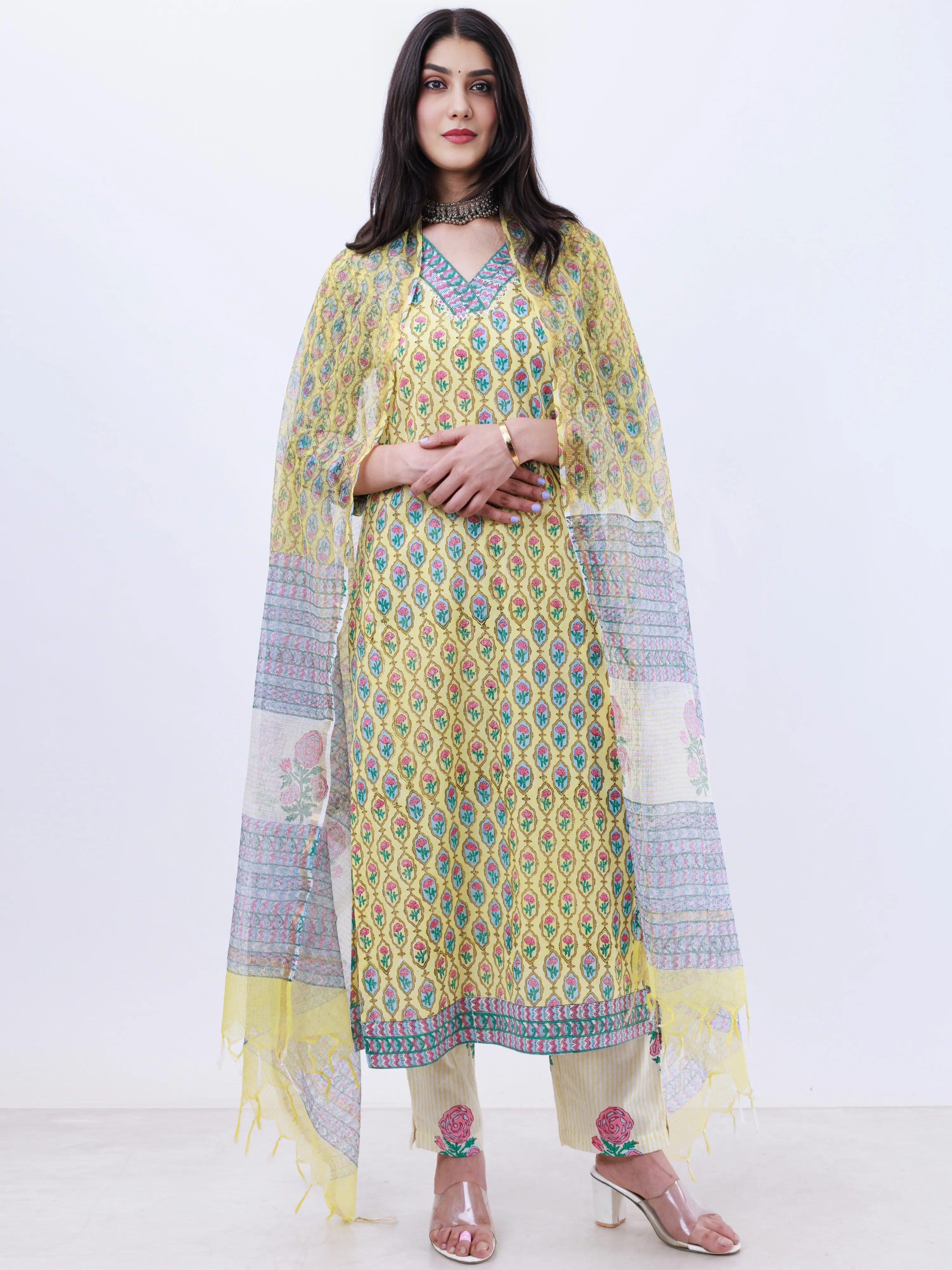 Roz Amisha Set Of Kurta Pants Kota Doria Dupatta