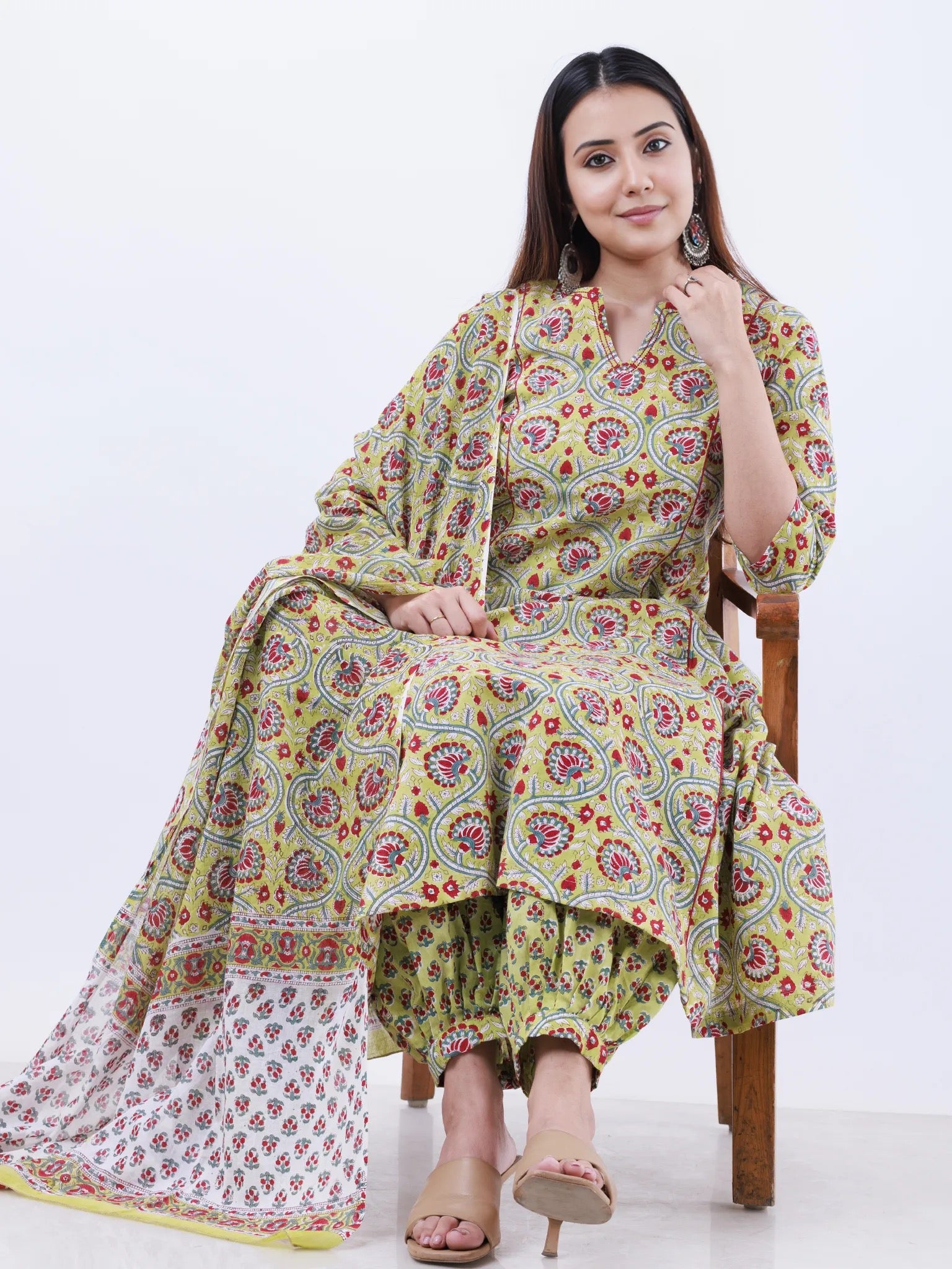 Fabric : Hand Block Printed. Kurta - Cotton . Pants - Cotton, Dupatta - Cotton