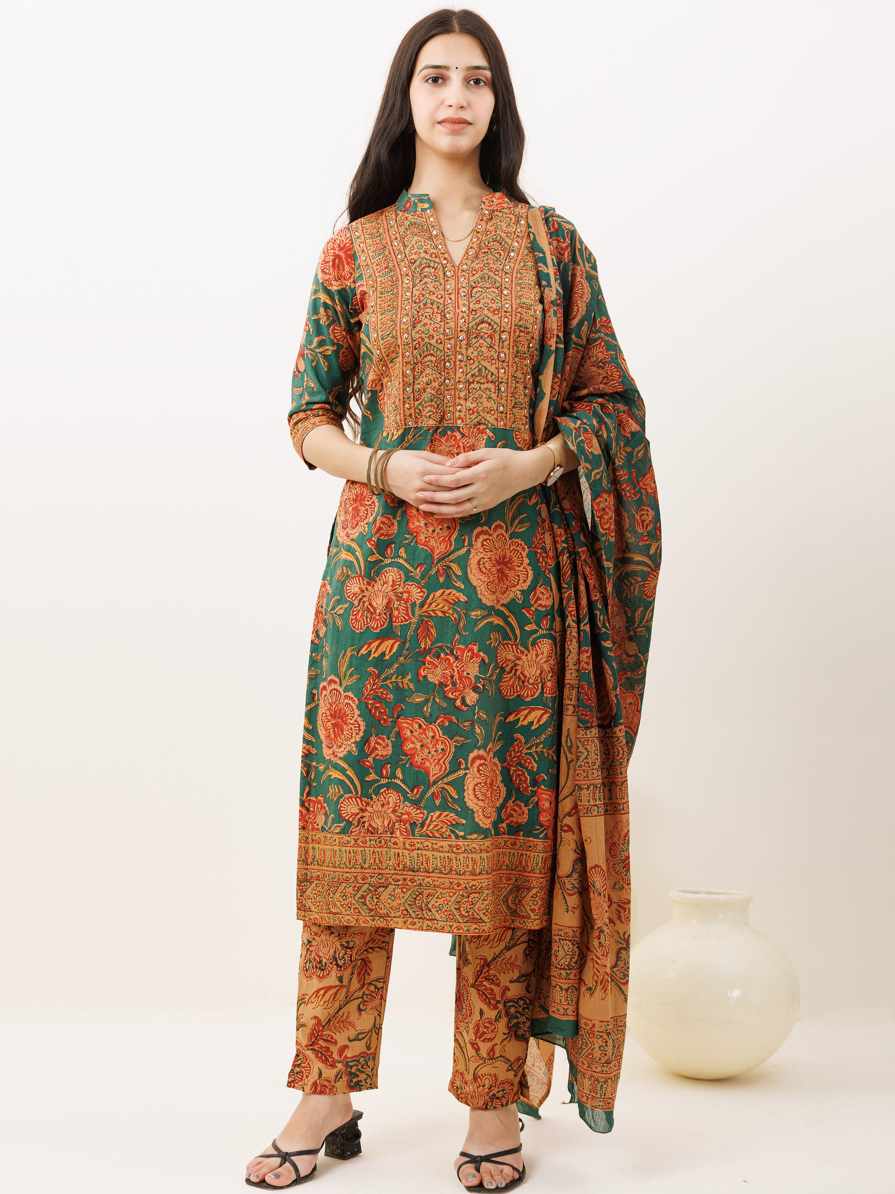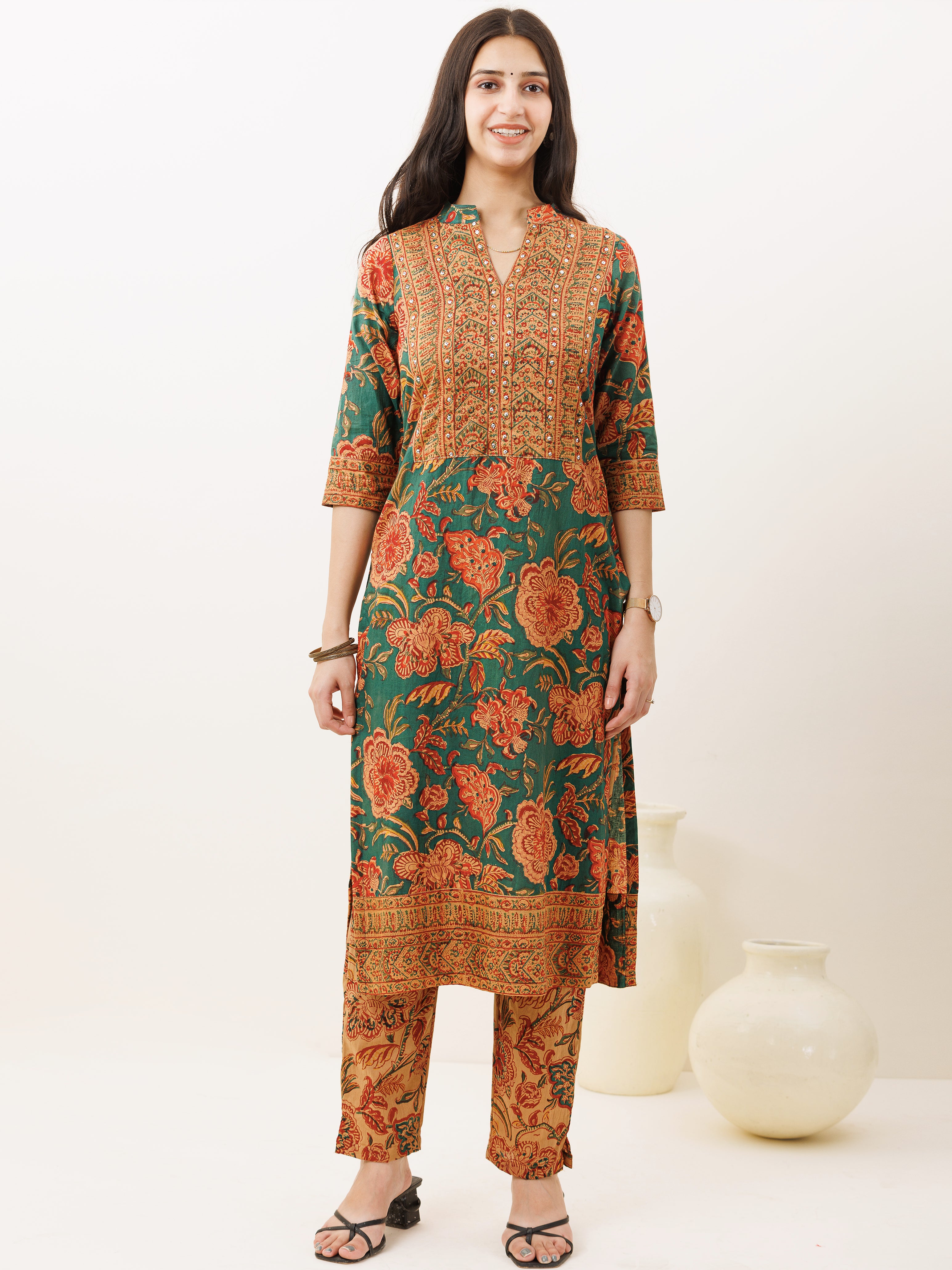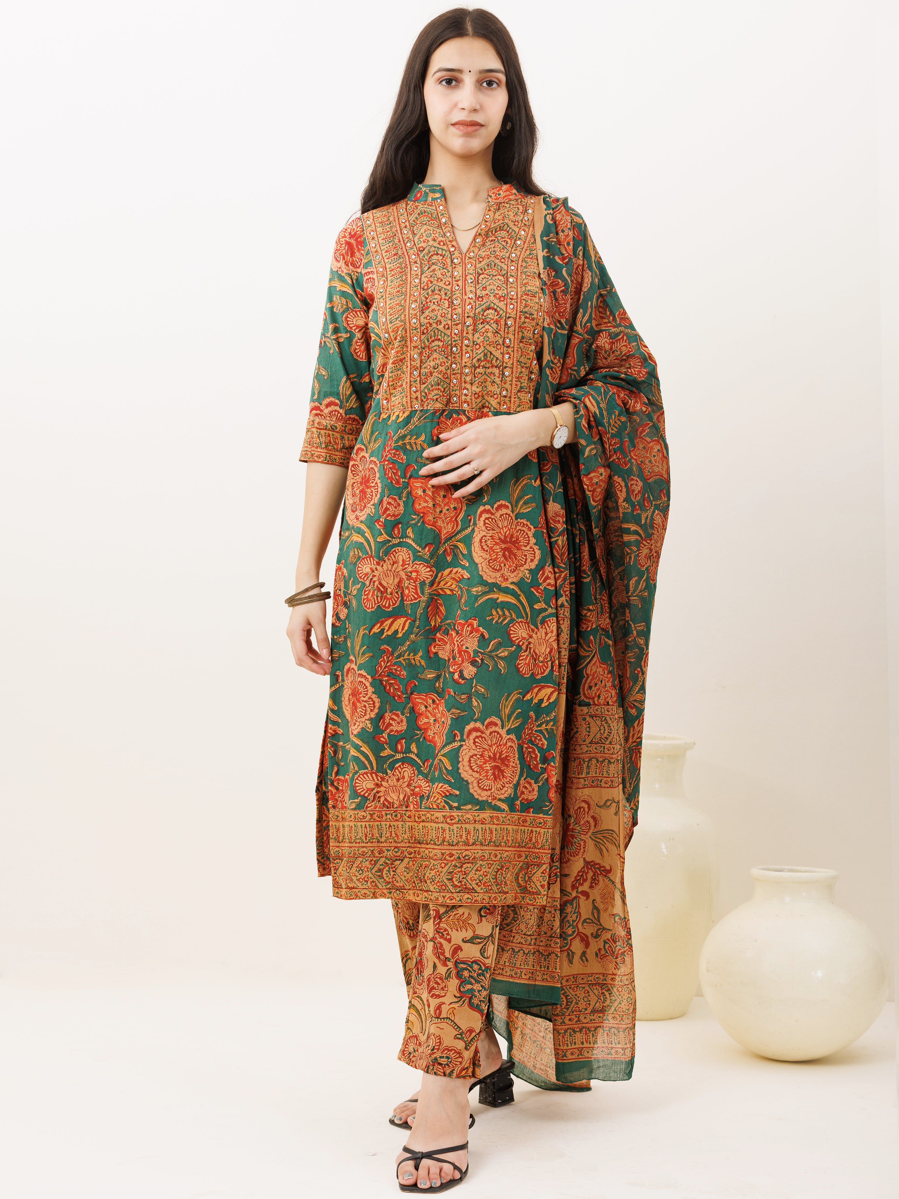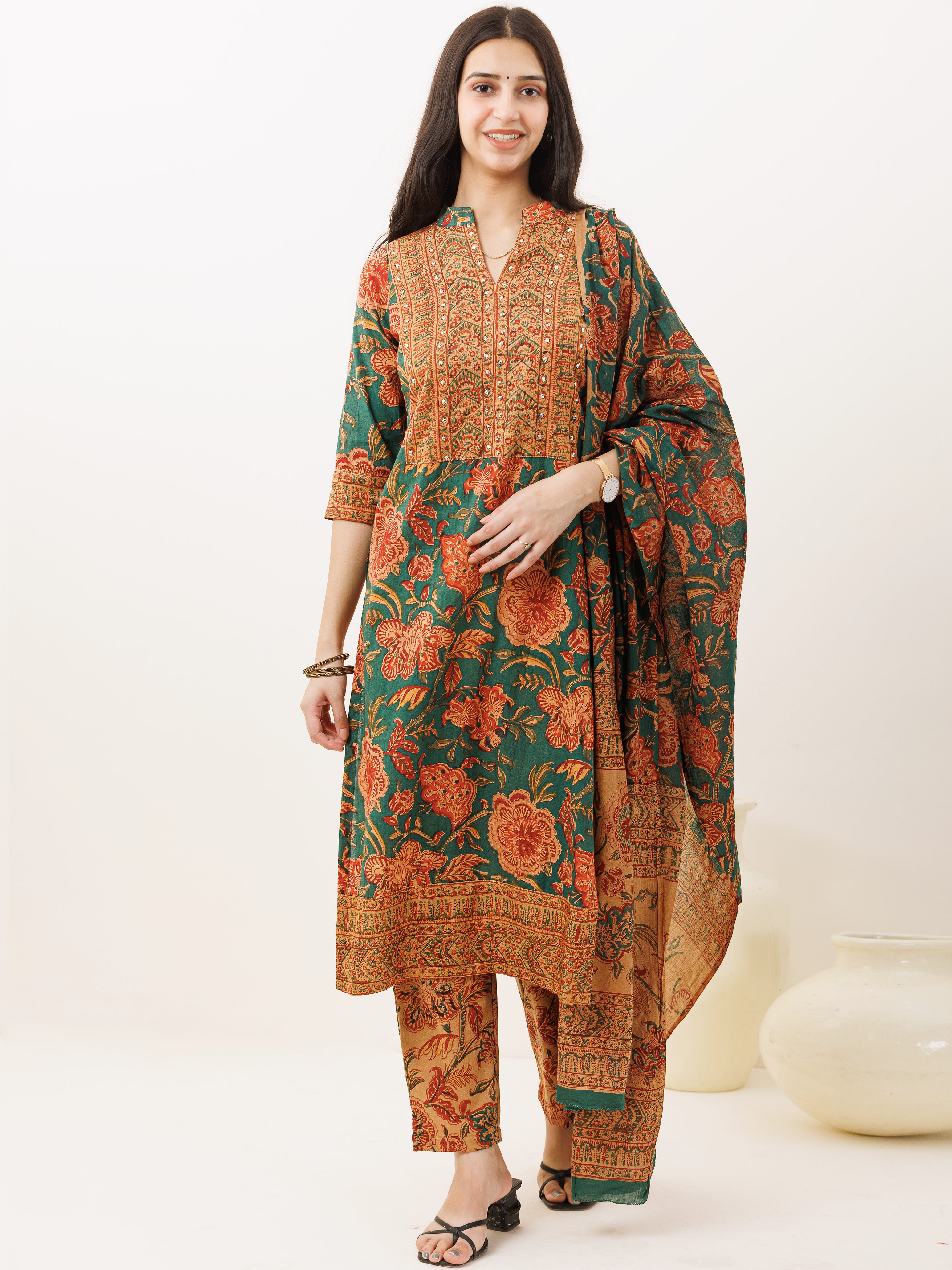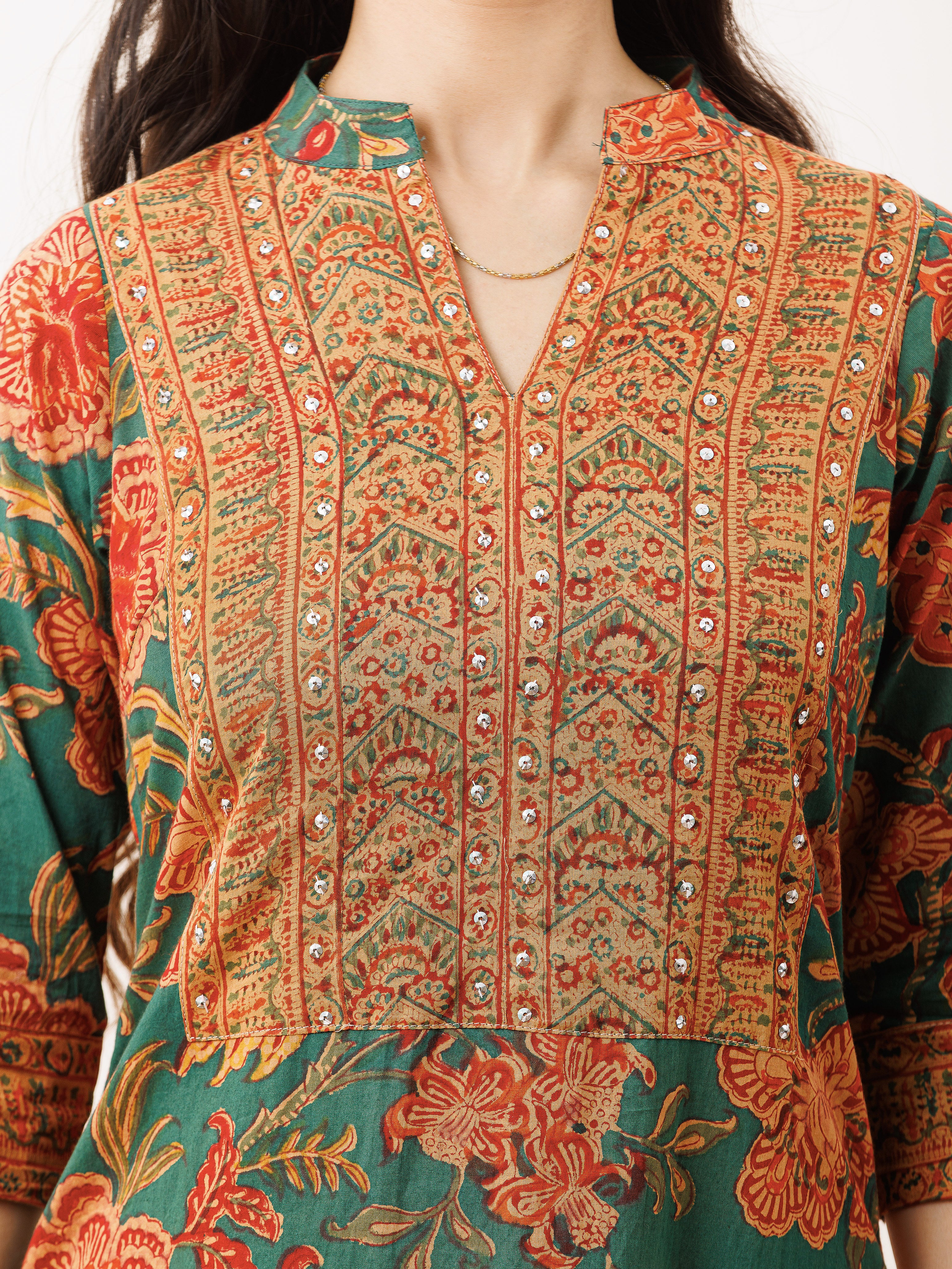 Product: This set contains Handcrafted Sanganeri Premium Cotton Kurta, 100% Cotton Pants and Cotton Dupatta.