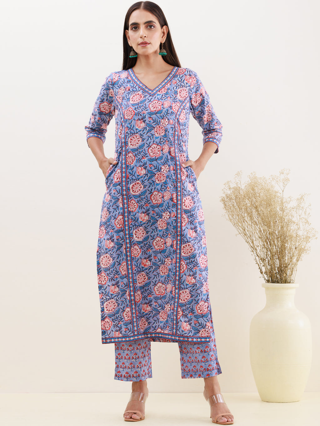 Product: Contains Hand Block Printed Cotton Kurta. Matching Pants/Bottoms and Dupatta are also available separately under BUY THE LOOK section.