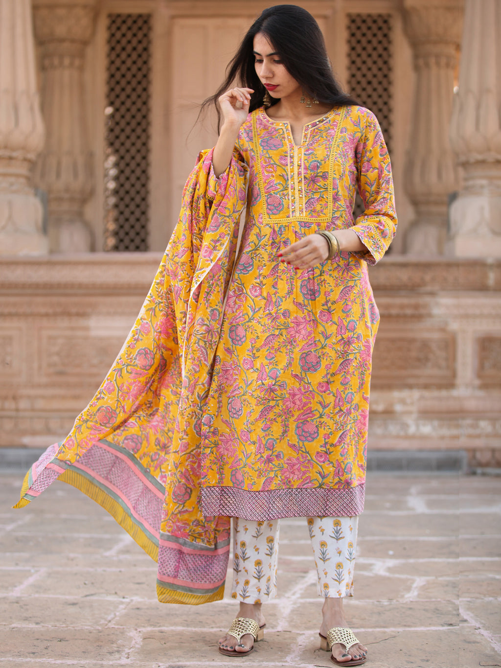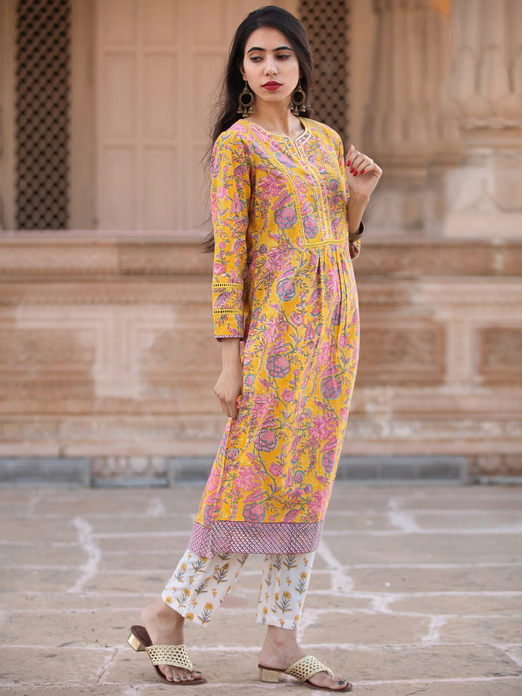 Product: This set contains Handcrafted Sanganeri Premium Cotton Kurta, 100% Cotton Pants and Cotton Dupatta.