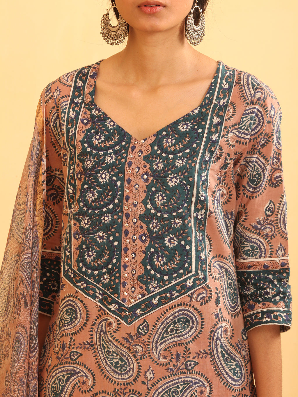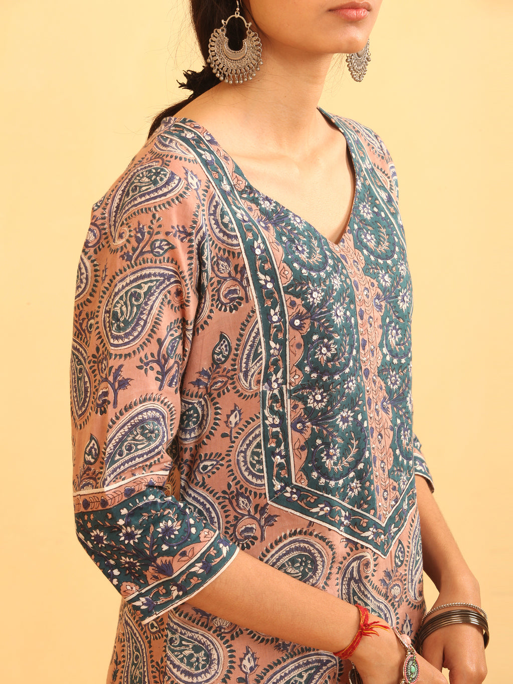 Product: This set contains Handcrafted Sanganeri Premium Cotton Kurta, 100% Cotton Pants and Kota Doria Dupatta.