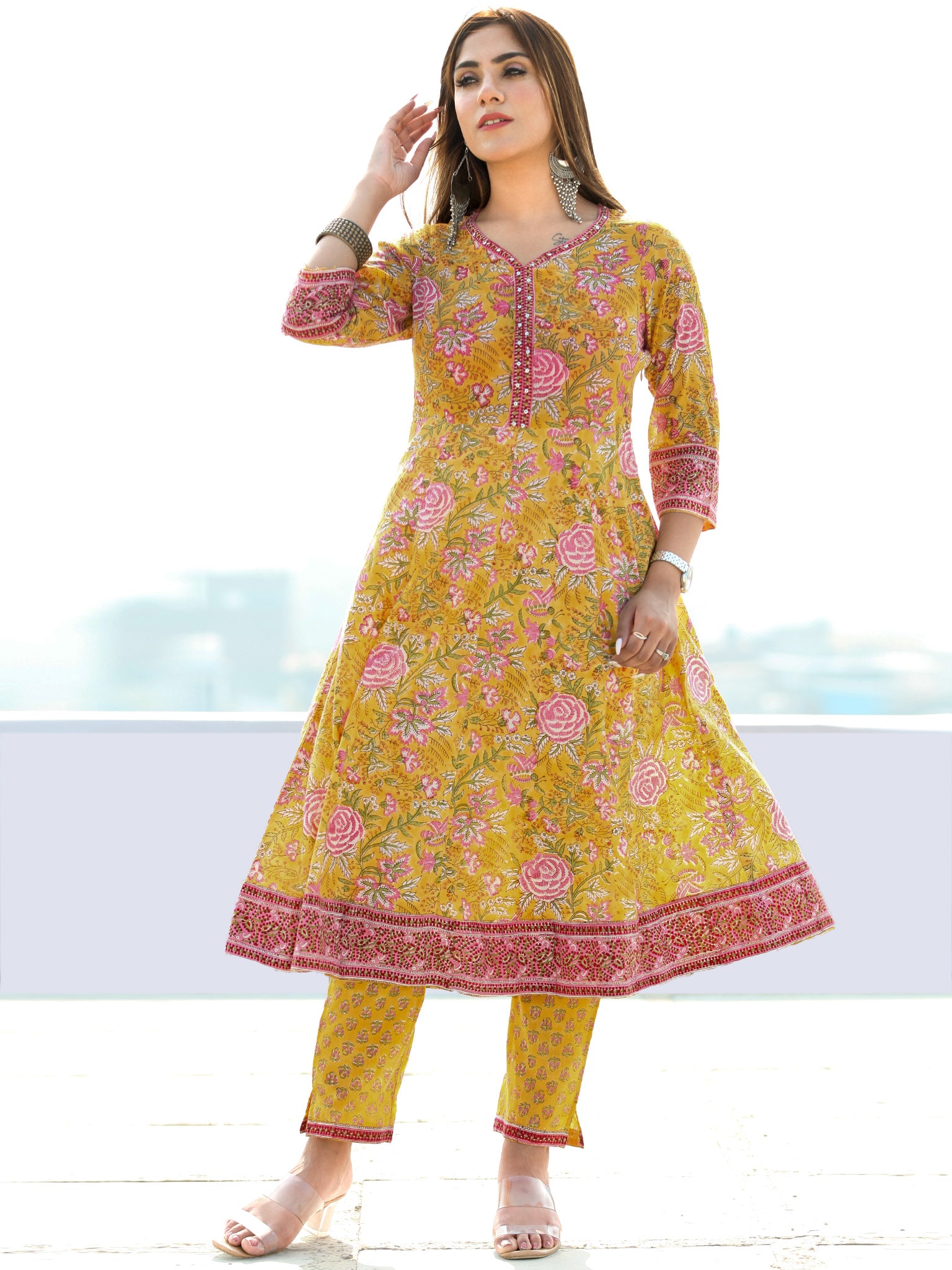 Product: Contains Hand Block Printed Cotton Kurta. Matching Pants/Bottoms and Dupatta are also available separately under BUY THE LOOK section.