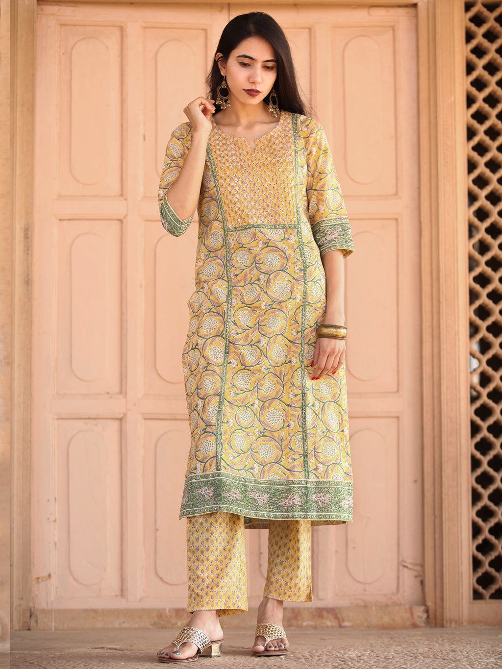 Product: Contains Hand Block Printed Cotton Kurta. Matching Pants/Bottoms and Dupatta are also available separately under BUY THE LOOK section.