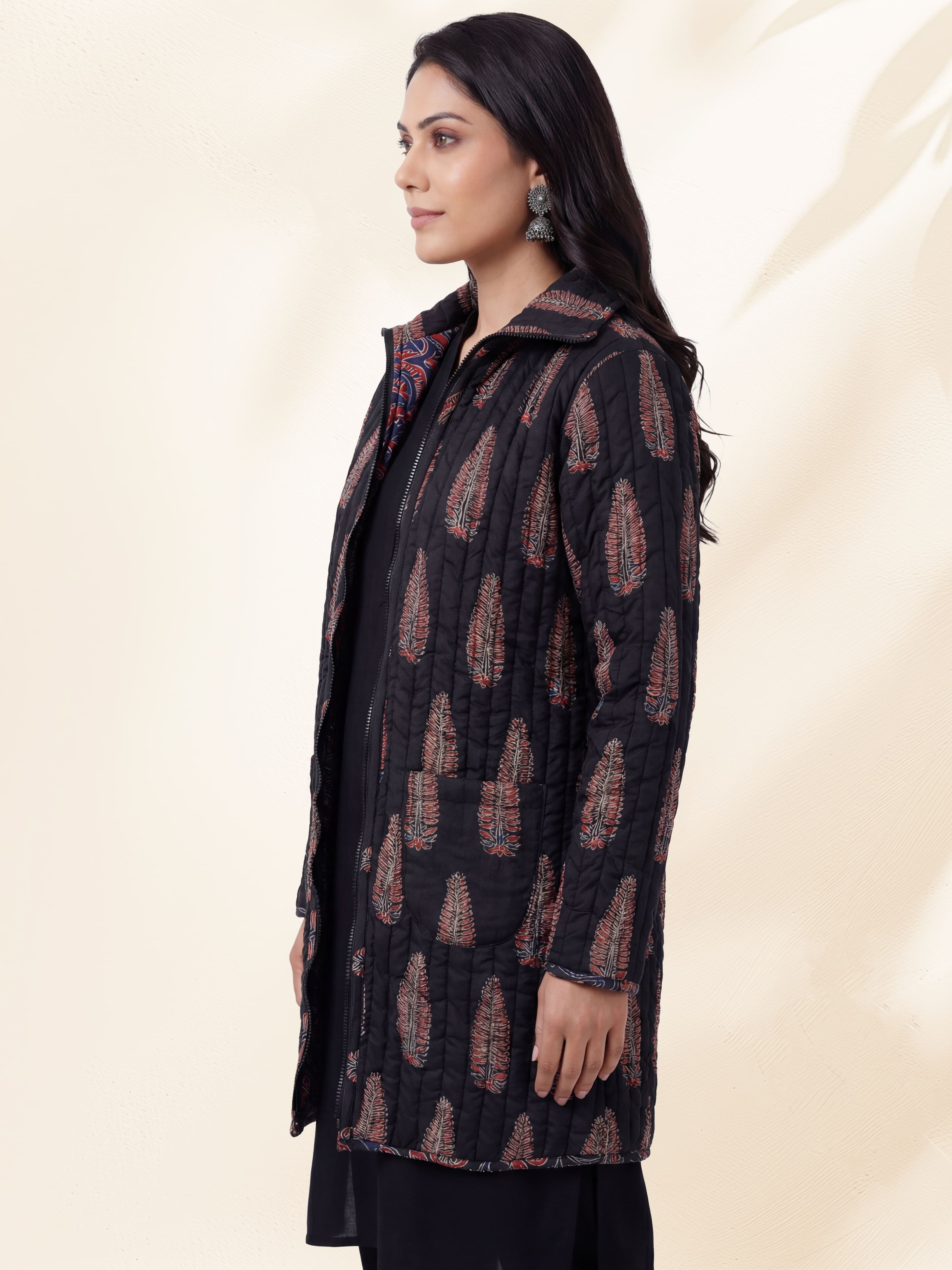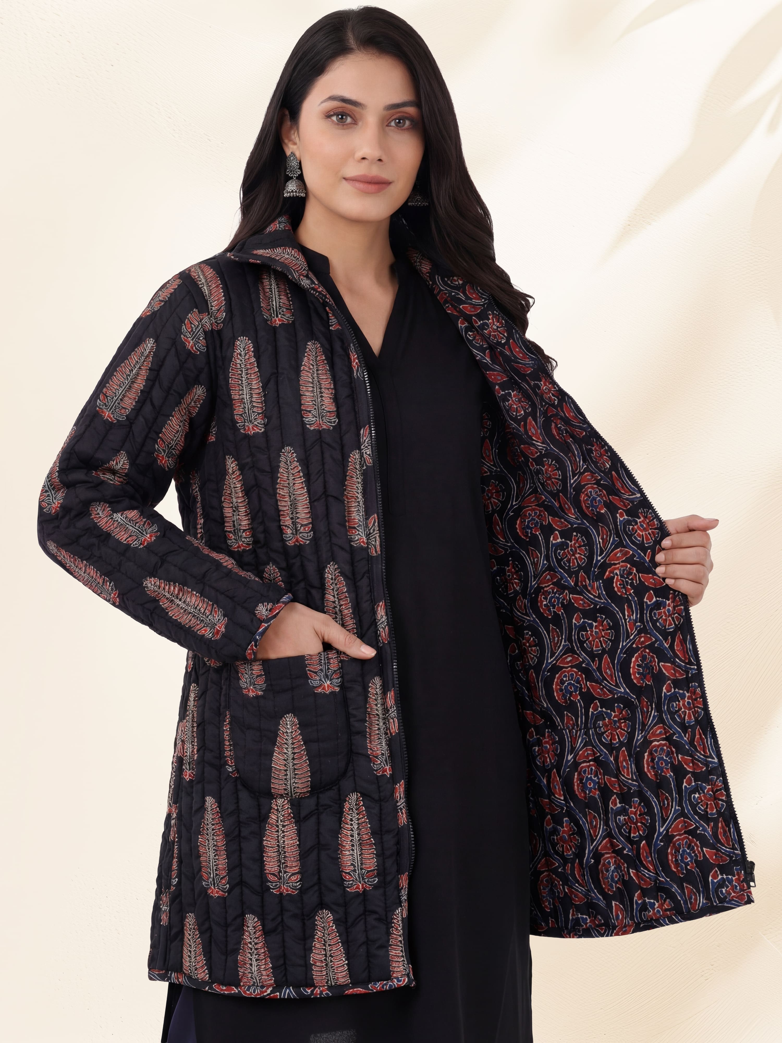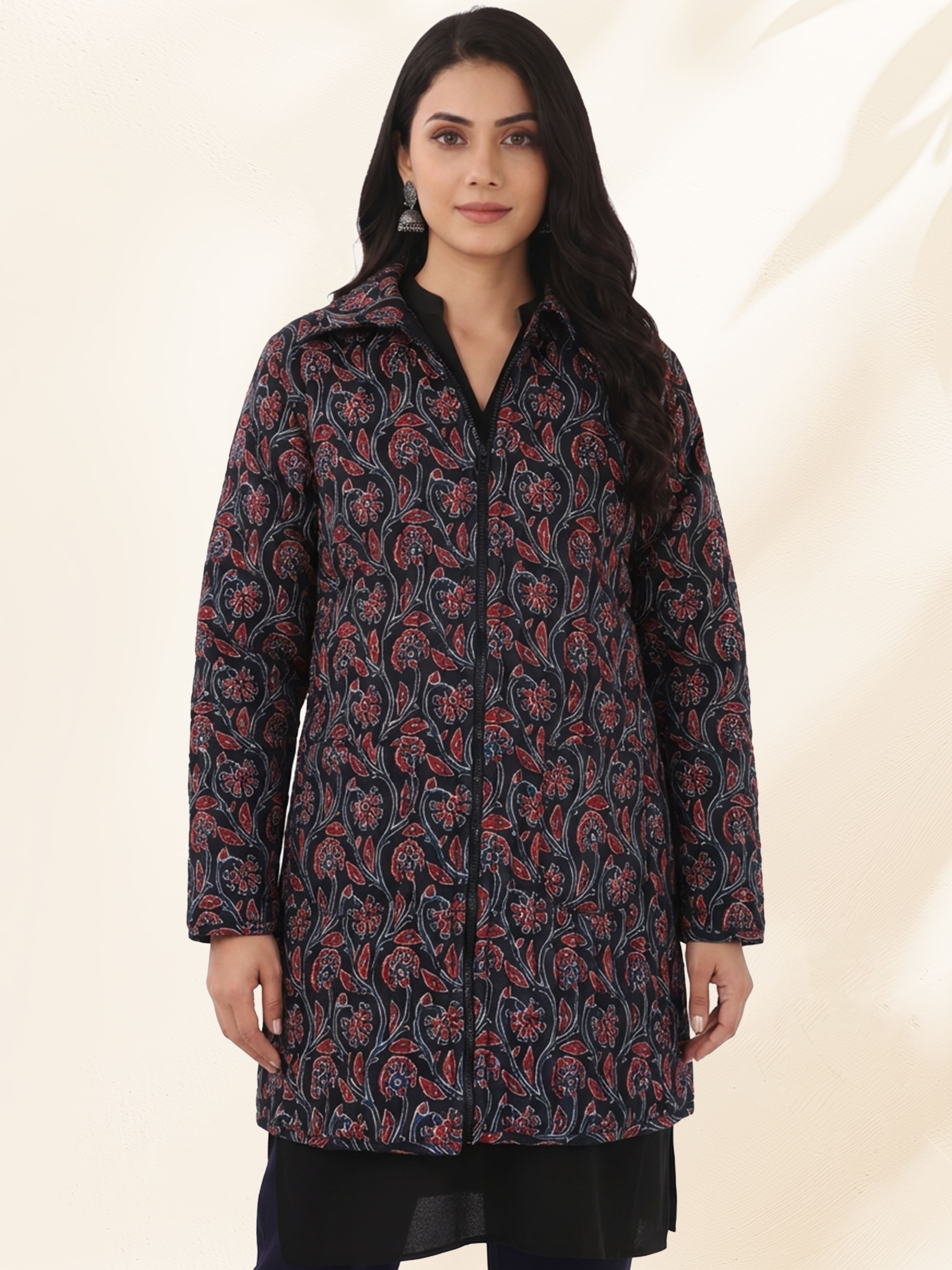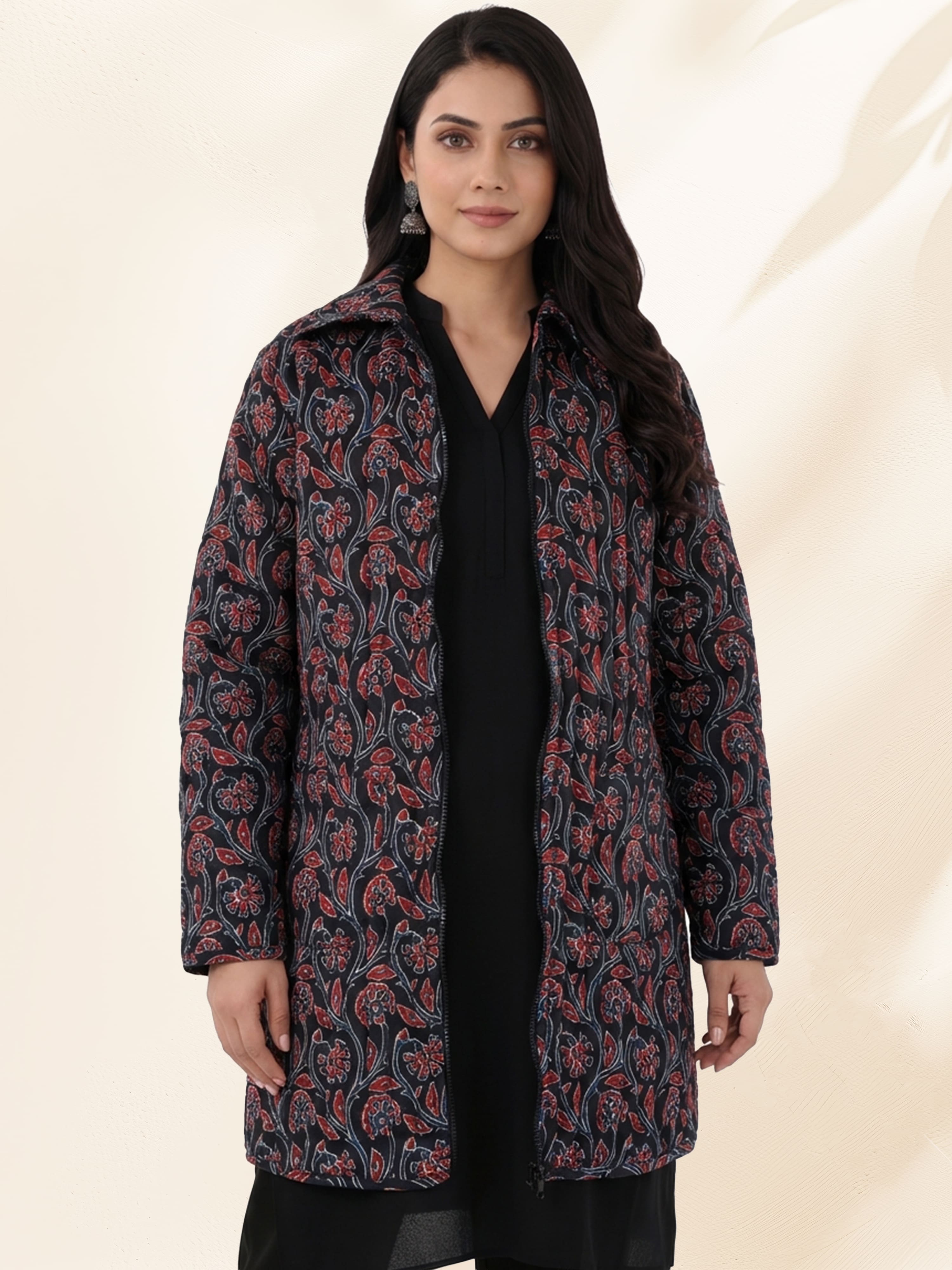 PRODUCT: Handcrafted Reversible Quilted Jacket with intrinsic and alluring work of block print on both the sides.
